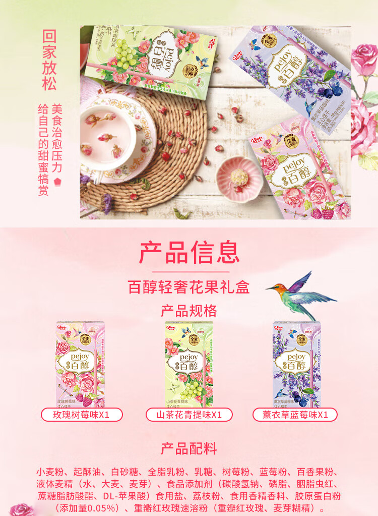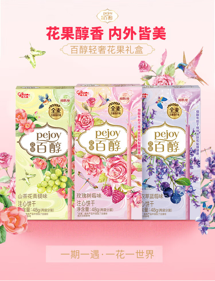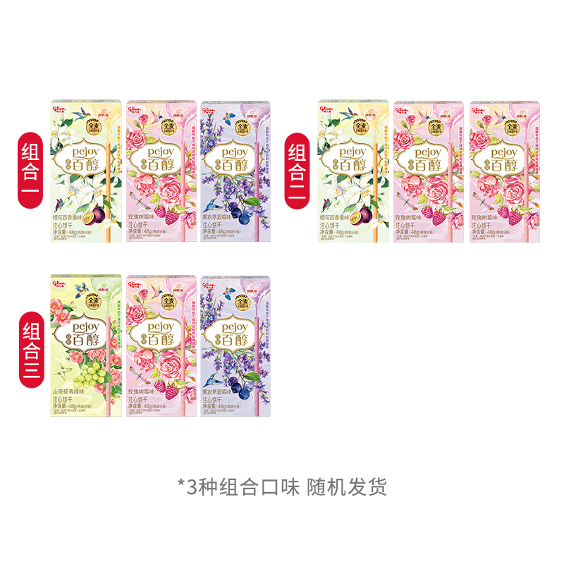 格力高(glico)花果百醇系列 组合装48g*3盒 饼干休闲零食礼物