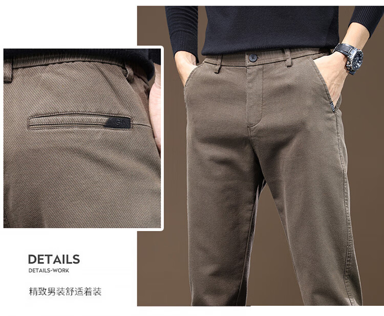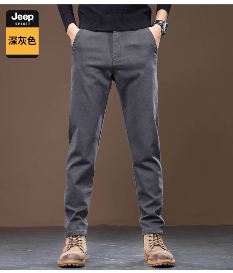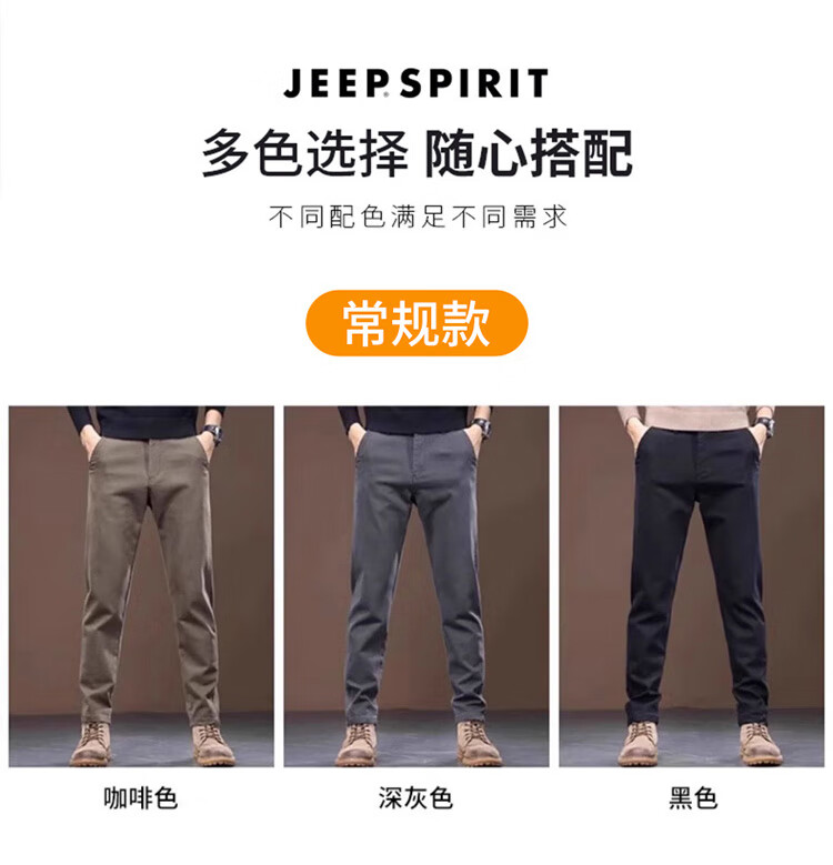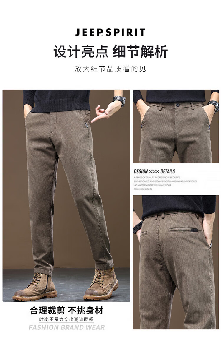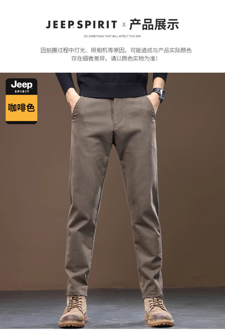 JEEP SPIRIT吉普休闲裤男直筒秋冬季裤子男士商务修身弹力长裤 咖啡 34