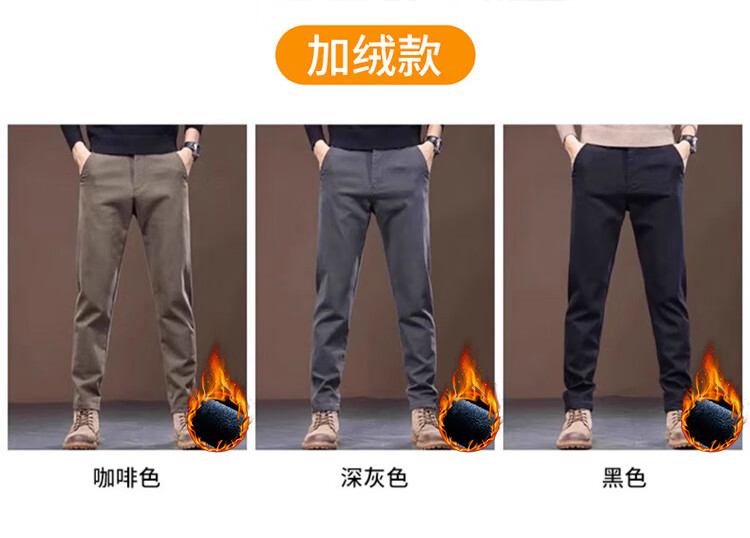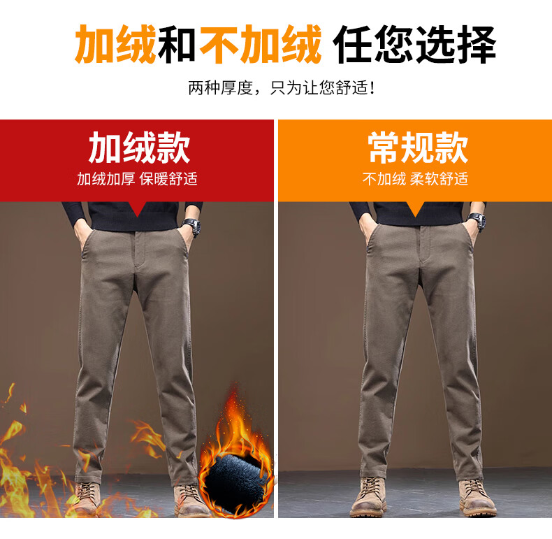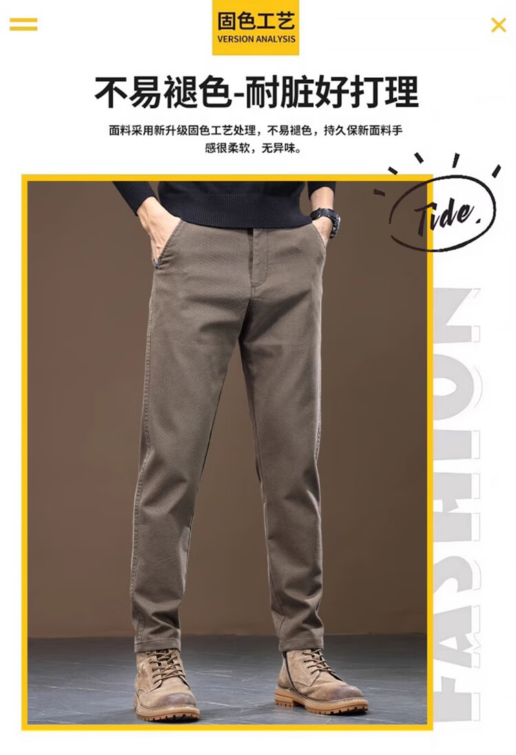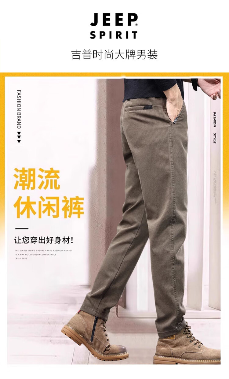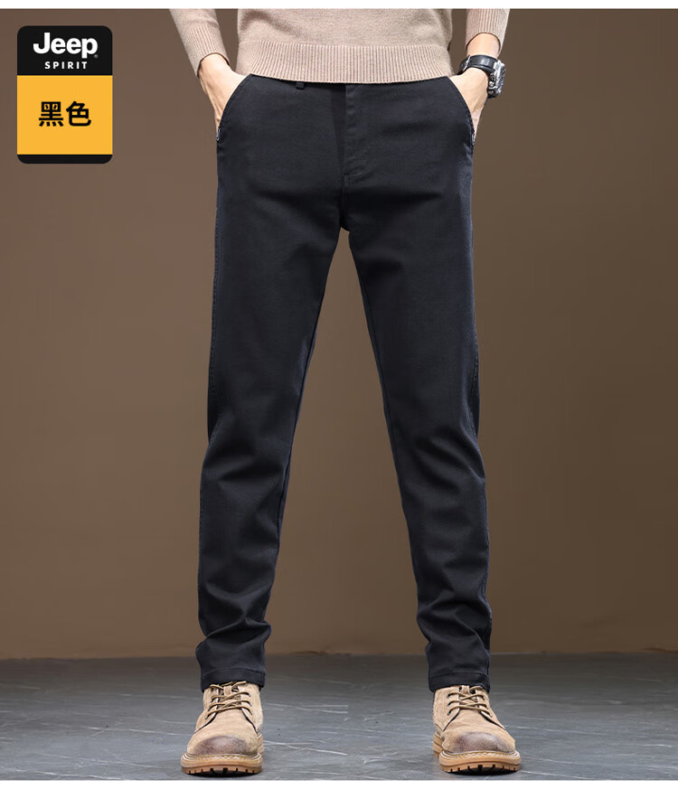 JEEP SPIRIT吉普休闲裤男直筒秋冬季裤子男士商务修身弹力长裤 咖啡 34