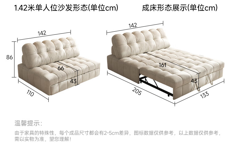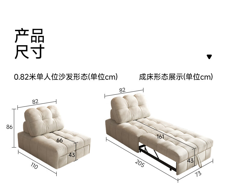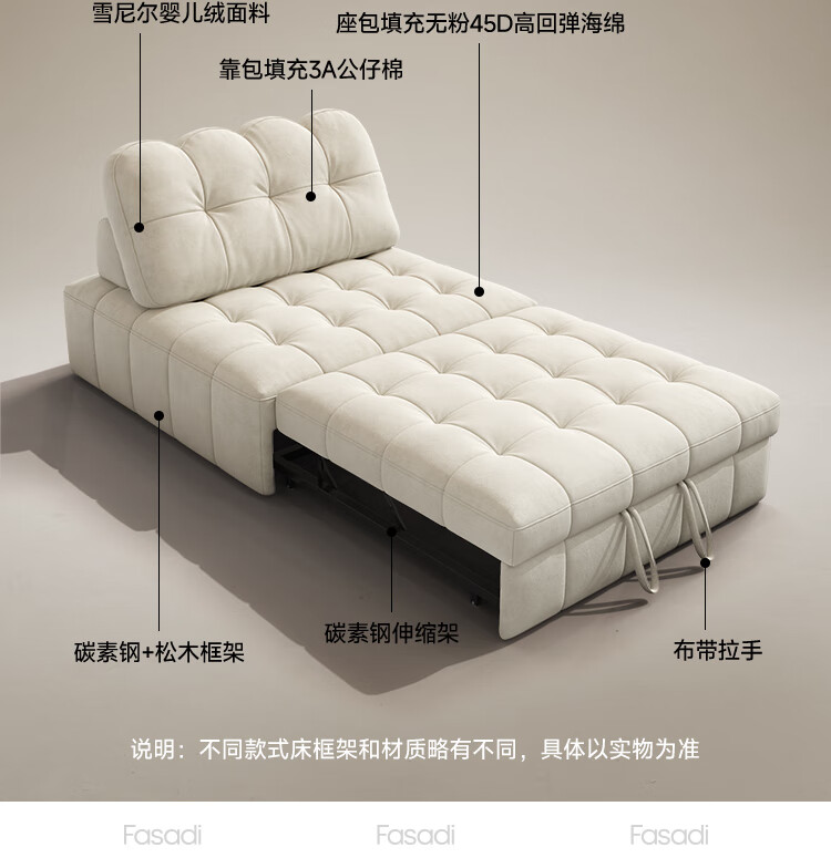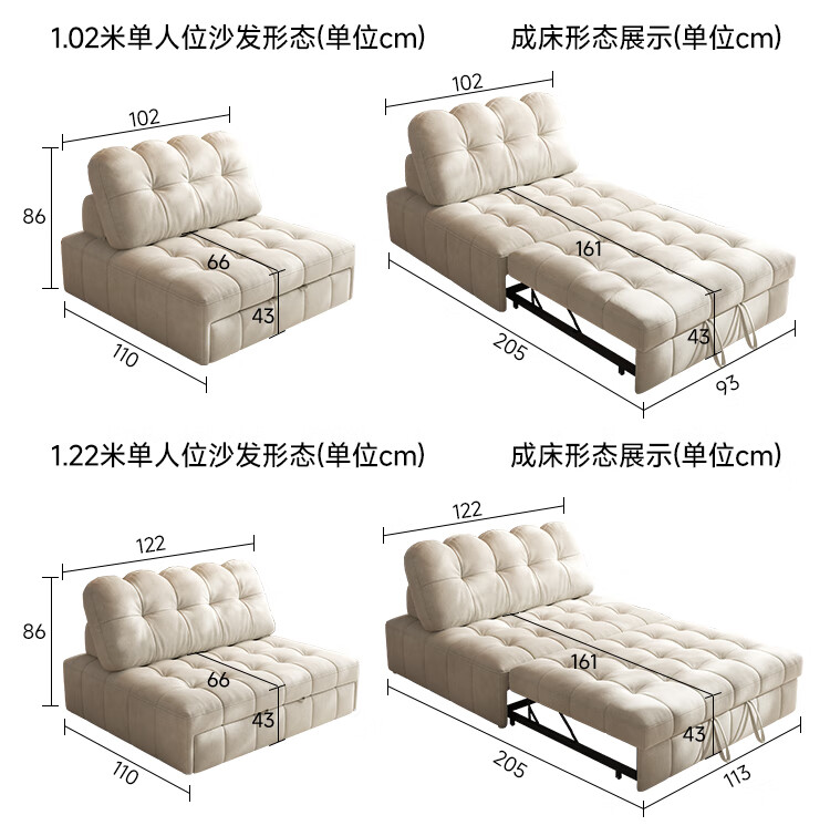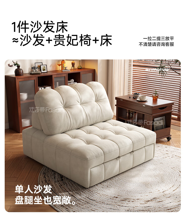 法莎蒂布艺沙发床可折叠小户型客厅多功能坐卧两用伸缩沙发床 1.22米单人位 【雪尼尔婴儿绒】无粉45D海绵