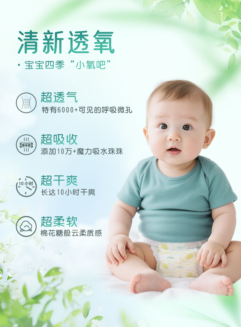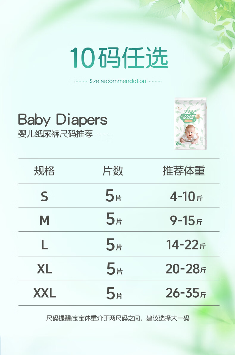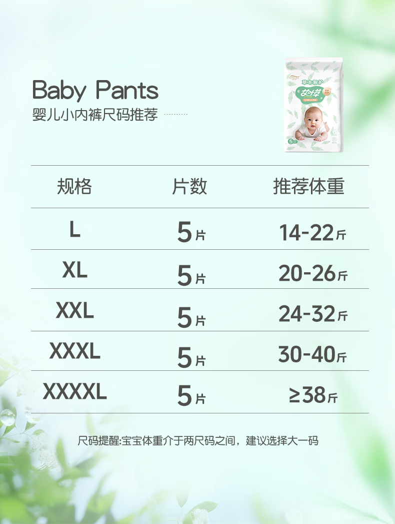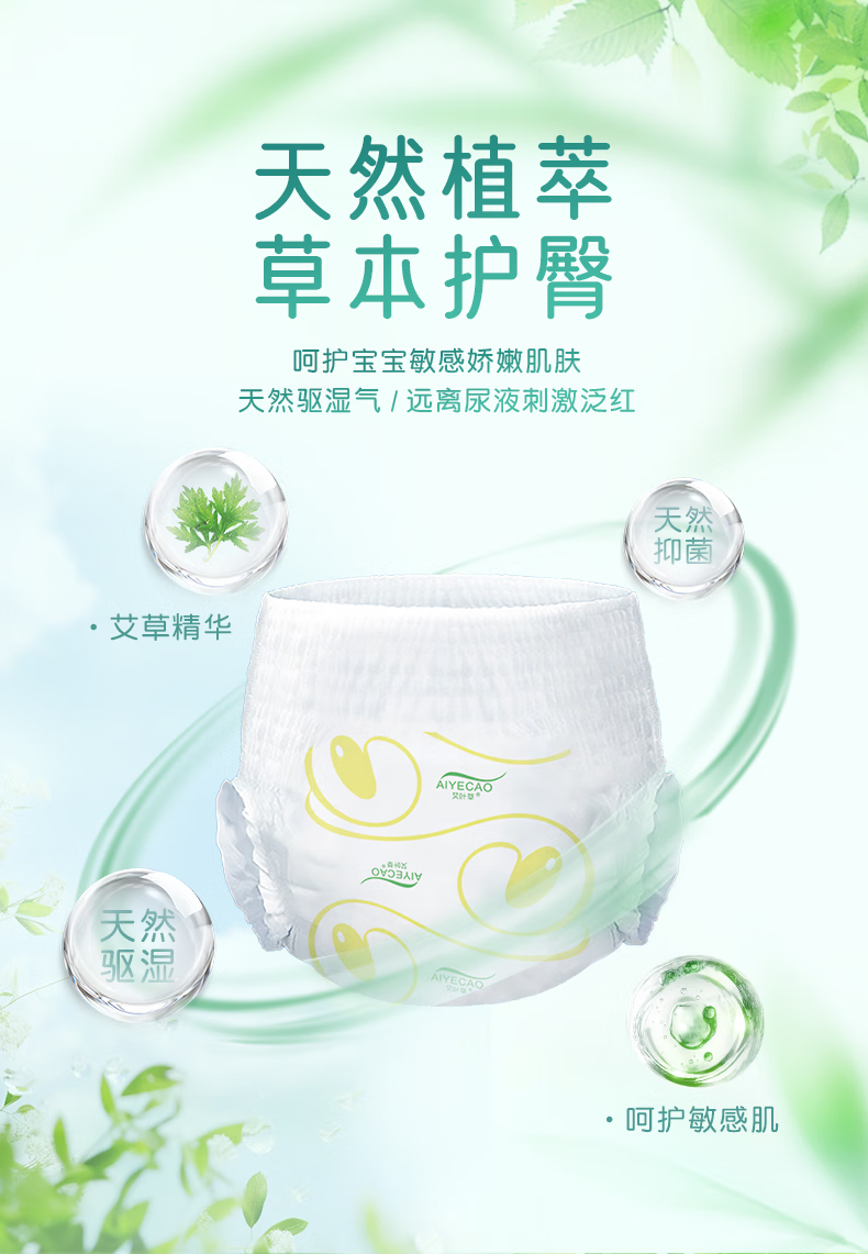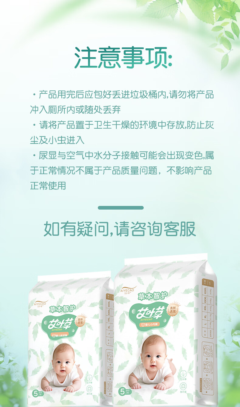 艾叶草婴儿拉拉裤夏季超薄透气纸尿裤大吸量尿不湿艾草精华干爽 全包臀拉拉裤XXL码5片