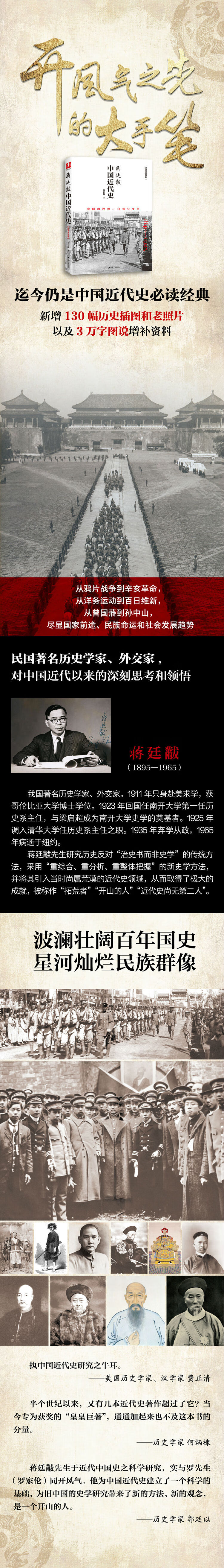 蒋廷黻中国近代史 全彩插图增强版,新增5万字史学专论,130幅历史插图和老照片,3万字图说增补资料;被历史学家何炳棣、郭廷以、费正清,铁嘴李敖推崇备至的史学专著。
