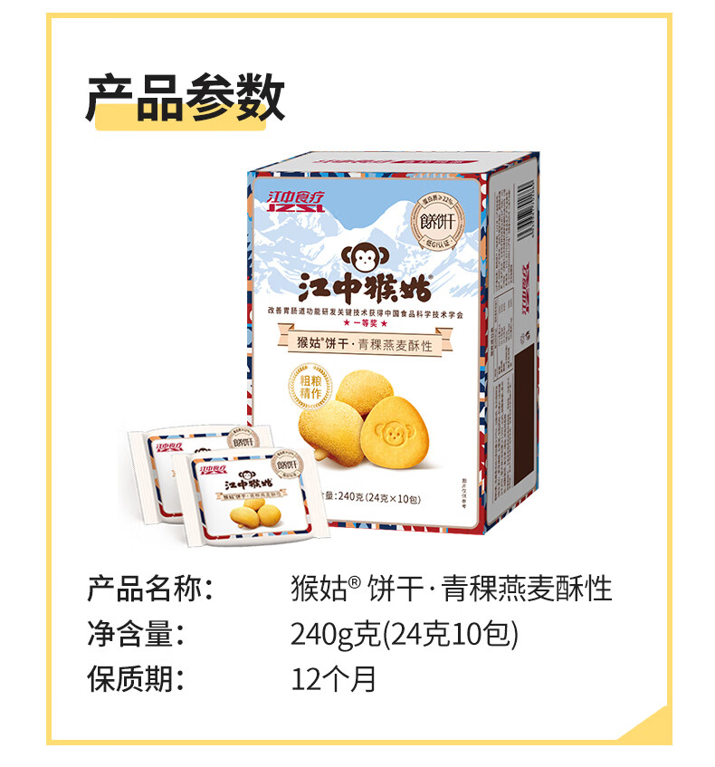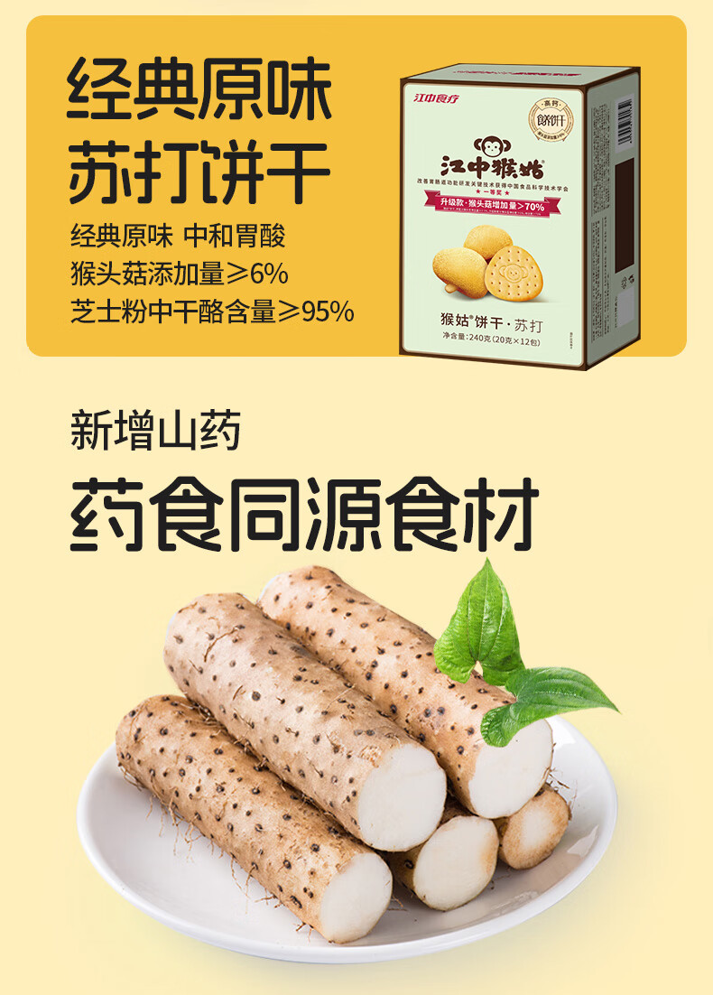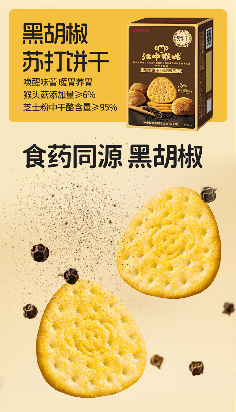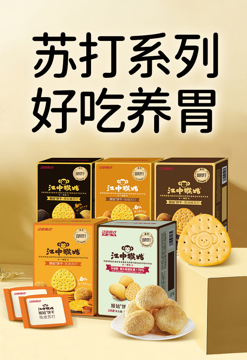 江中猴姑养胃猴头菇苏打饼干独立小包装零食老人儿童孕妇可吃健康代餐食品 【升级自留款】有糖酥性饼干960g