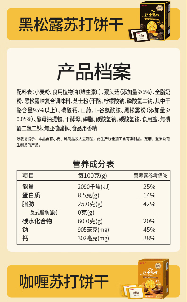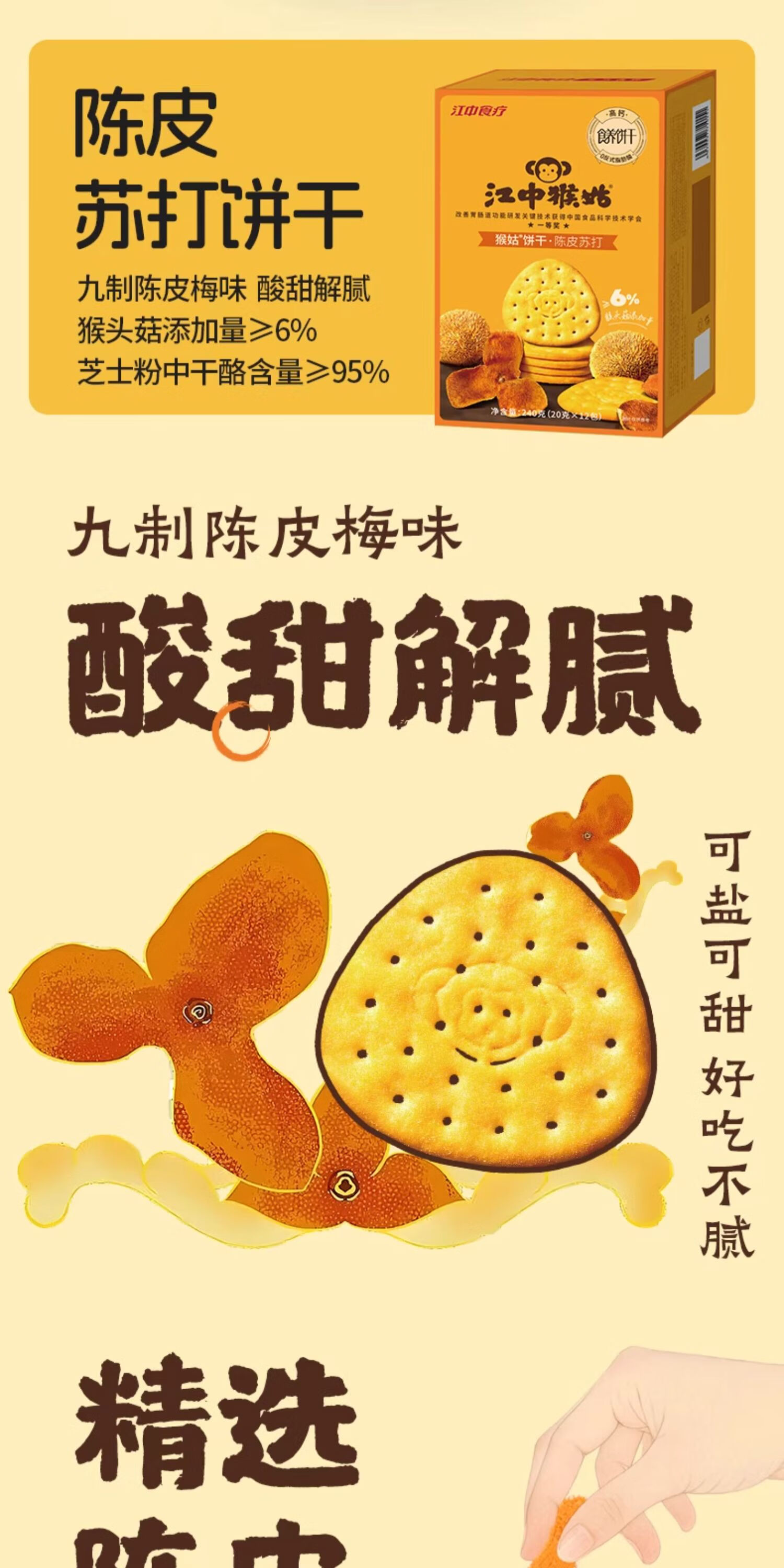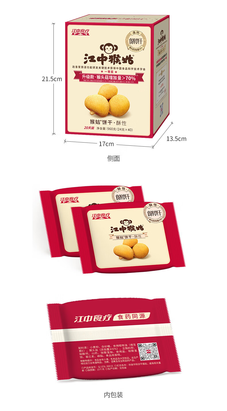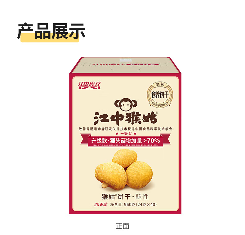 江中猴姑养胃猴头菇苏打饼干独立小包装零食老人儿童孕妇可吃健康代餐食品 【升级自留款】有糖酥性饼干960g