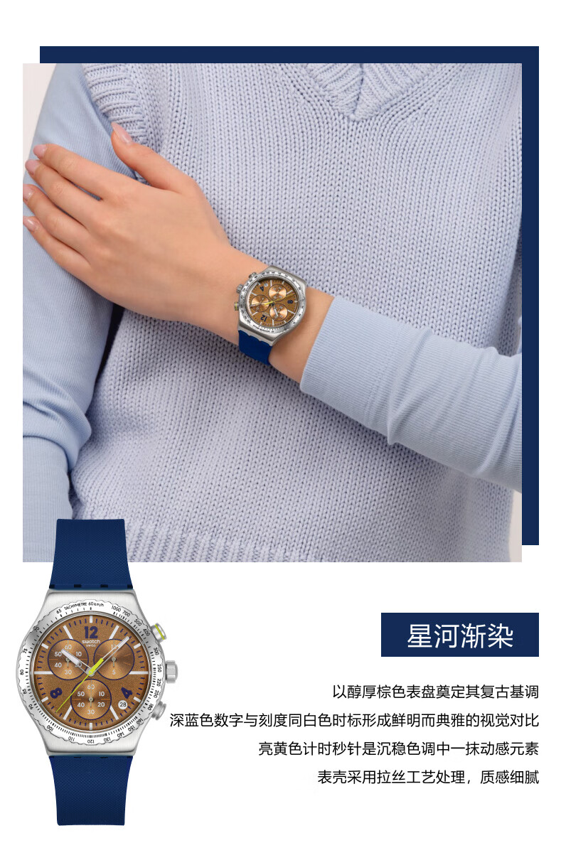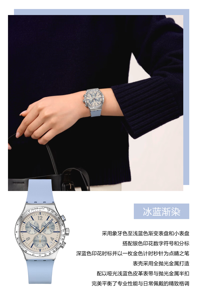斯沃琪(Swatch)瑞士手表渐染系列多功能计时腕表读时清晰生日礼物男女石英腕表 【精美礼袋】冰蓝渐染 YVS536