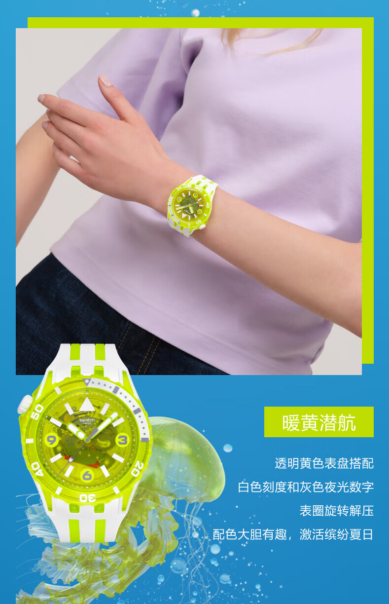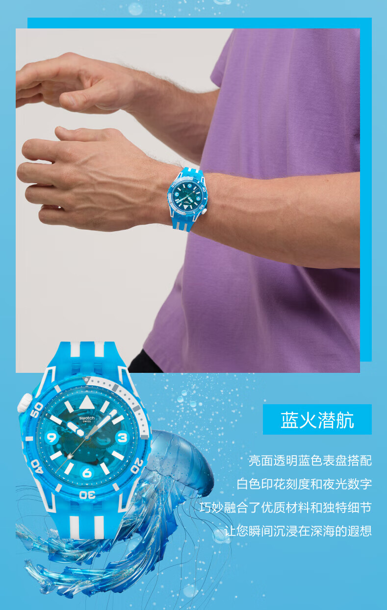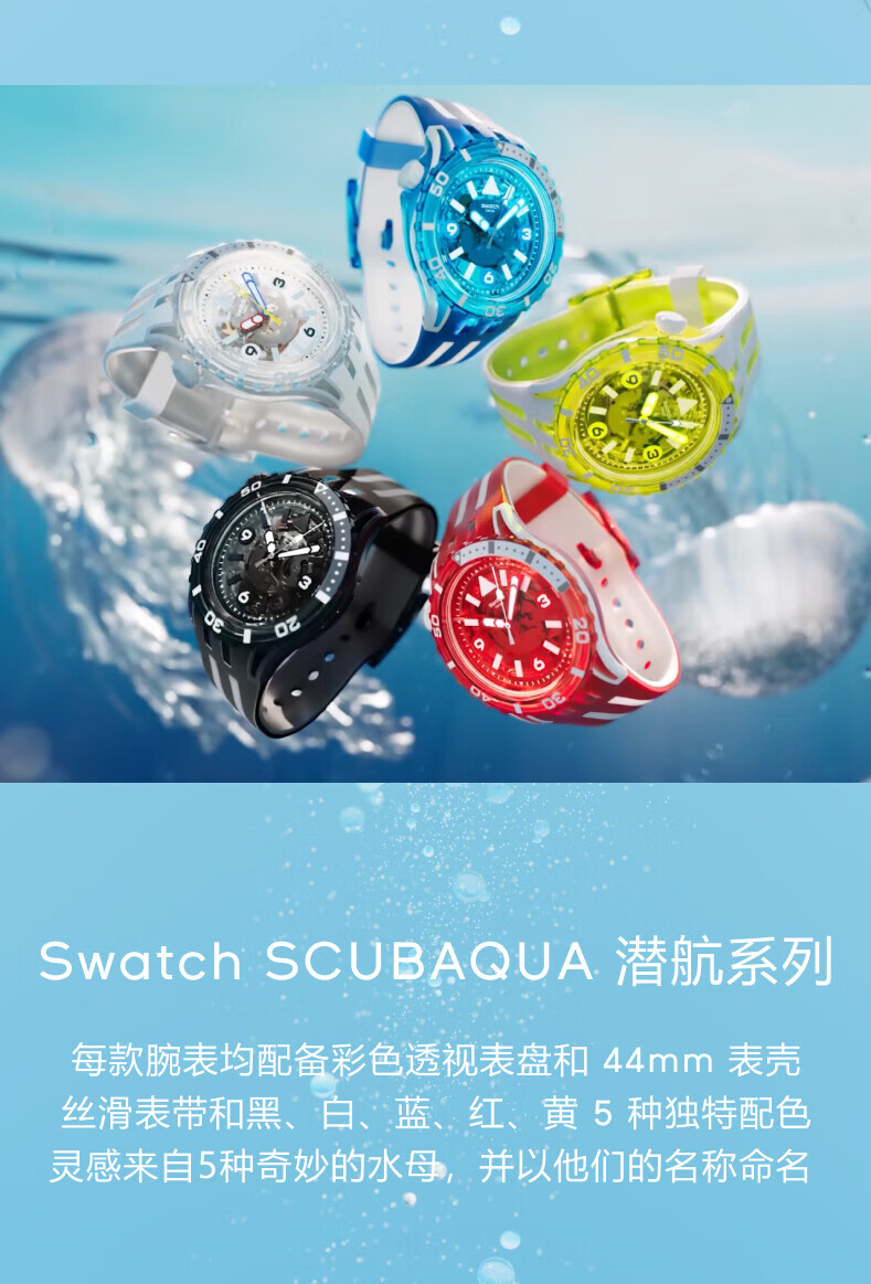 斯沃琪(Swatch)瑞士手表 潜航系列 时尚夜光透视石英腕表生日礼物石英手表 【精美礼袋】皓月潜航 SSCU09K100