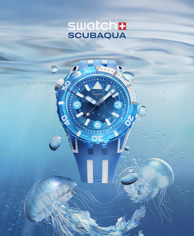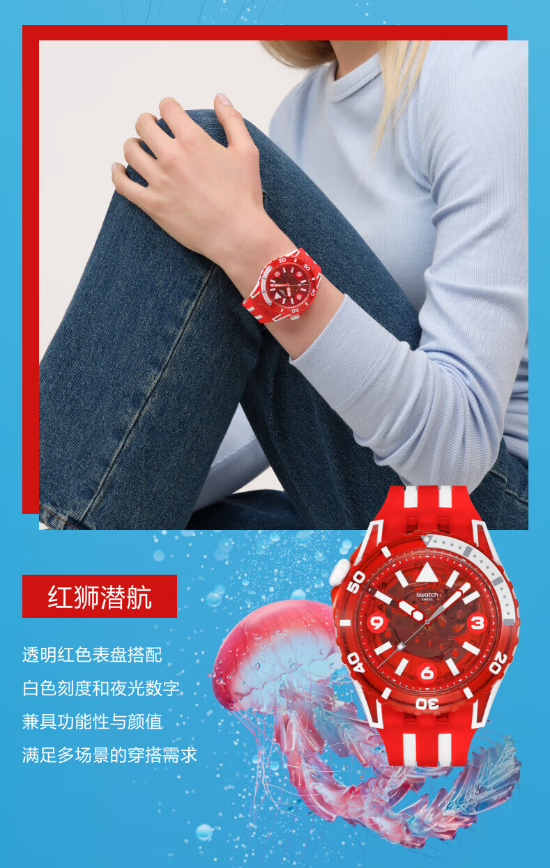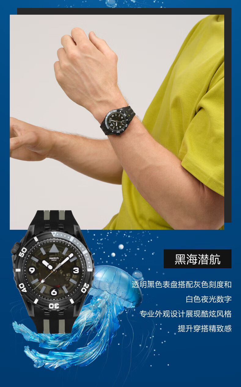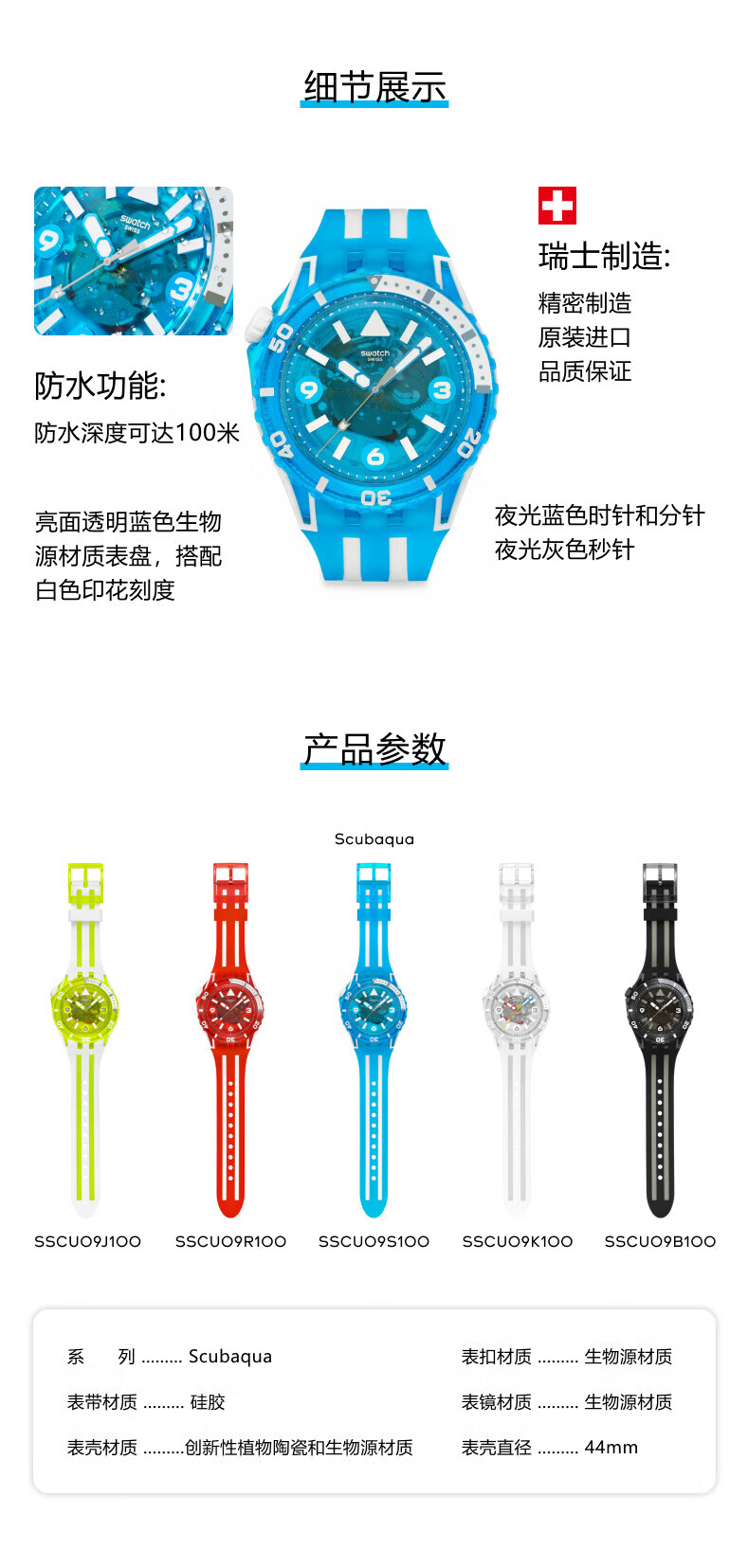 斯沃琪(Swatch)瑞士手表 潜航系列 时尚夜光透视石英腕表生日礼物石英手表 【精美礼袋】皓月潜航 SSCU09K100