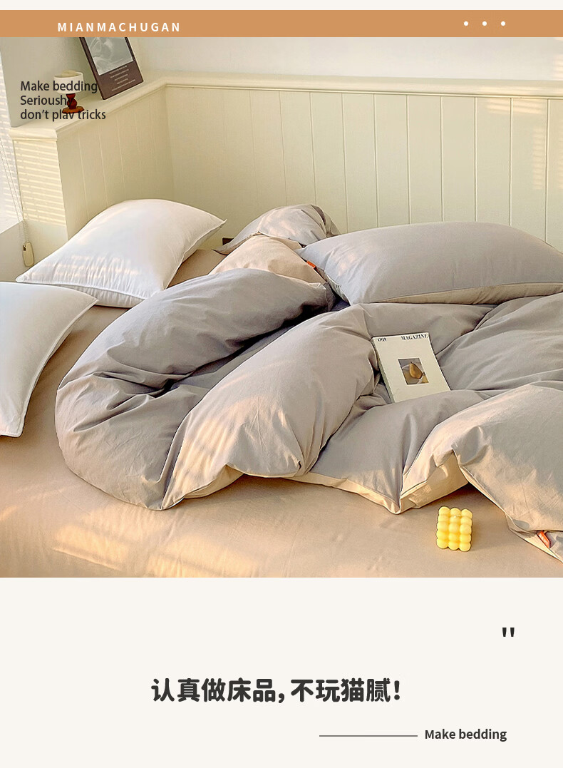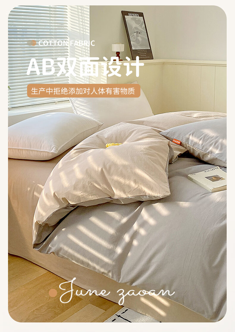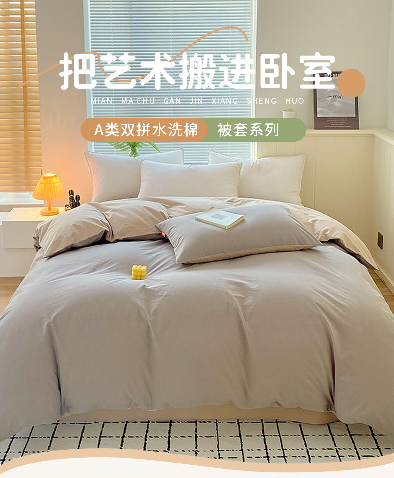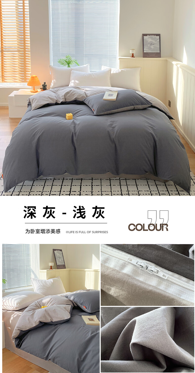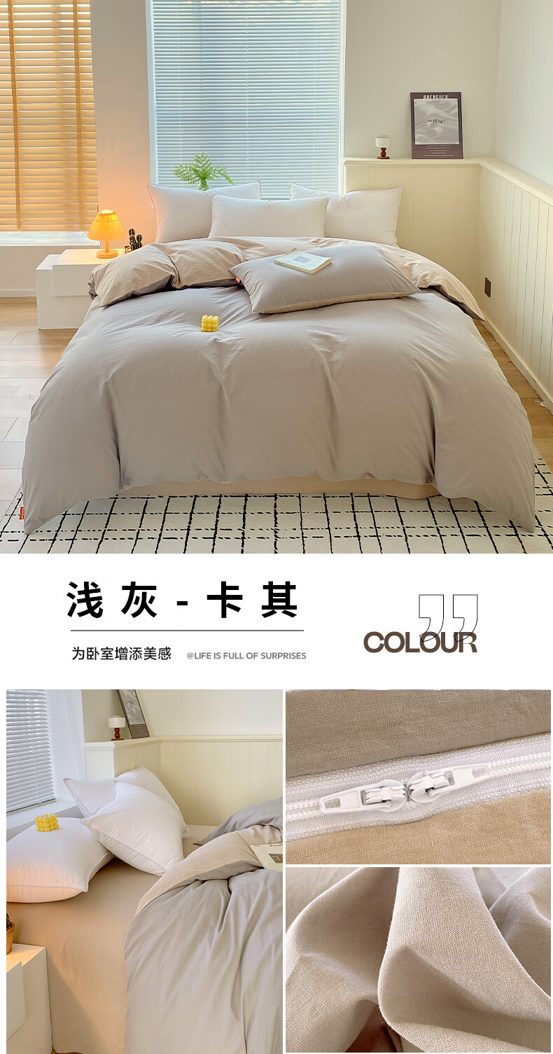 蜜乐暖A类100%纯棉被套单件水洗棉夏季单双人简约被单150x200学生被罩套 浅灰-卡其【A类亲肤无刺激舒适】 150x200cm【100%全棉舒适裸睡 单被套】