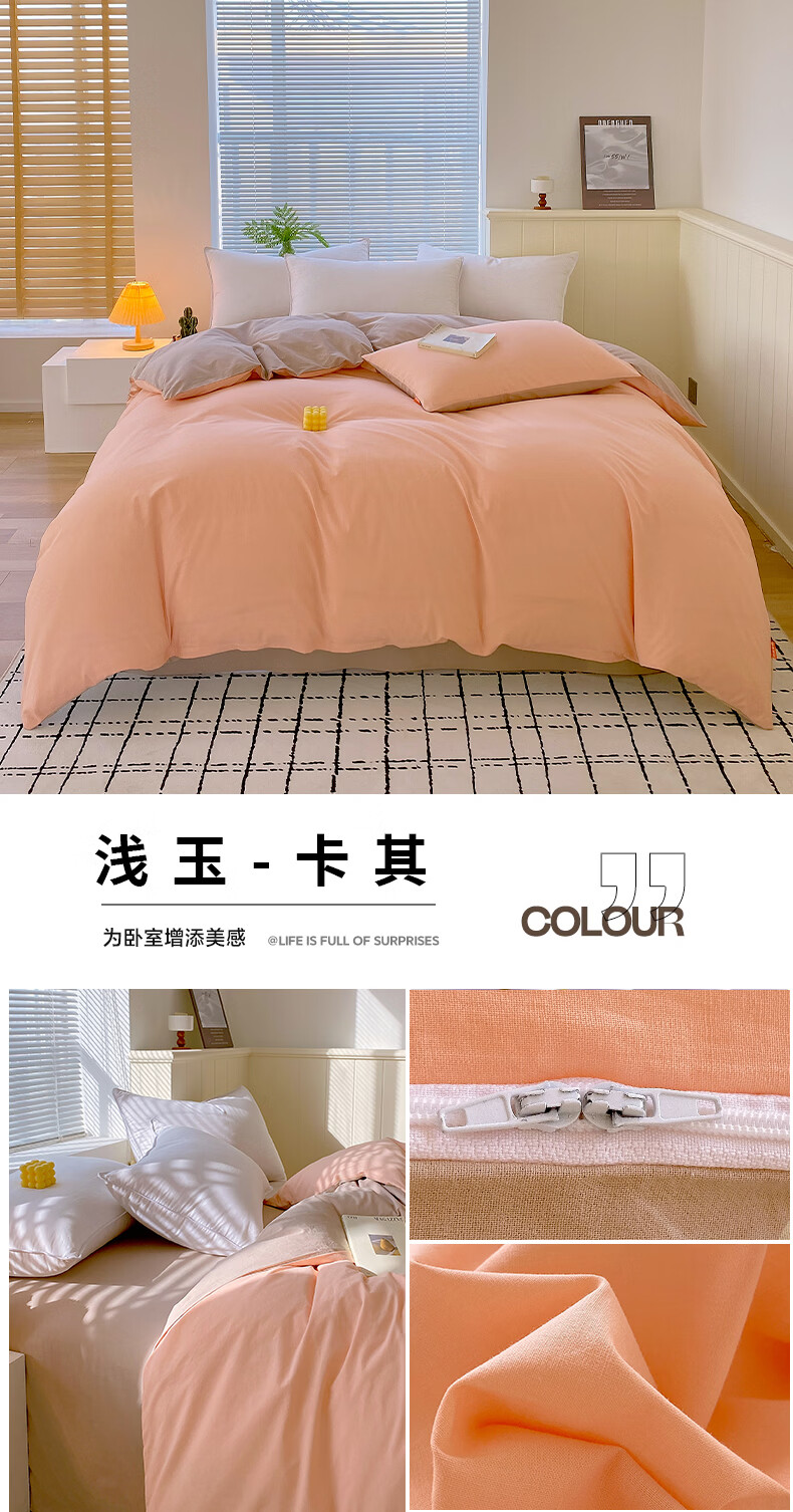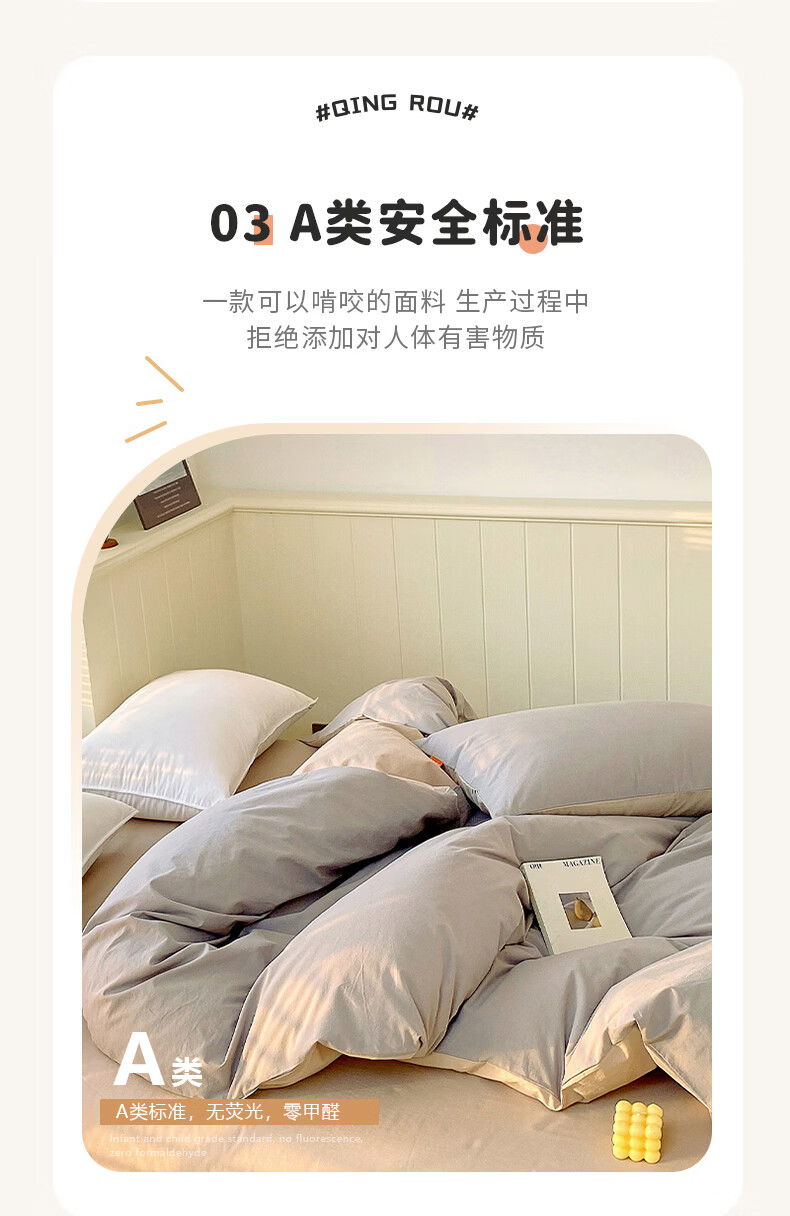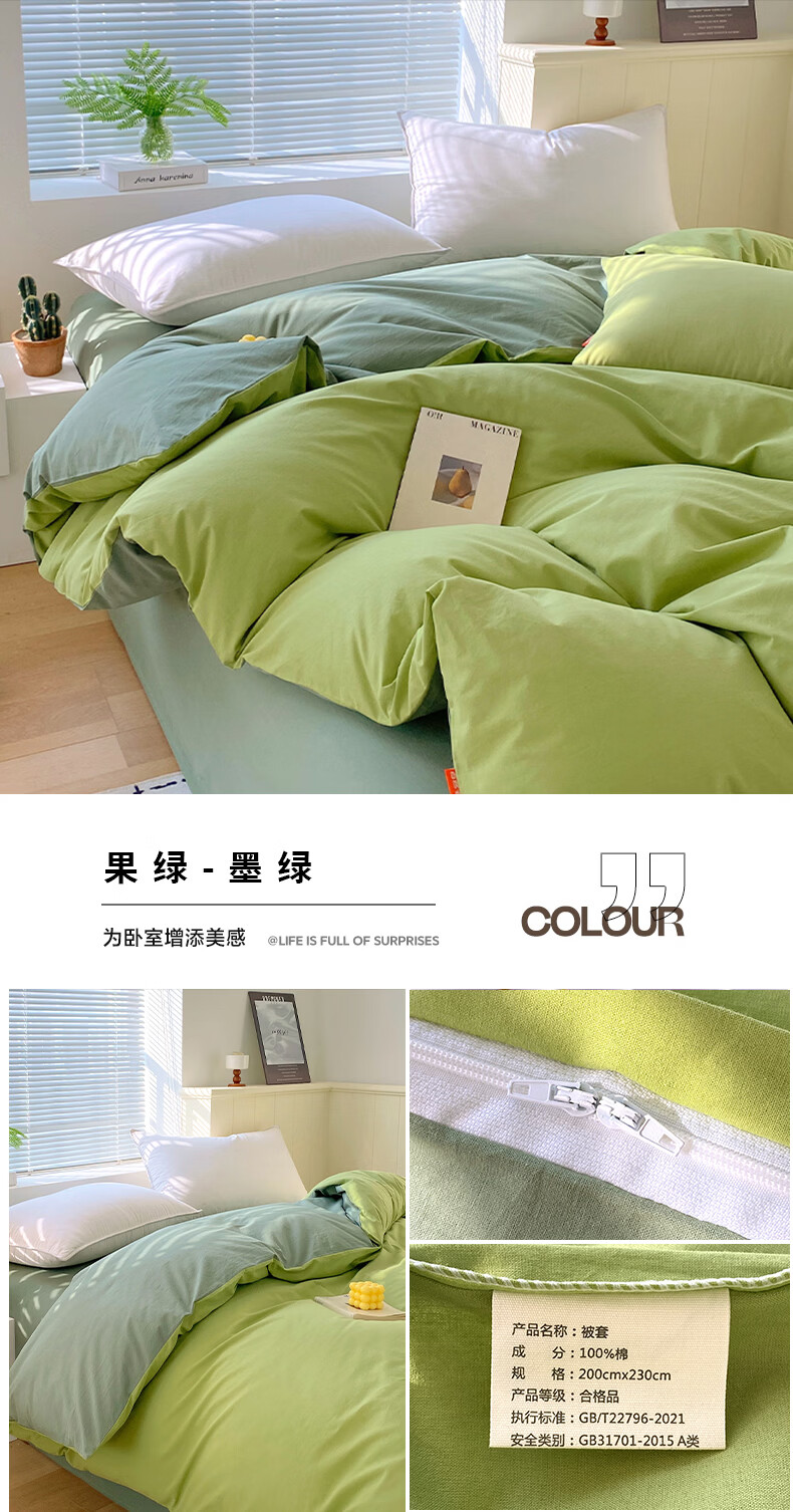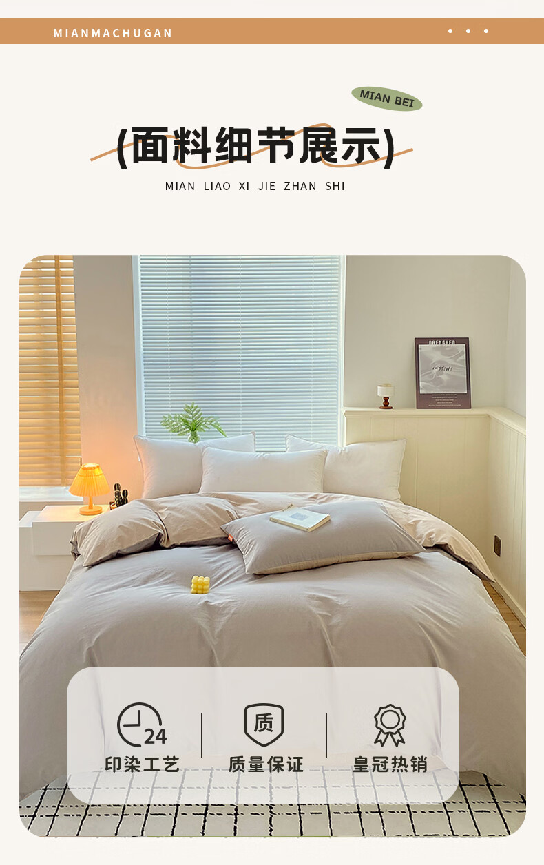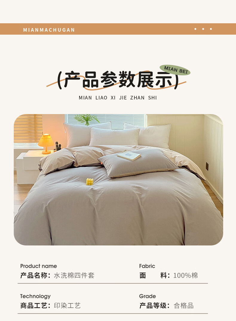 蜜乐暖A类100%纯棉被套单件水洗棉夏季单双人简约被单150x200学生被罩套 浅灰-卡其【A类亲肤无刺激舒适】 150x200cm【100%全棉舒适裸睡 单被套】