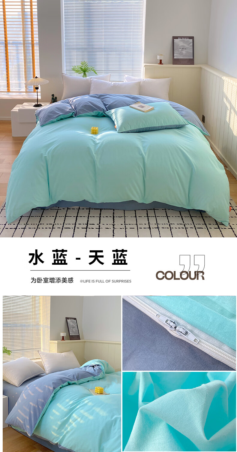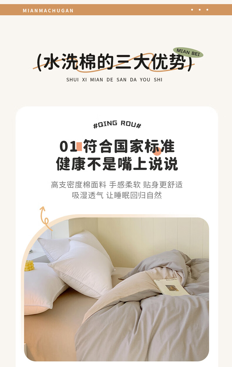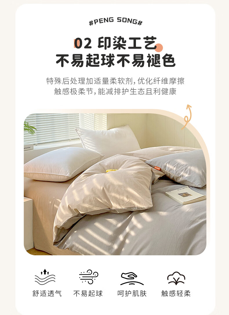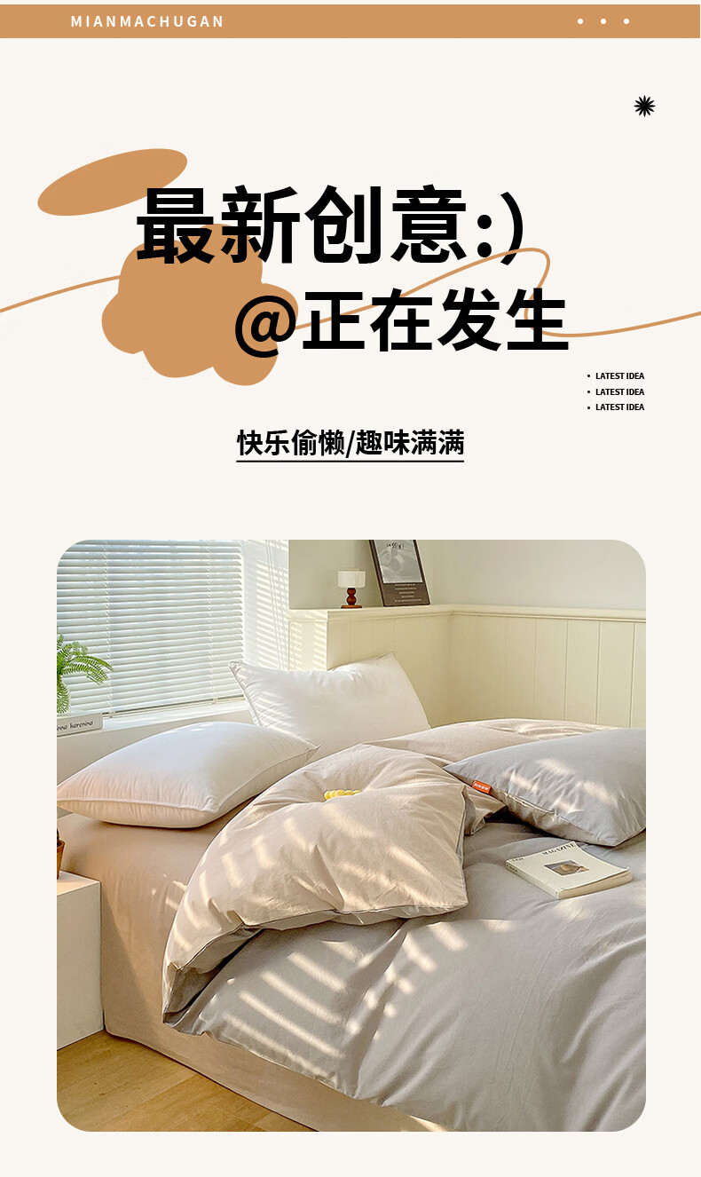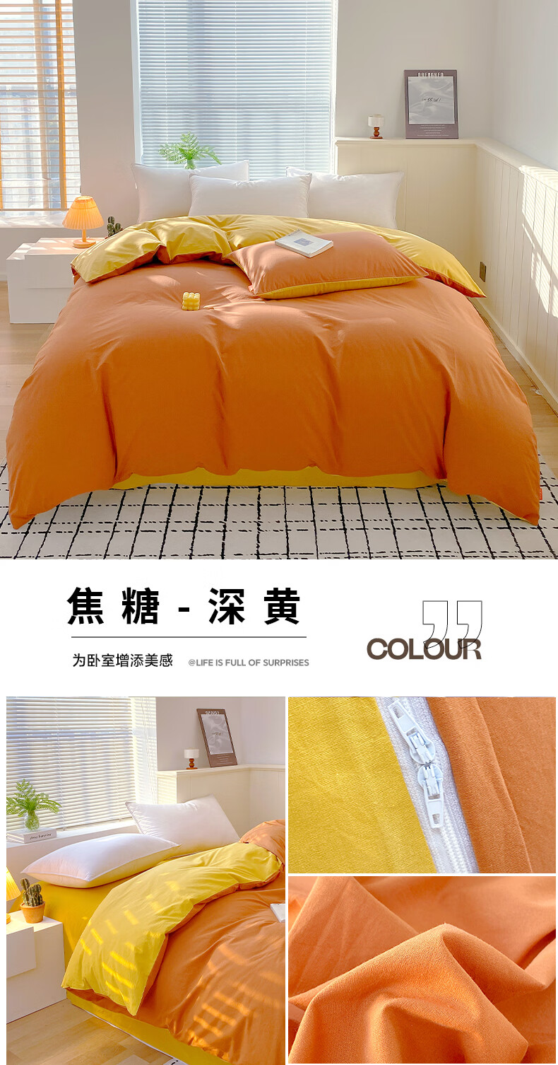 蜜乐暖A类100%纯棉被套单件水洗棉夏季单双人简约被单150x200学生被罩套 浅灰-卡其【A类亲肤无刺激舒适】 150x200cm【100%全棉舒适裸睡 单被套】