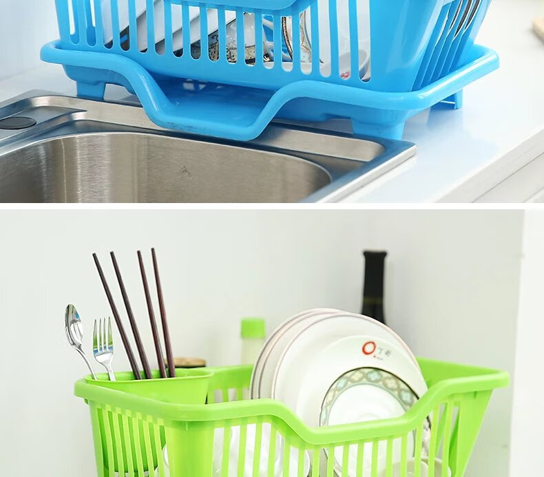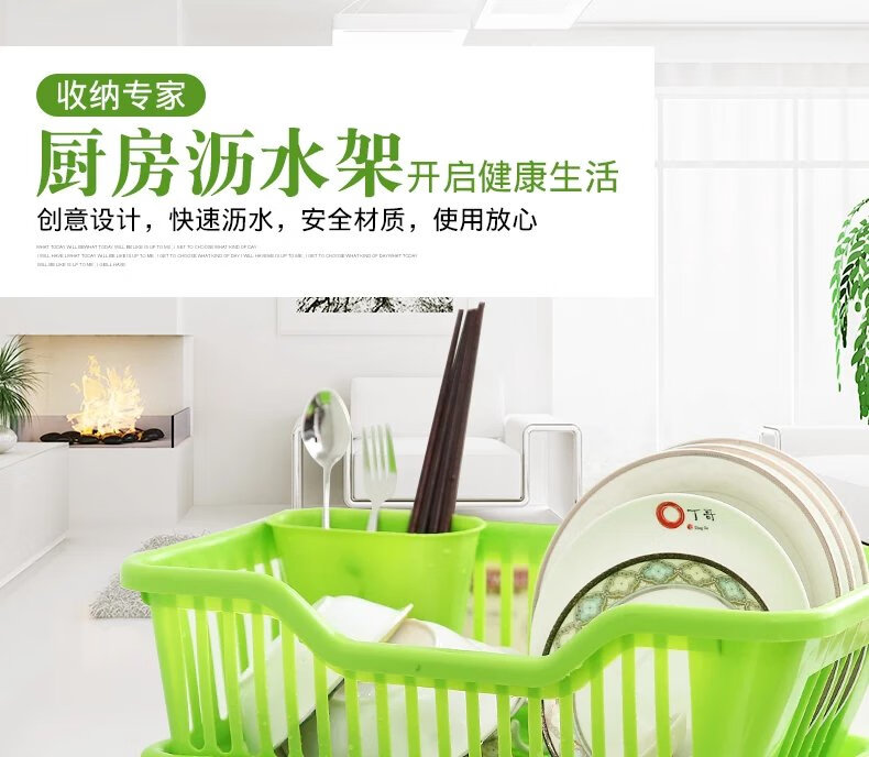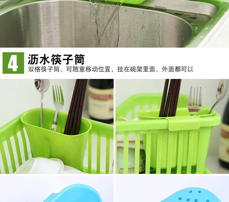 碗架厨房用品沥水碗架厨房碗盘置物架碟筷子收纳架收纳篮置物架 正面中号绿色