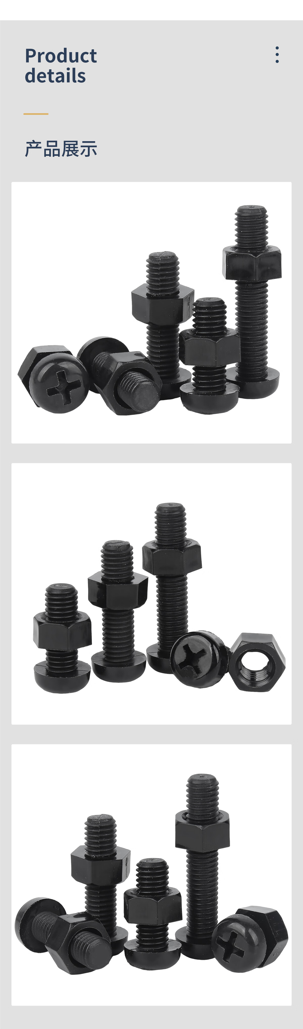 固万基(GUWANJI)黑色尼龙十字圆头螺丝塑料绝缘塑胶盘头螺钉带螺母套装组合螺栓 M2x4[50套]