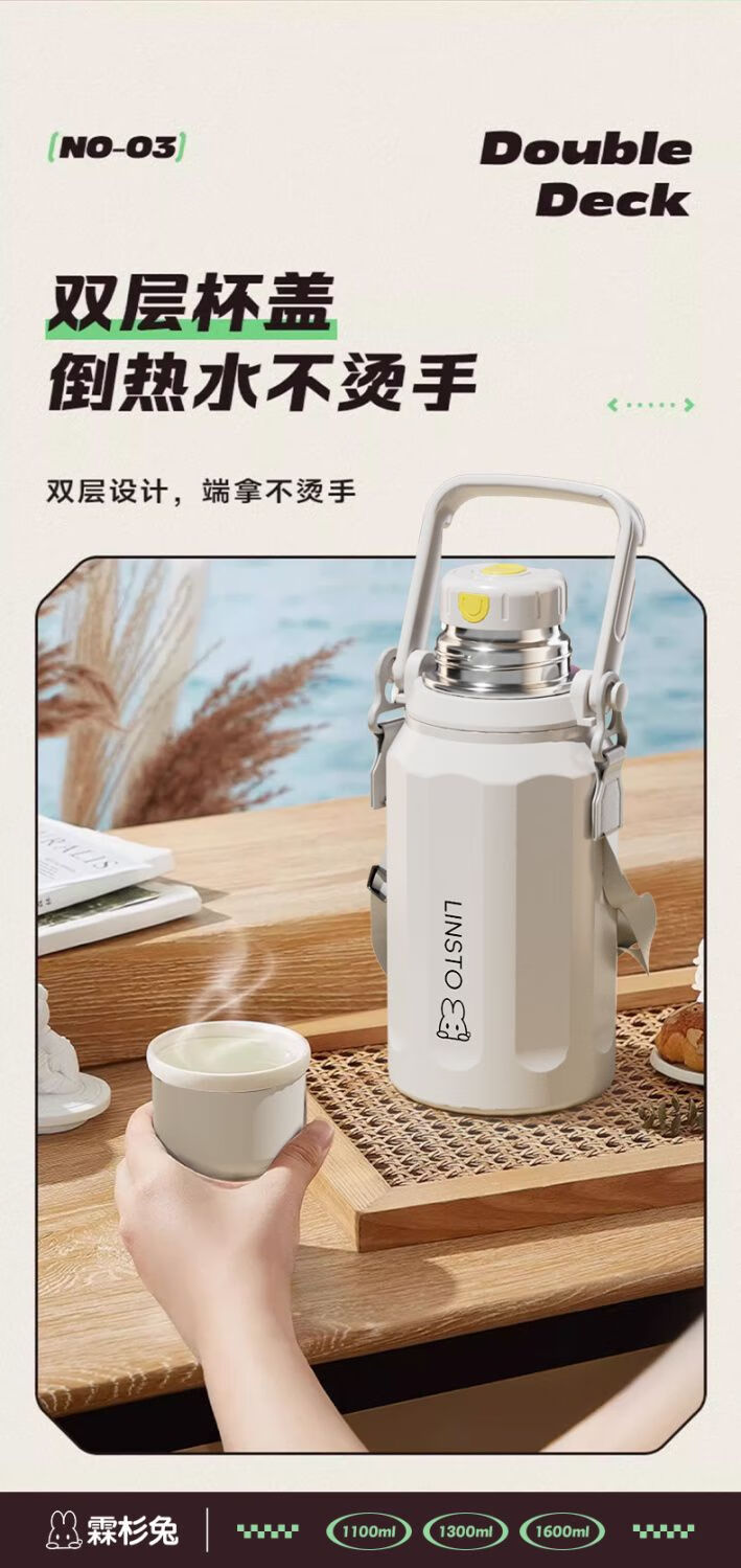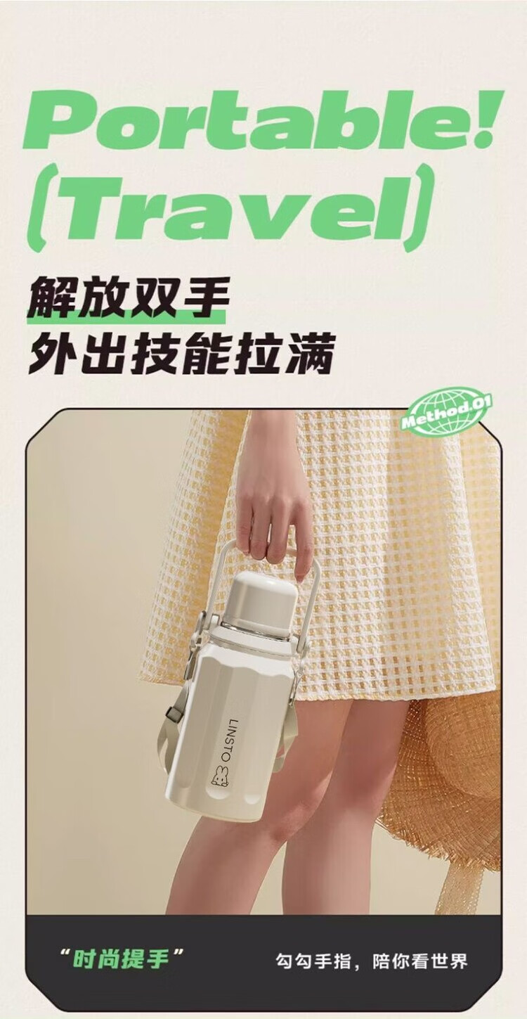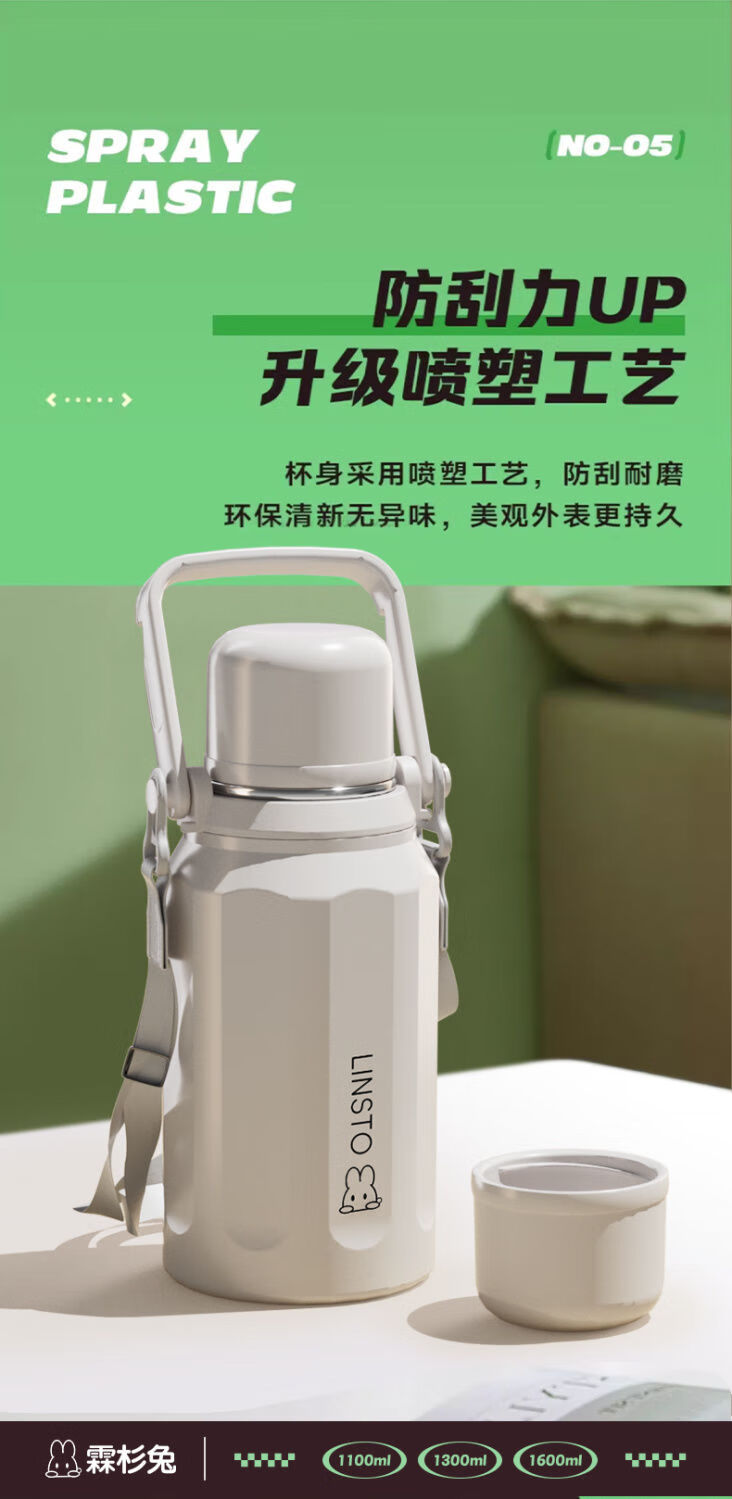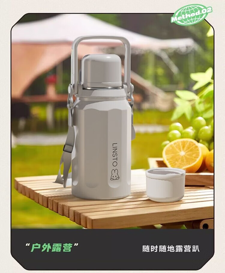花沐禧保温杯大容量登山男女通用高颜值杯子304不锈钢水壶户外车载旅行 500毫升颜色随机 316内底(肩背带)带网片
