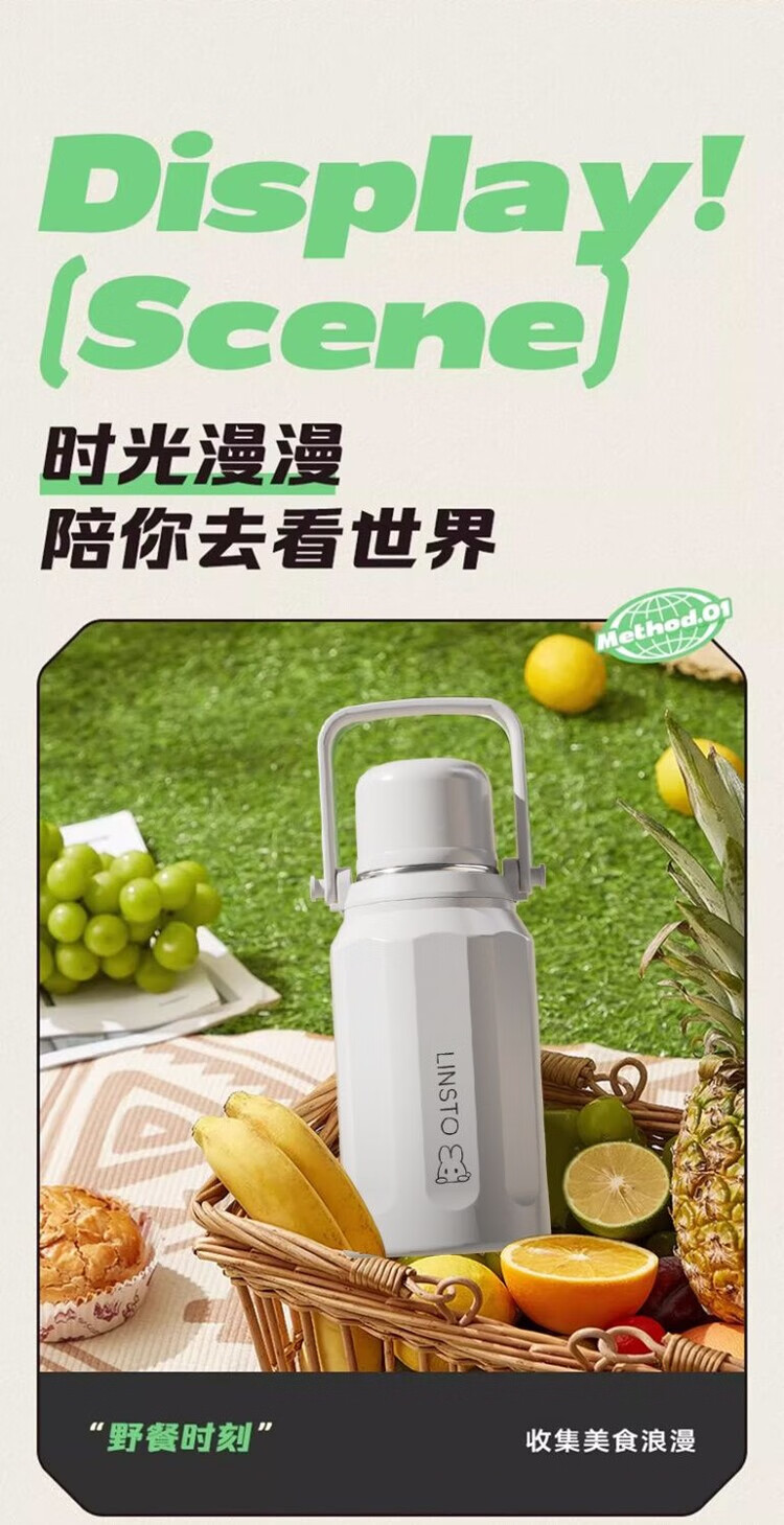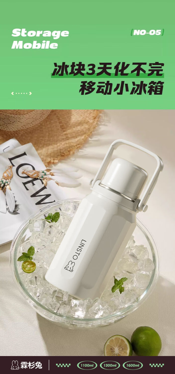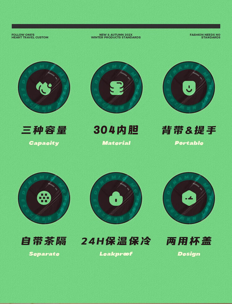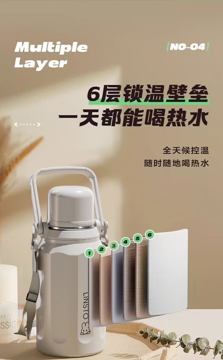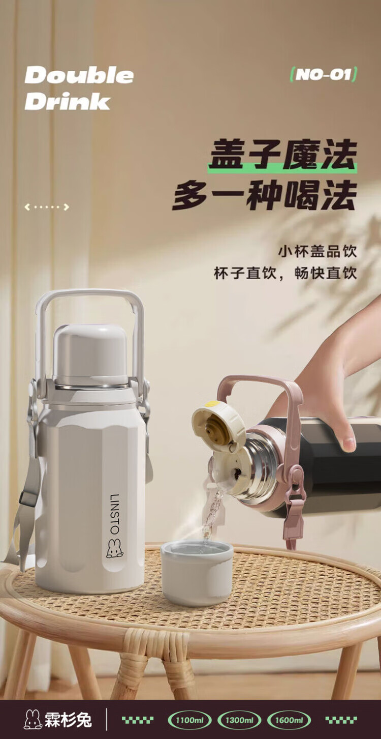 花沐禧保温杯大容量登山男女通用高颜值杯子304不锈钢水壶户外车载旅行 500毫升颜色随机 316内底(肩背带)带网片