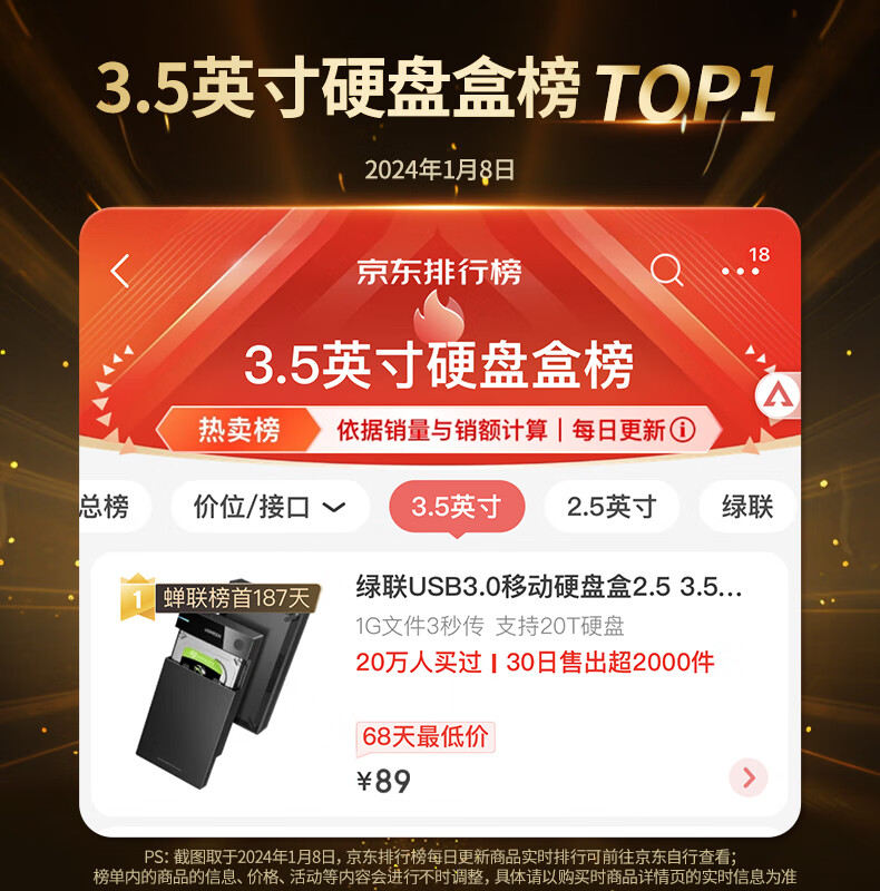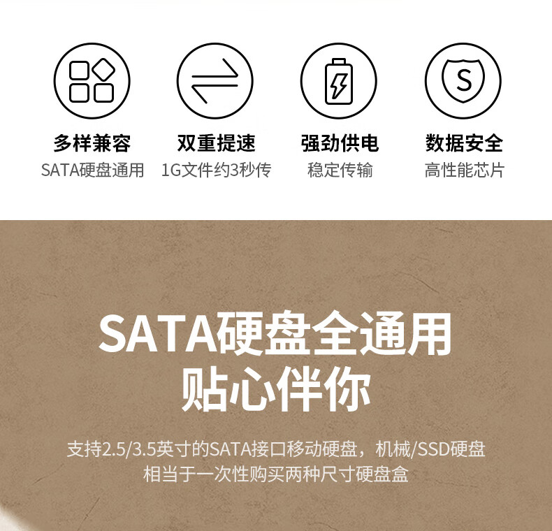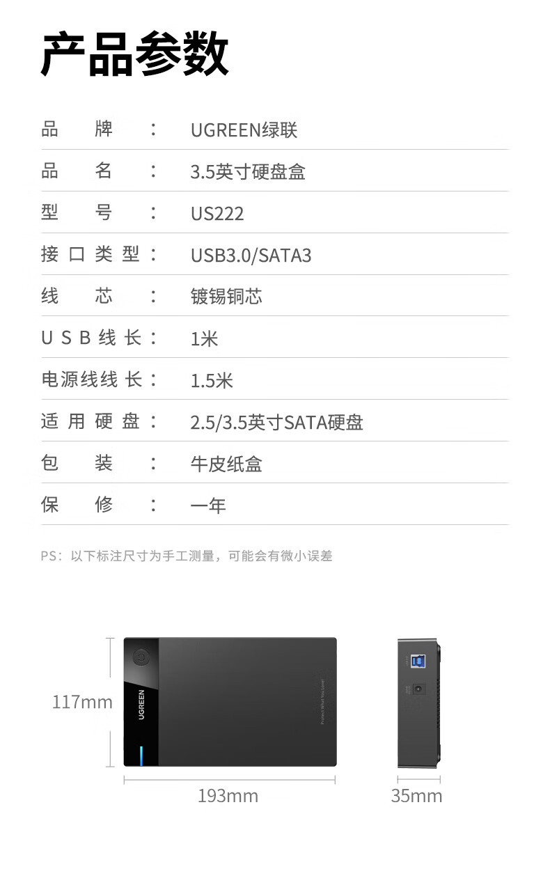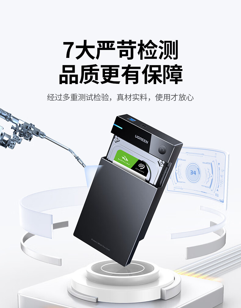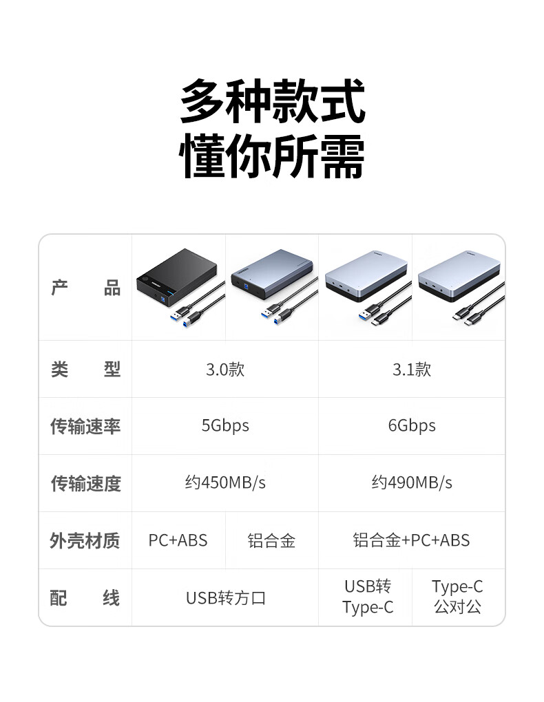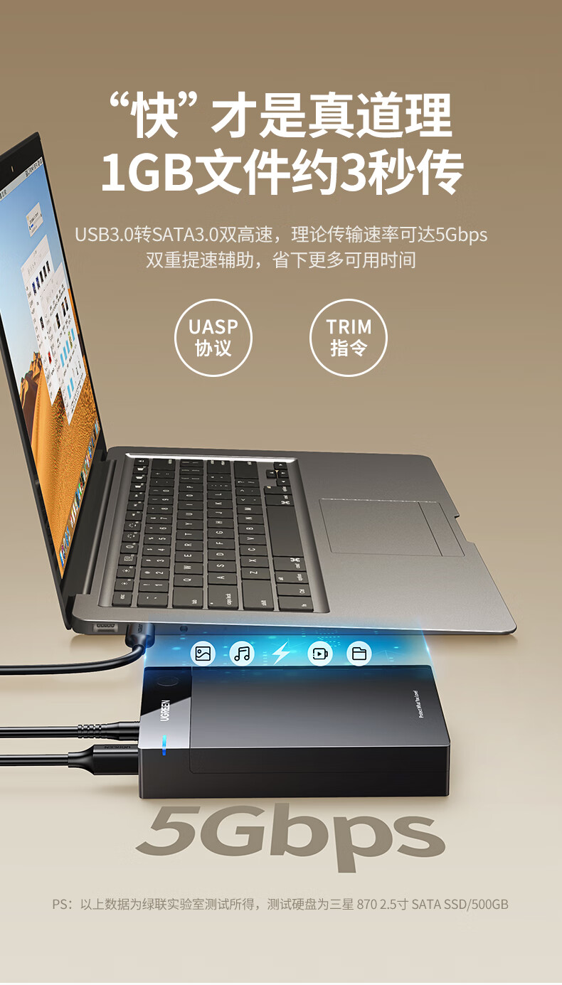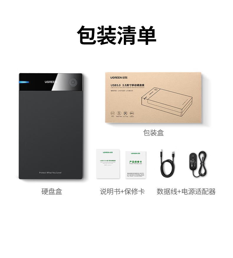 绿联 USB3.0移动硬盘盒2.5/3.5英寸Type-C固态硬盘盒 适用SATA串口台式机笔记本电脑固态机械SSD外置盒 USB3.0款【5Gbps】