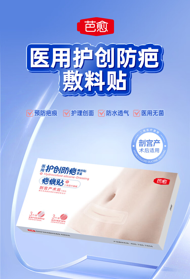 欣奕【剖腹产疤痕贴套盒】医用疤痕贴剖宫产外科手术后剖腹产疤痕贴 剖腹产疤痕贴套盒【18cm*7cm*3片】
