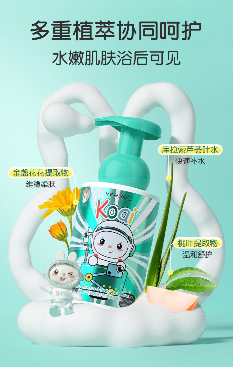 英氏(YEEHOO)儿童沐浴露洗发水二合一新生婴幼儿宝宝艾叶沐浴露温和清洁 艾叶二合一376ml