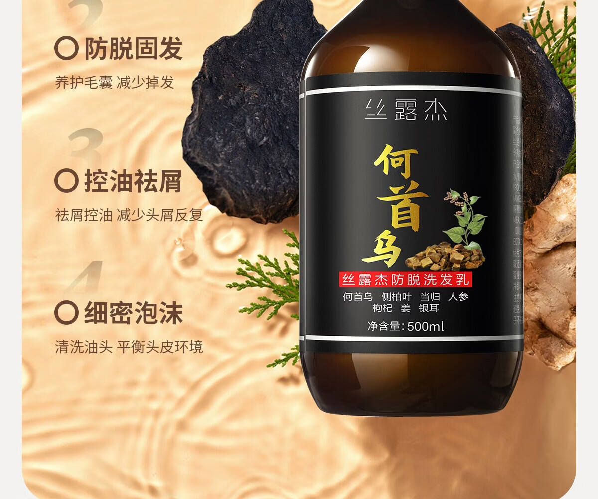 丝露杰(SLUJ)何首乌防脱洗发乳500ml 正品侧柏叶洗发水当归防脱养发固发密发生 500ml*6瓶装(持证防脱)