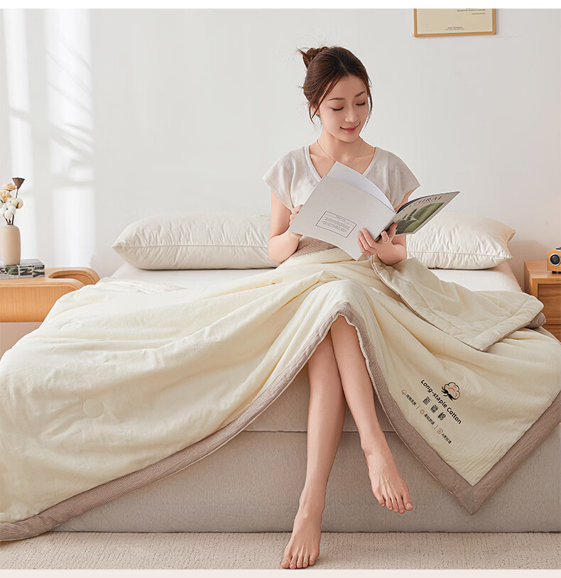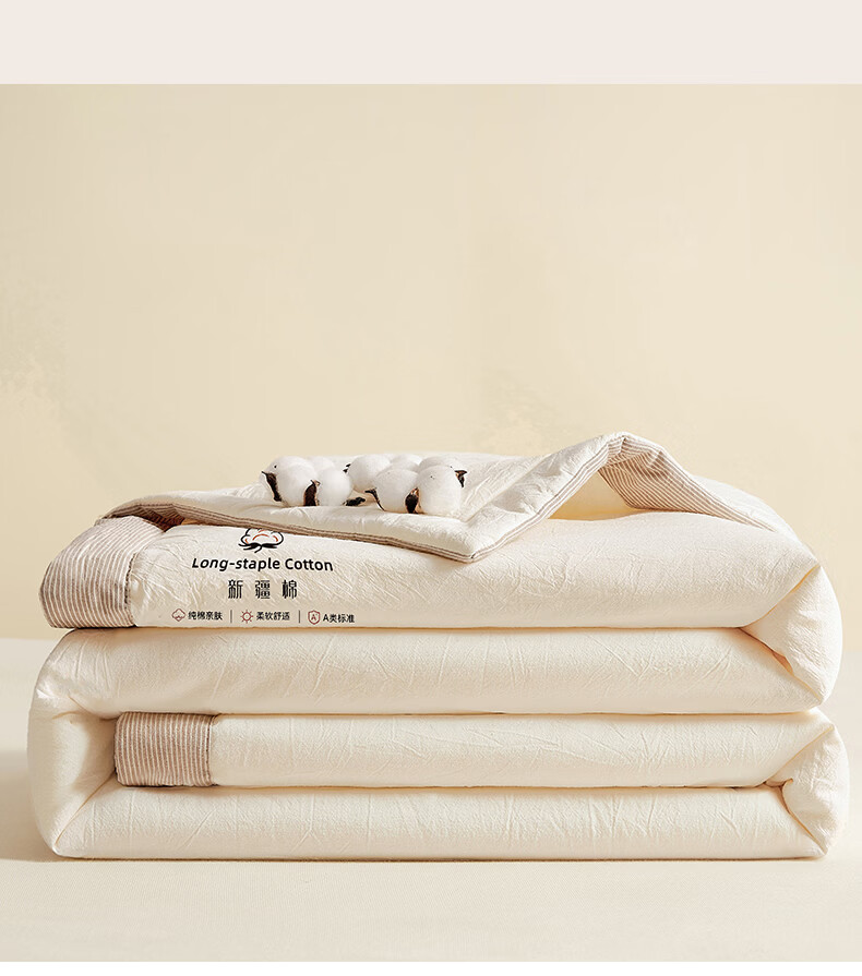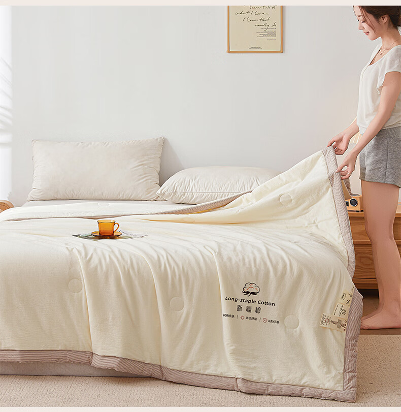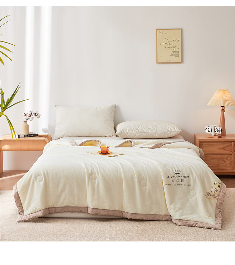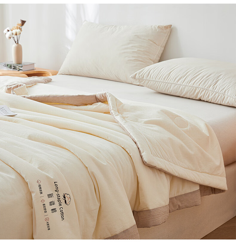 VJE夏天夏凉被纯棉全棉花夏被可机洗单双人学生宿舍凉感家用空调被子 新疆棉-米白【100%新疆棉 假一罚十 包检测】 150*200cm夏凉被