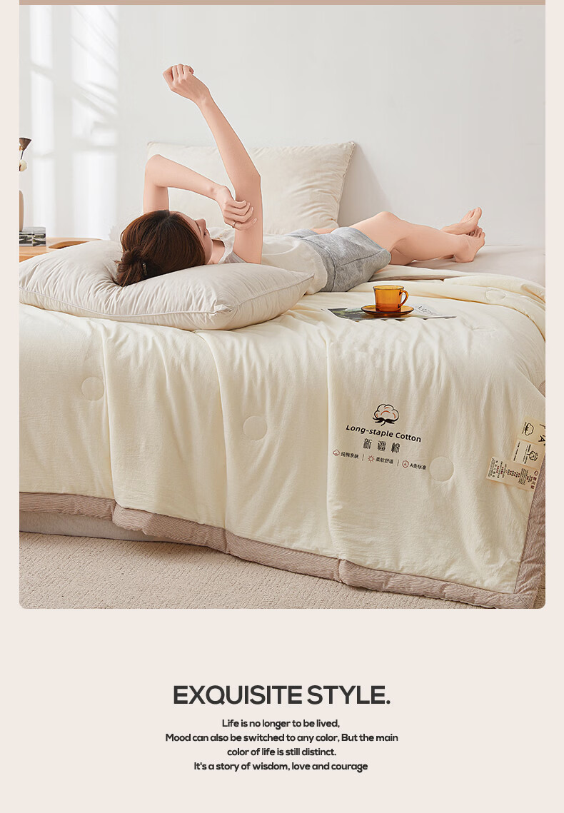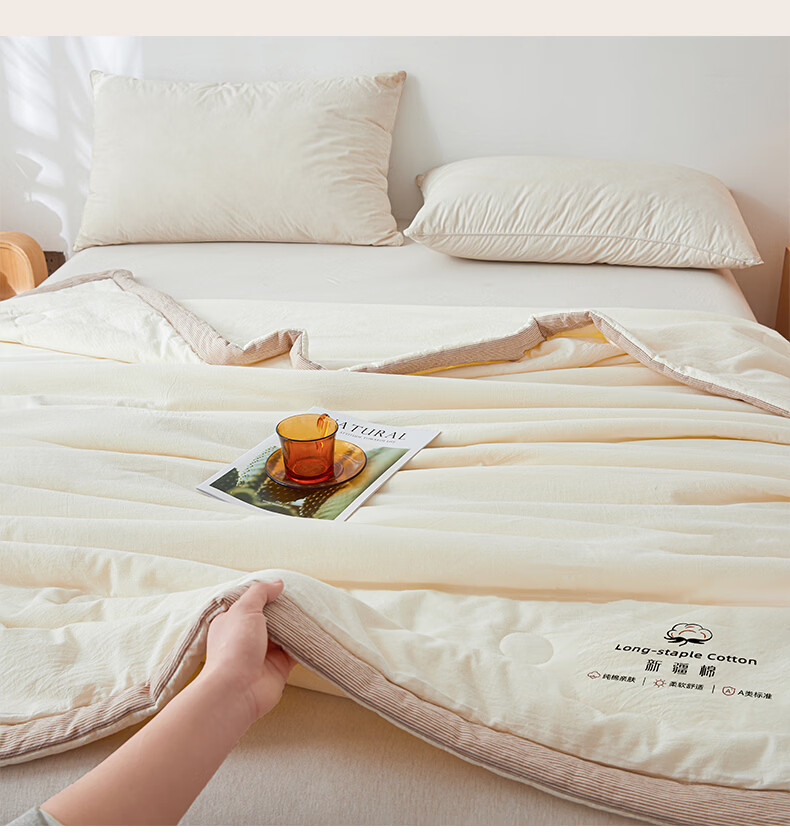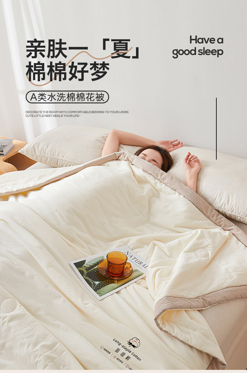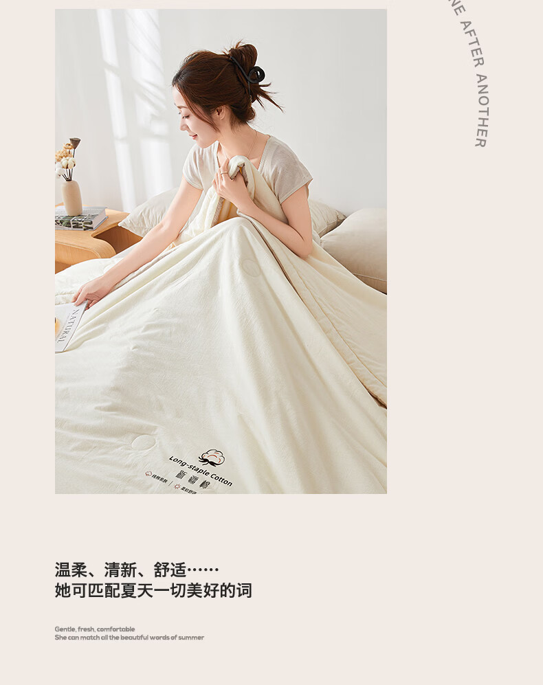 VJE夏天夏凉被纯棉全棉花夏被可机洗单双人学生宿舍凉感家用空调被子 新疆棉-米白【100%新疆棉 假一罚十 包检测】 150*200cm夏凉被