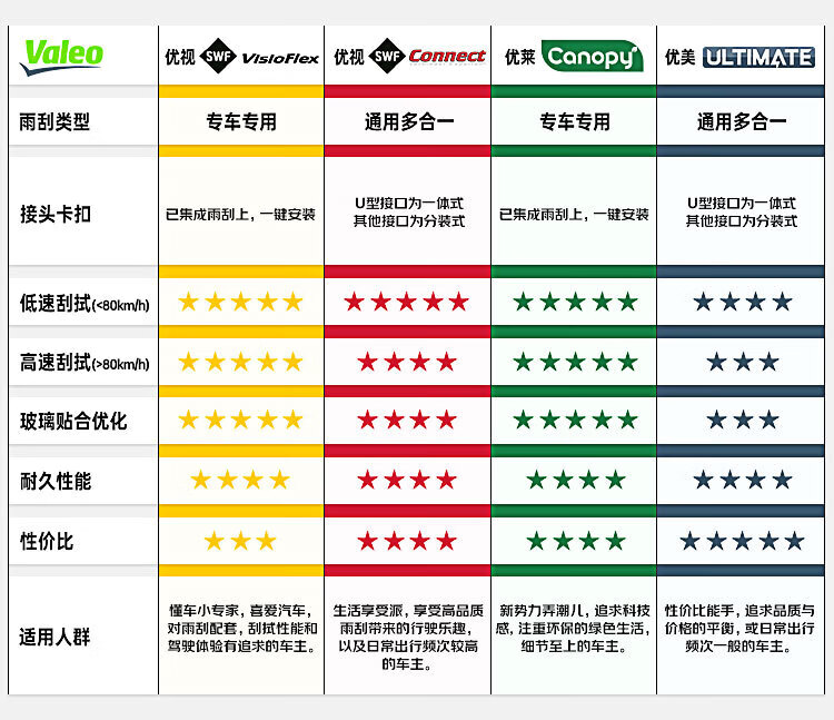 法雷奥(VALEO)SWF系列雨刮片无骨雨刷器26/20丰田亚洲龙/赛那/普拉多/格瑞维亚