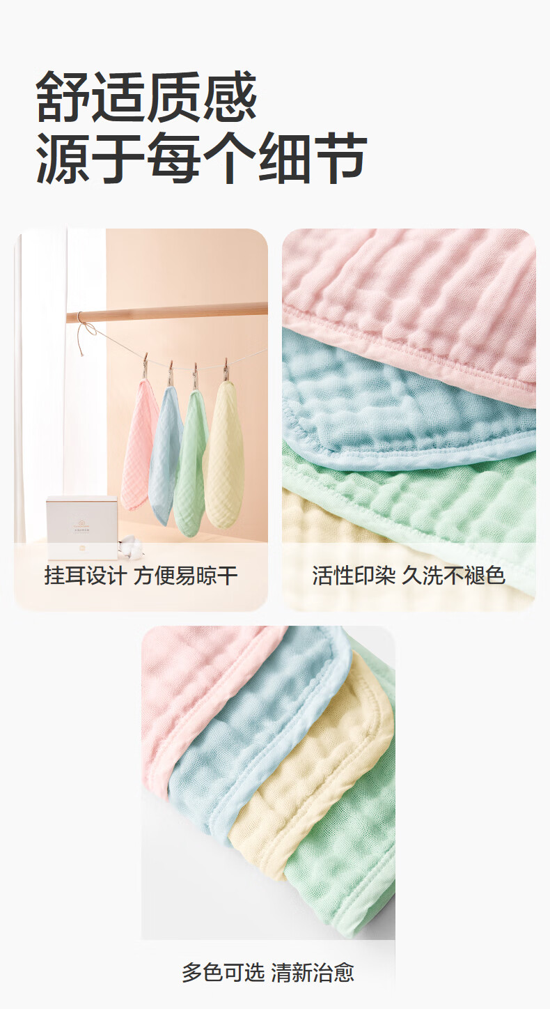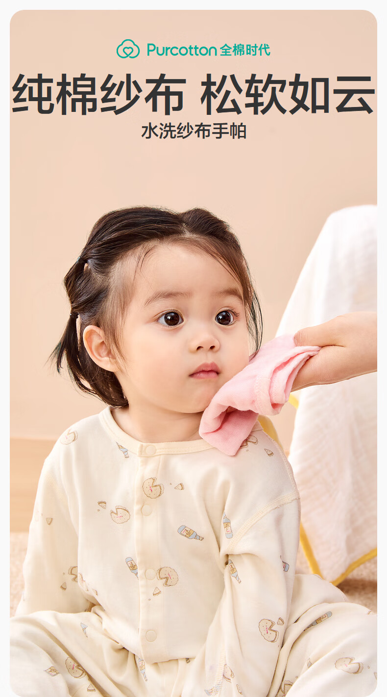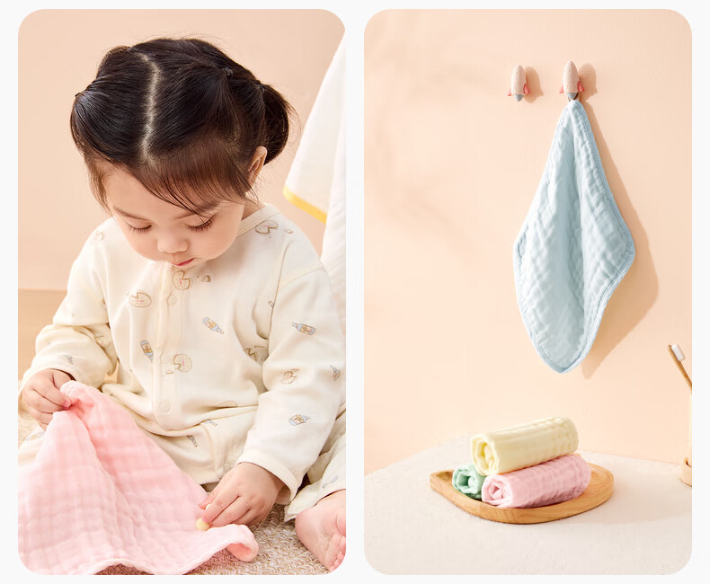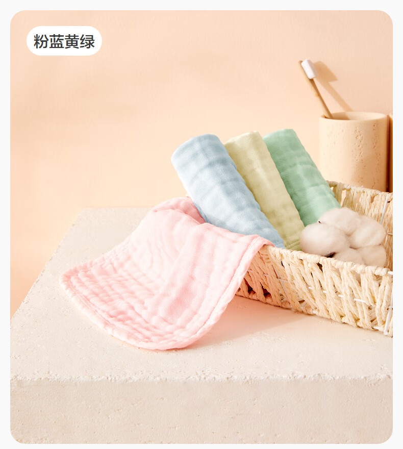 全棉时代婴儿口水巾儿童水洗纱布小毛巾洗脸礼盒4条装 粉蓝黄绿25×25cm