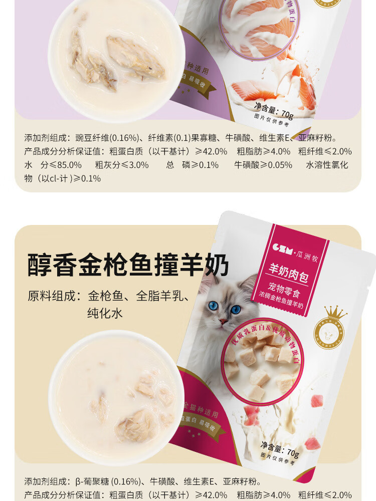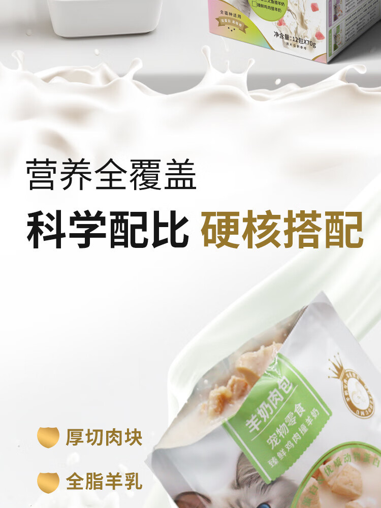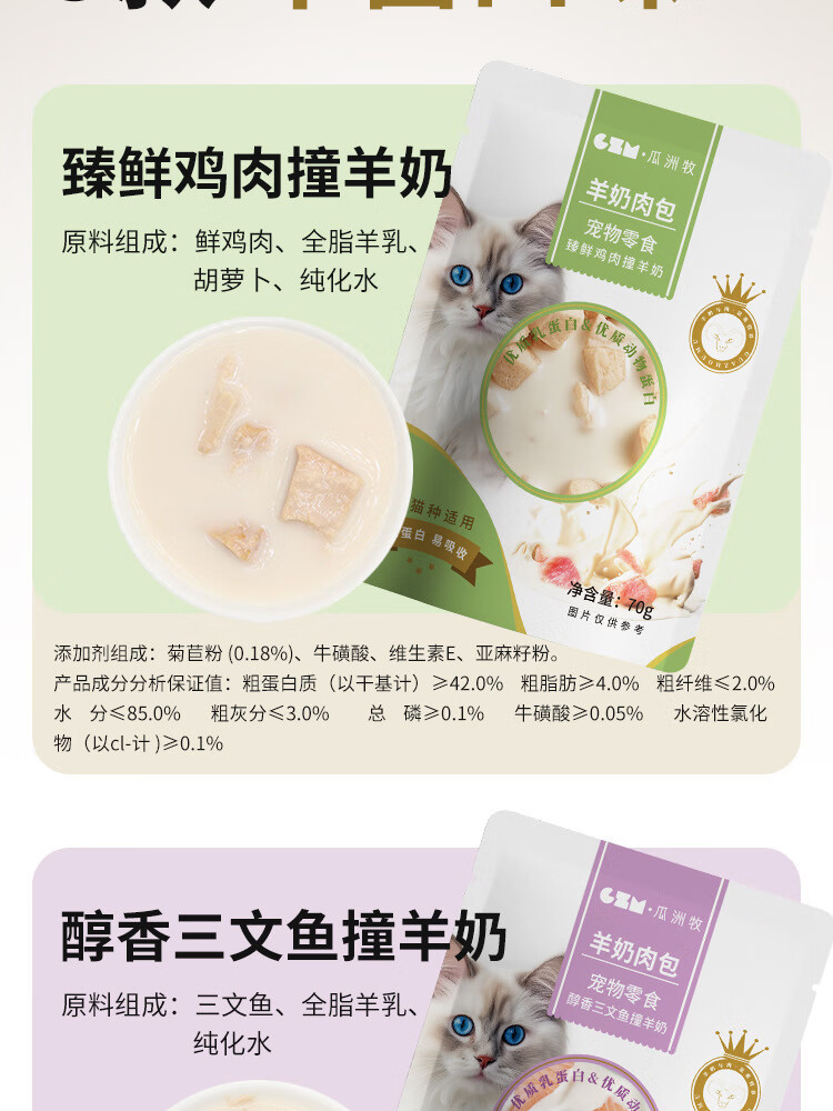 瓜洲牧猫咪羊奶肉包补充营养补水增肥成幼猫狗狗湿粮宠物营养品猫咪零食 羊奶肉包【鸡肉】