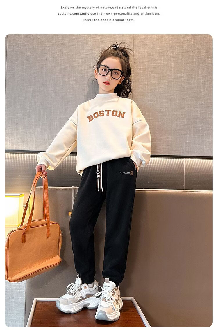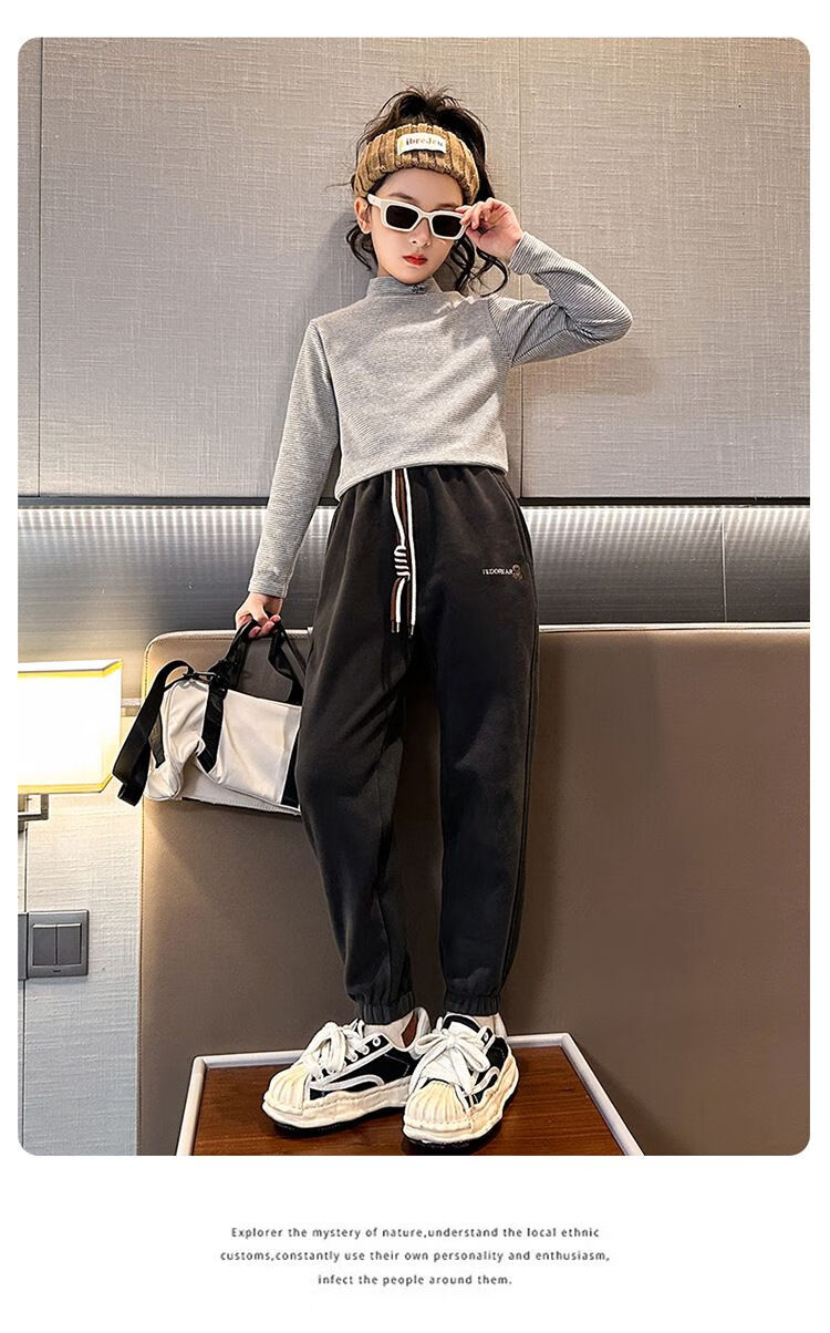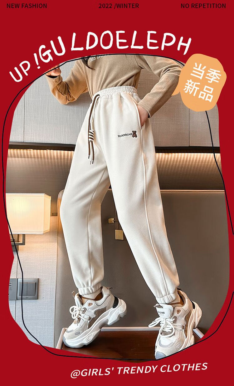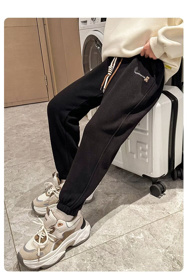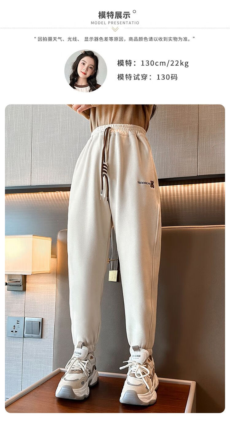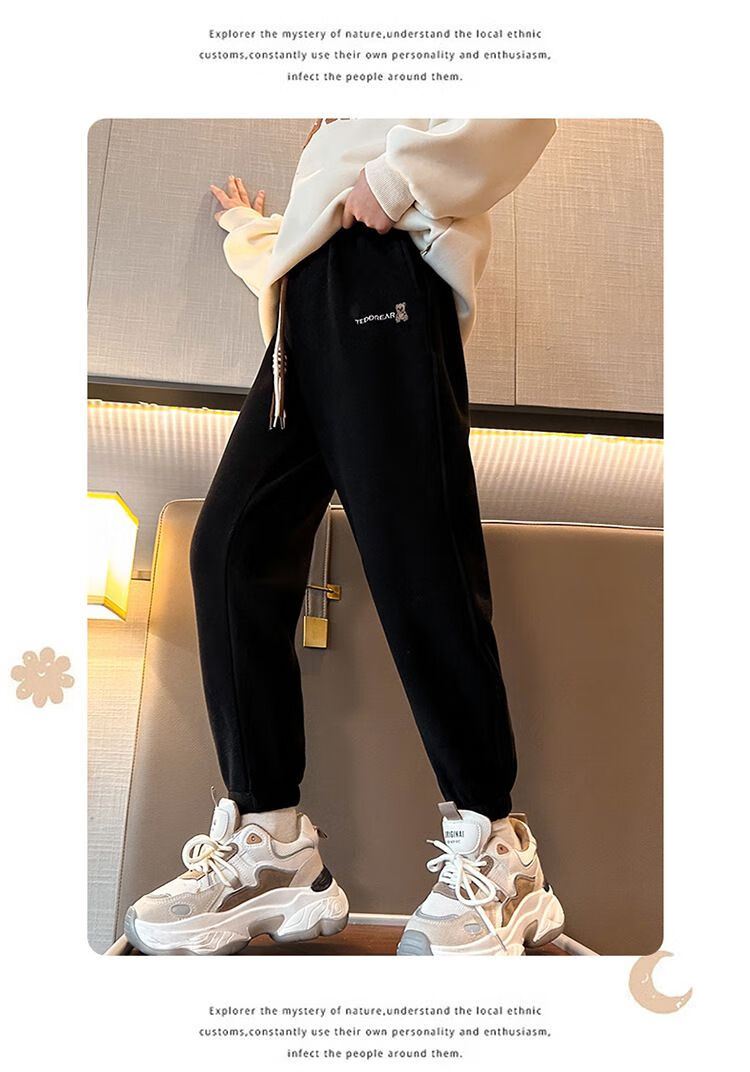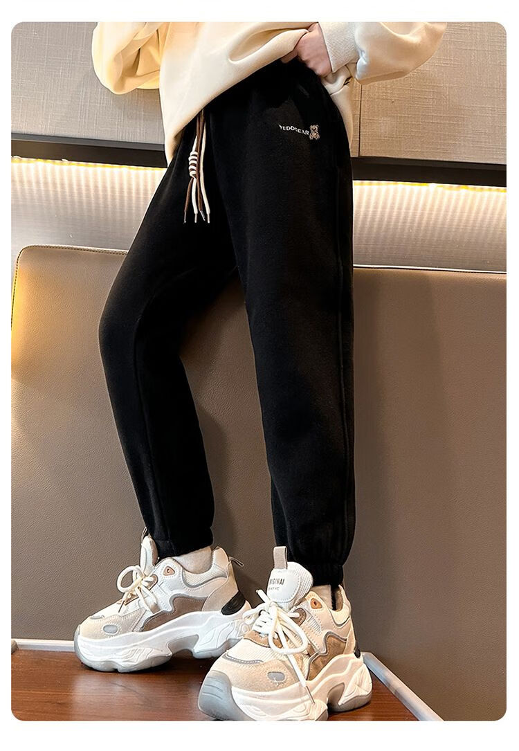 淘町冬季新款儿童加绒裤韩版女童休闲长裤中大童一体绒保暖裤子潮 黑色 110