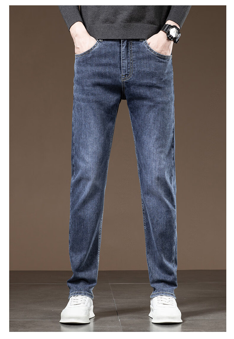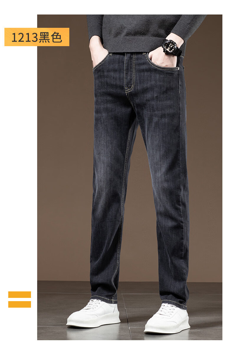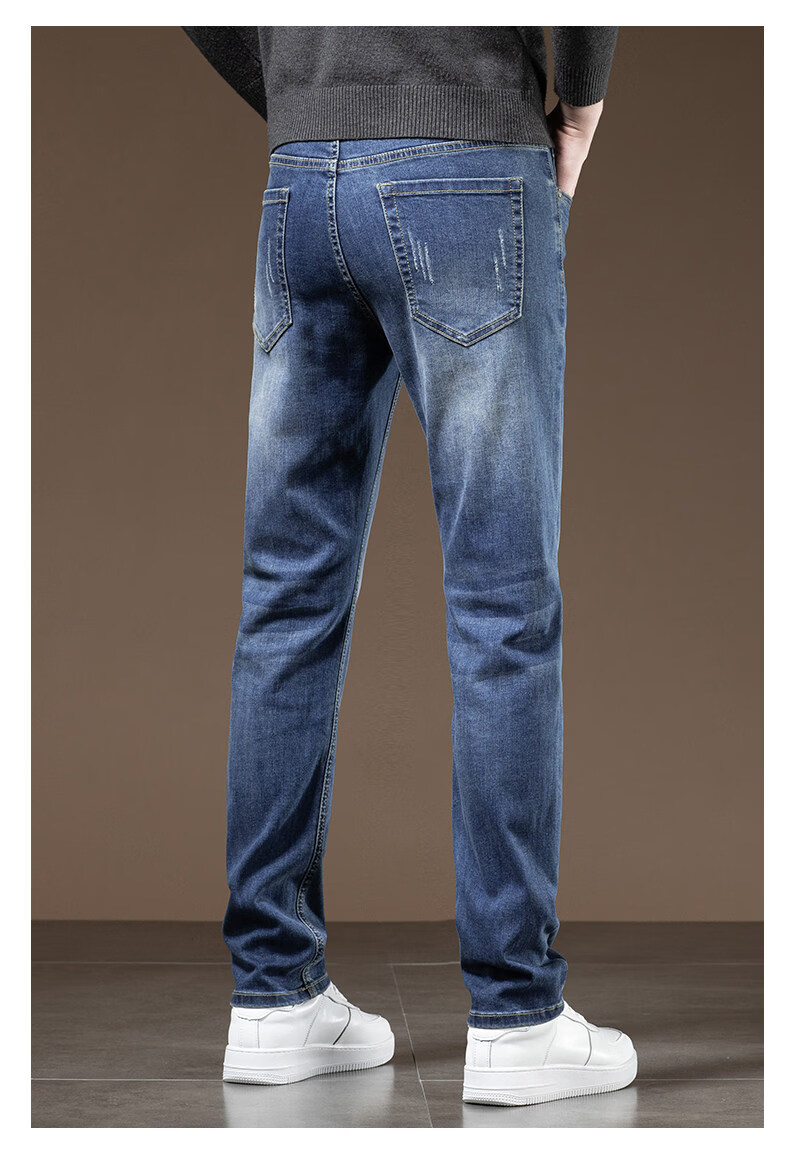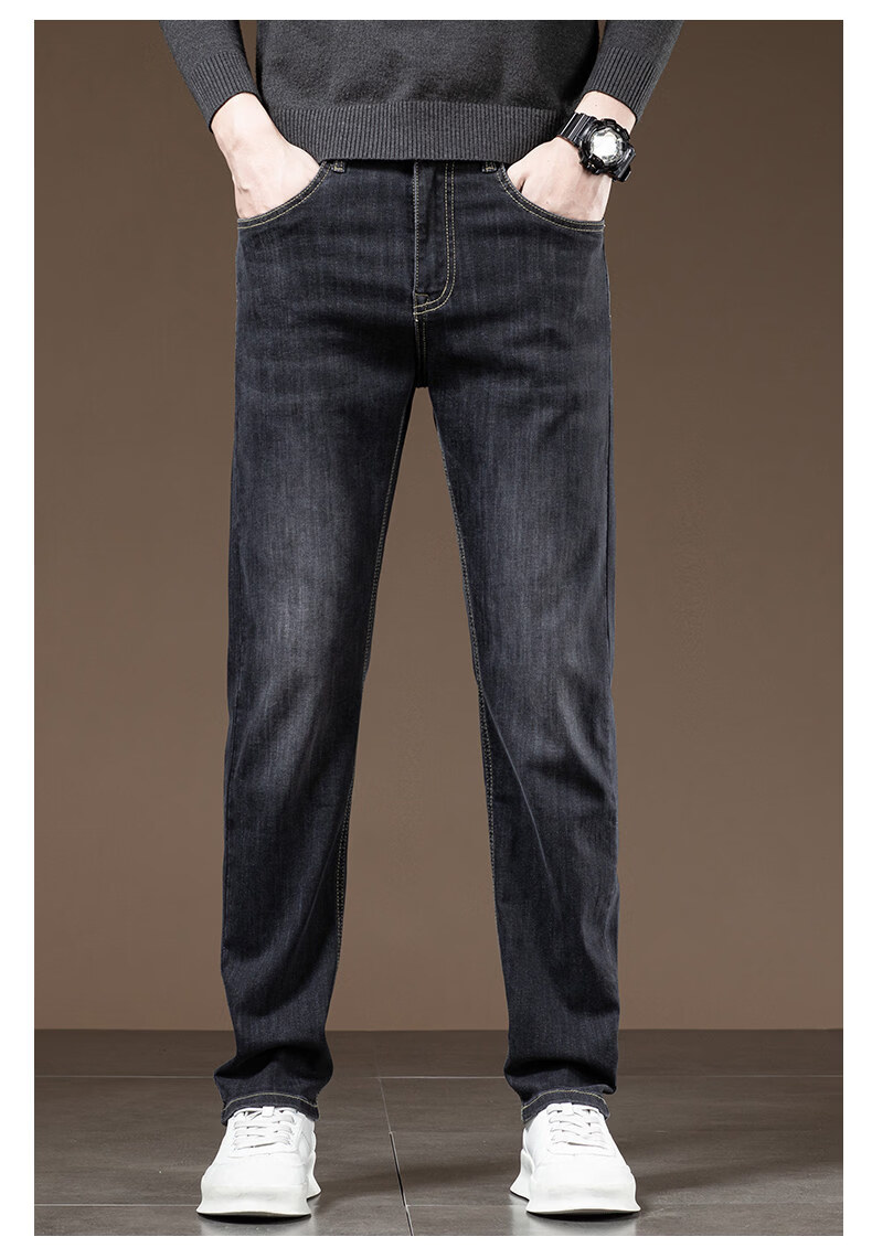 真维斯(Jeanswest)秋冬季男士牛仔裤男款修身直筒加绒2026新款休闲长裤子男裤 蓝灰色常规 28