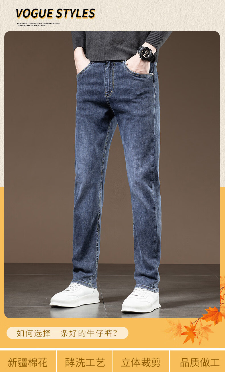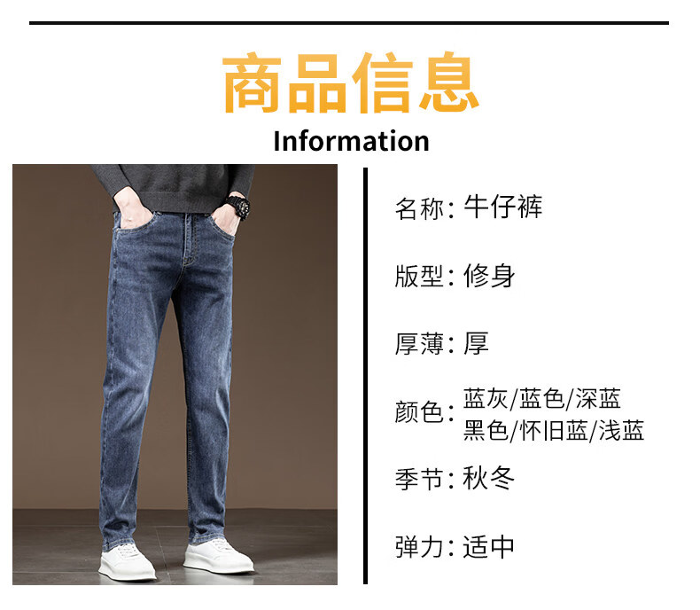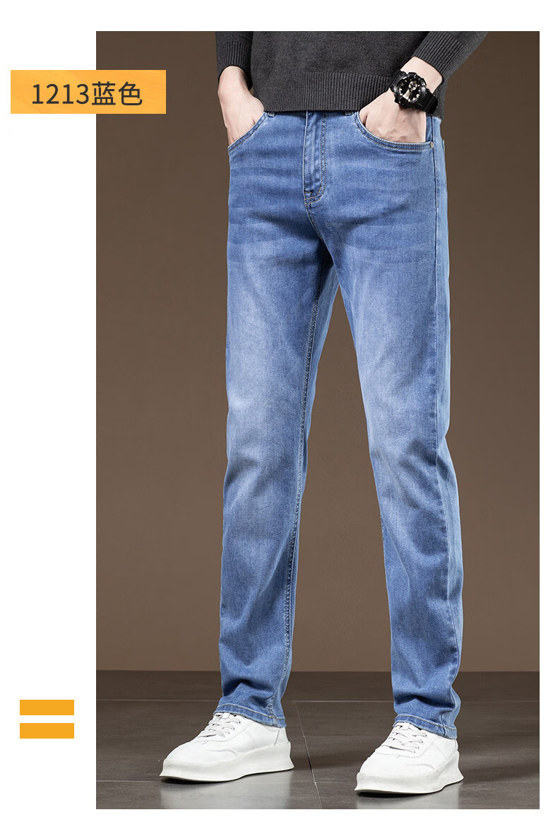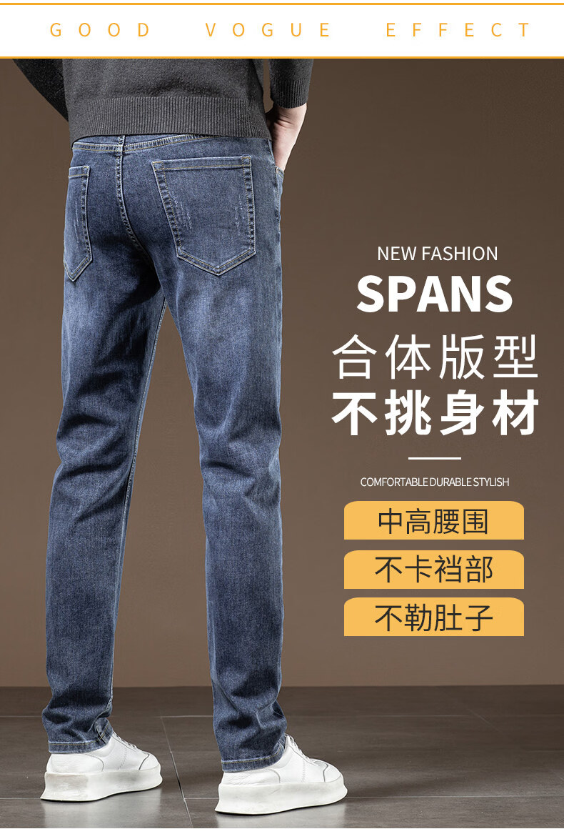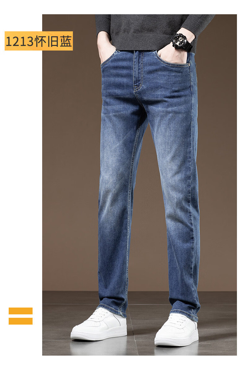 真维斯(Jeanswest)秋冬季男士牛仔裤男款修身直筒加绒2026新款休闲长裤子男裤 蓝灰色常规 28
