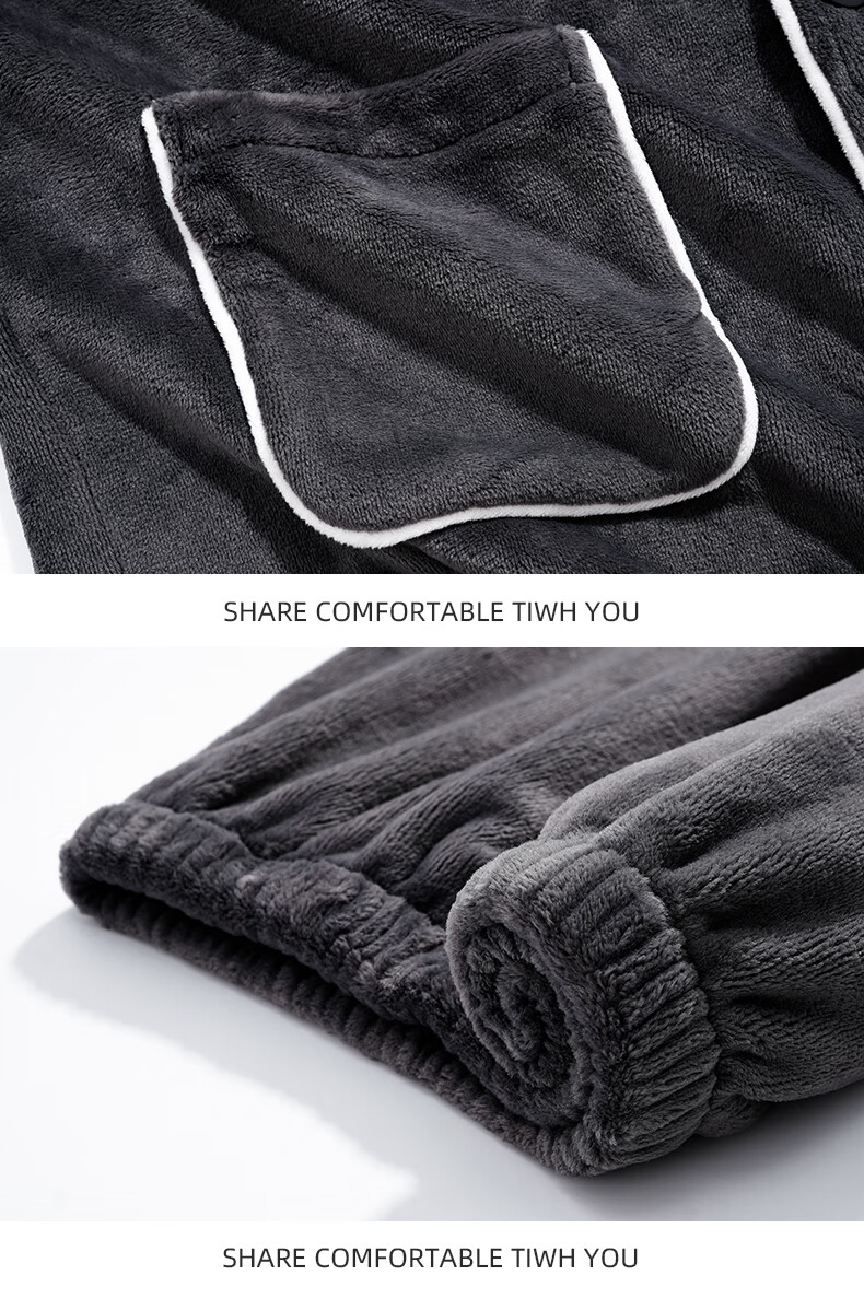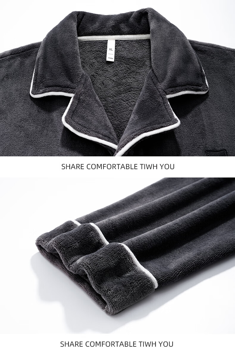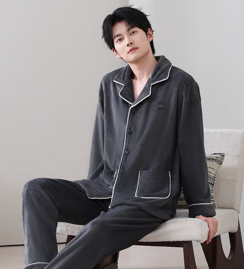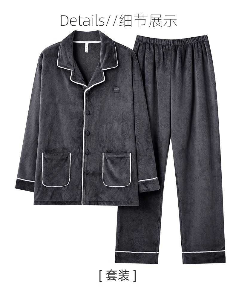 允织法兰绒睡衣男士冬季秋冬款加厚保暖2026新款珊瑚绒家居服大码套装 5905-黑灰 L (170) :建议100-135斤穿着