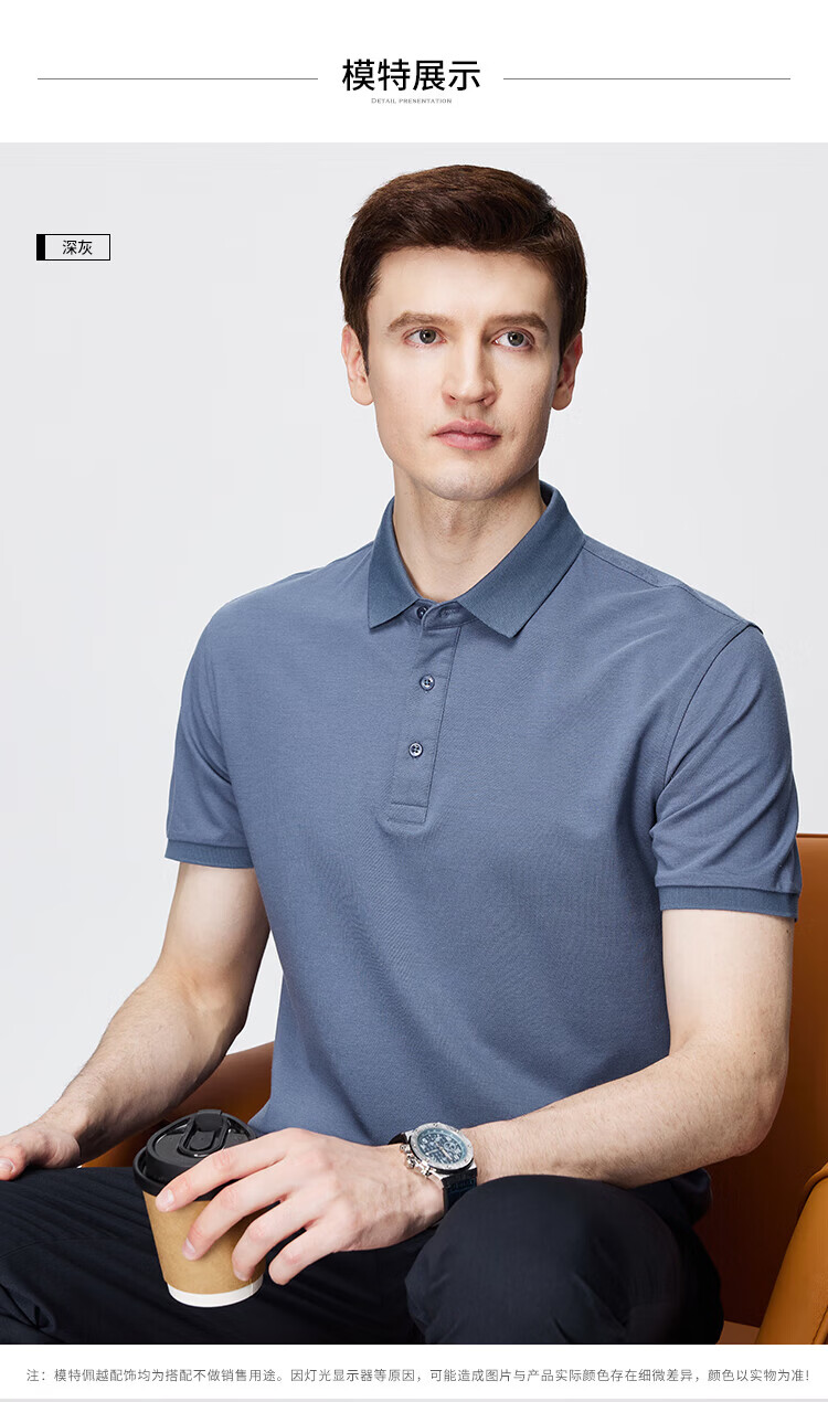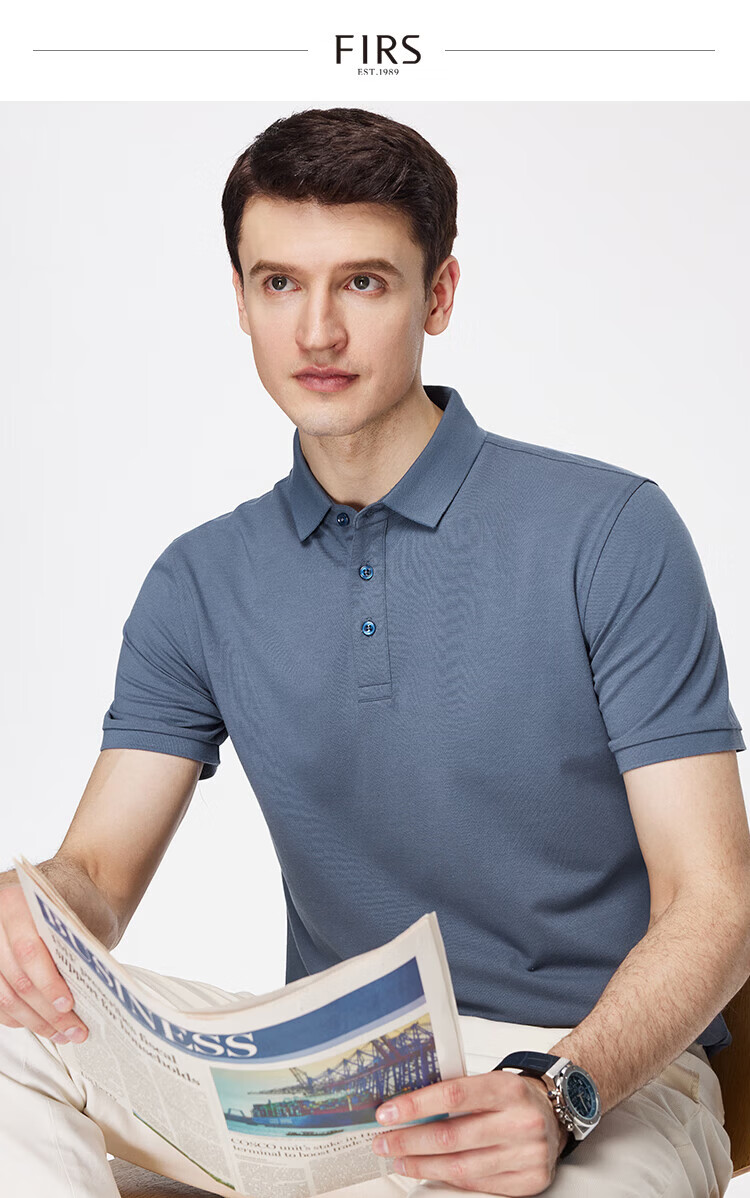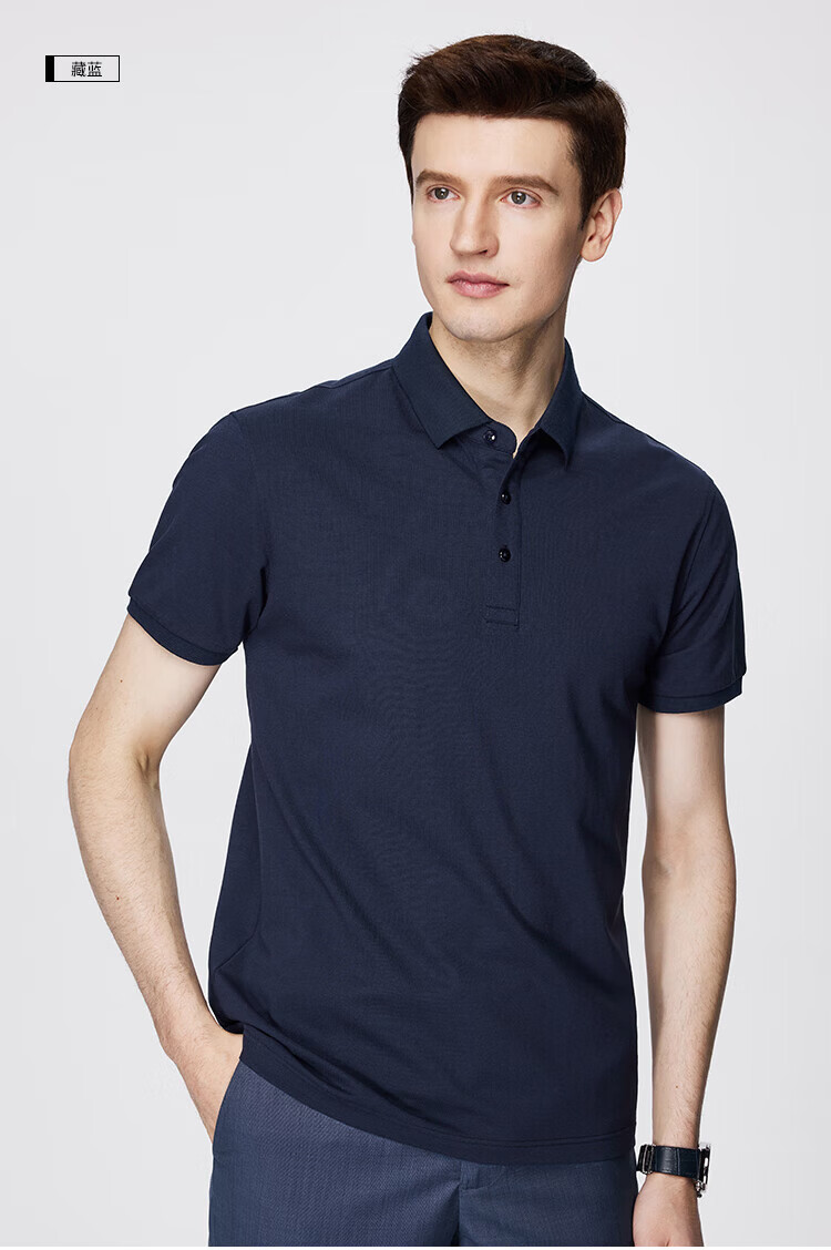杉杉(FIRS)【柔顺莫代尔】短袖T恤男士夏季凉感轻薄POLO领商务休闲丝光上衣 黑色 L 170/88A