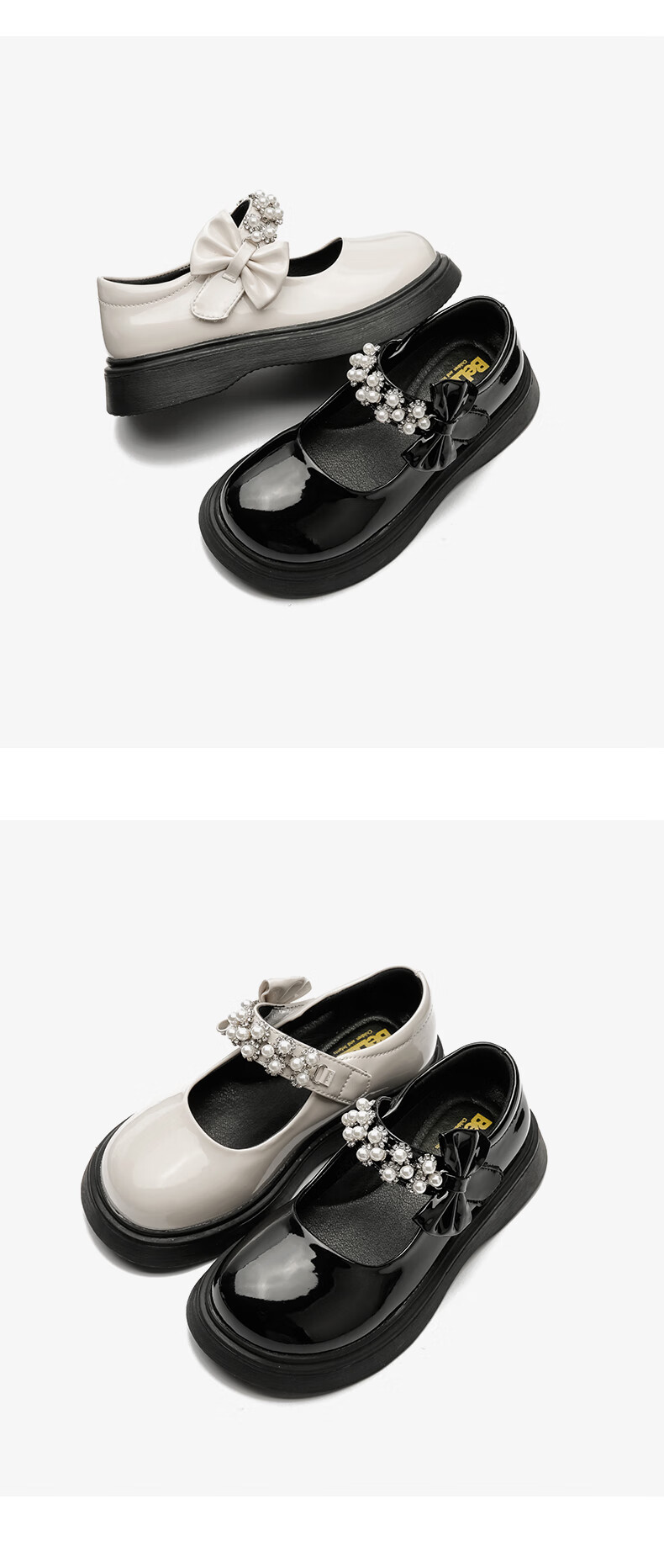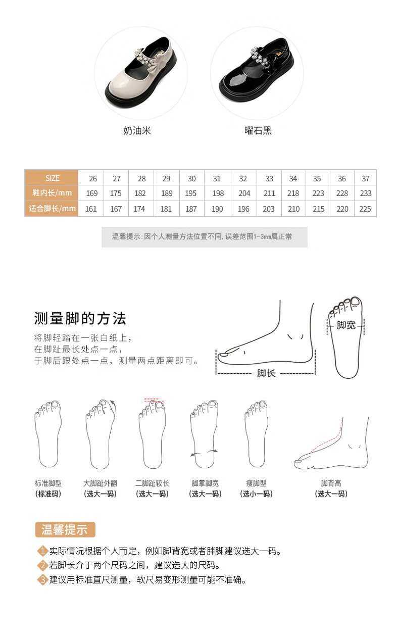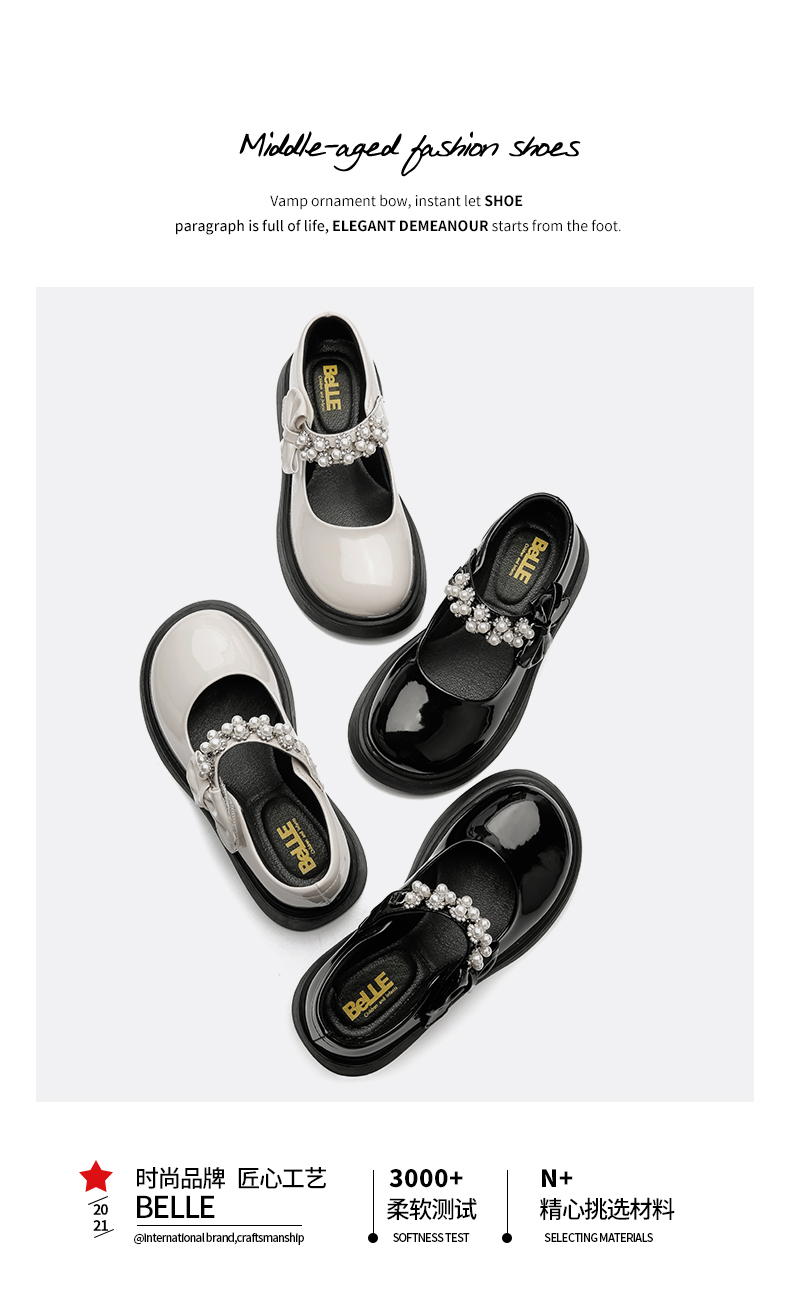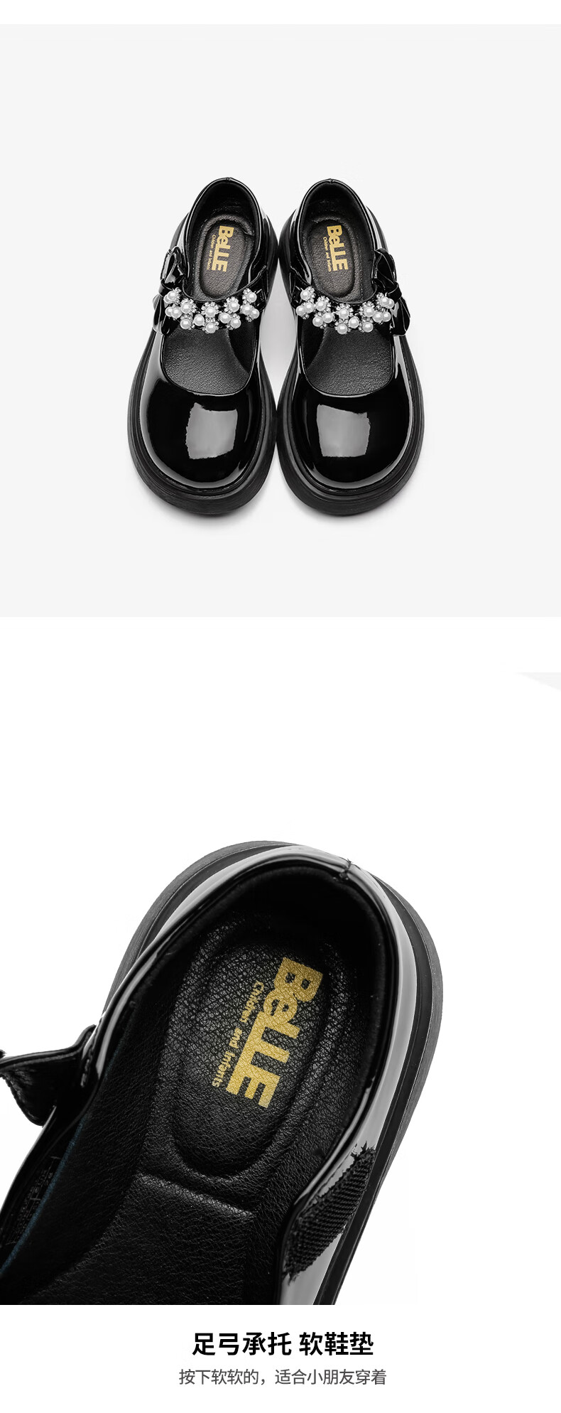 百丽 童鞋女童皮鞋春秋表演鞋学生鞋时尚单鞋儿童公主鞋 黑色34码