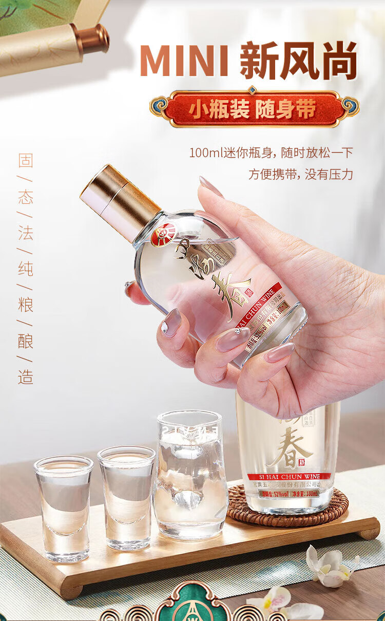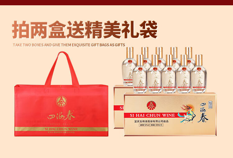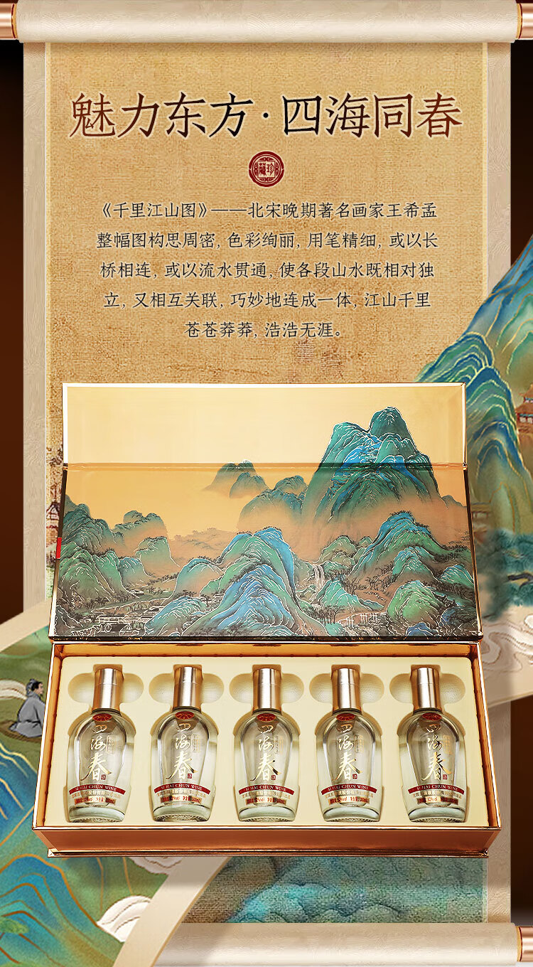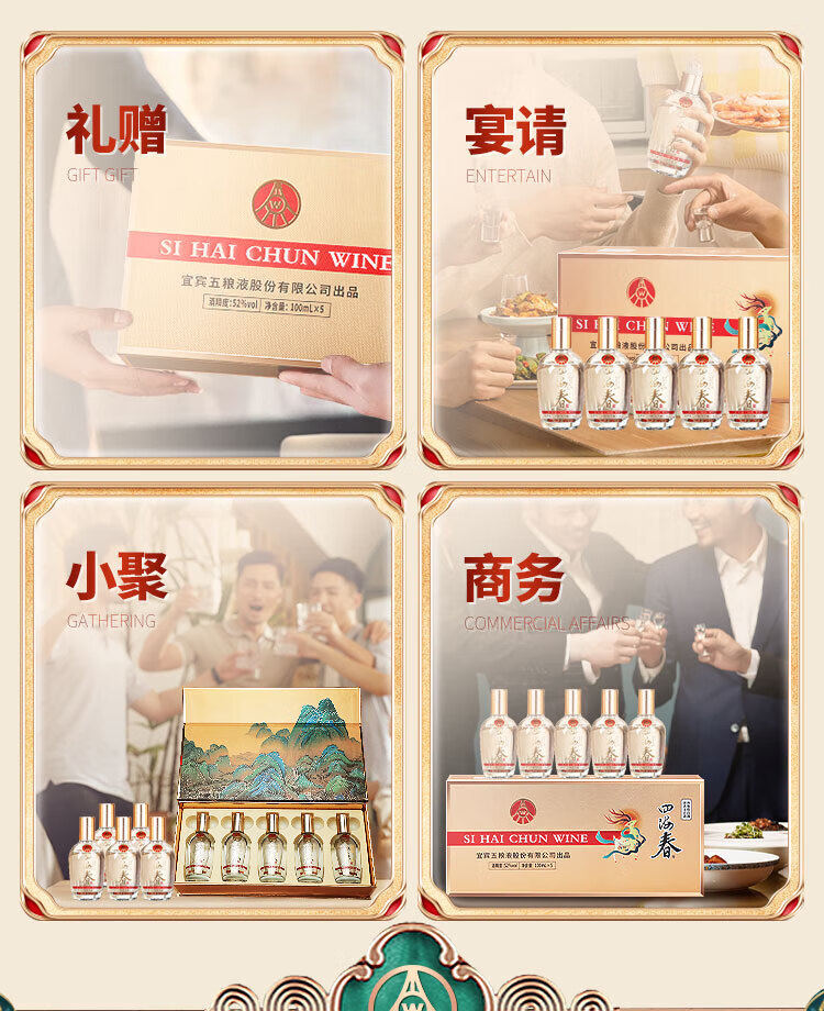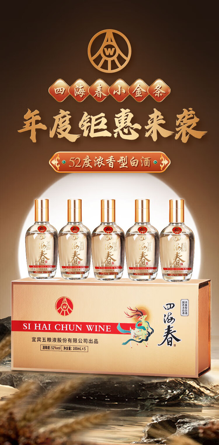 五粮液股份出品 四海春小金条礼盒 纯粮食白酒 52度100ml*10瓶 送礼佳品