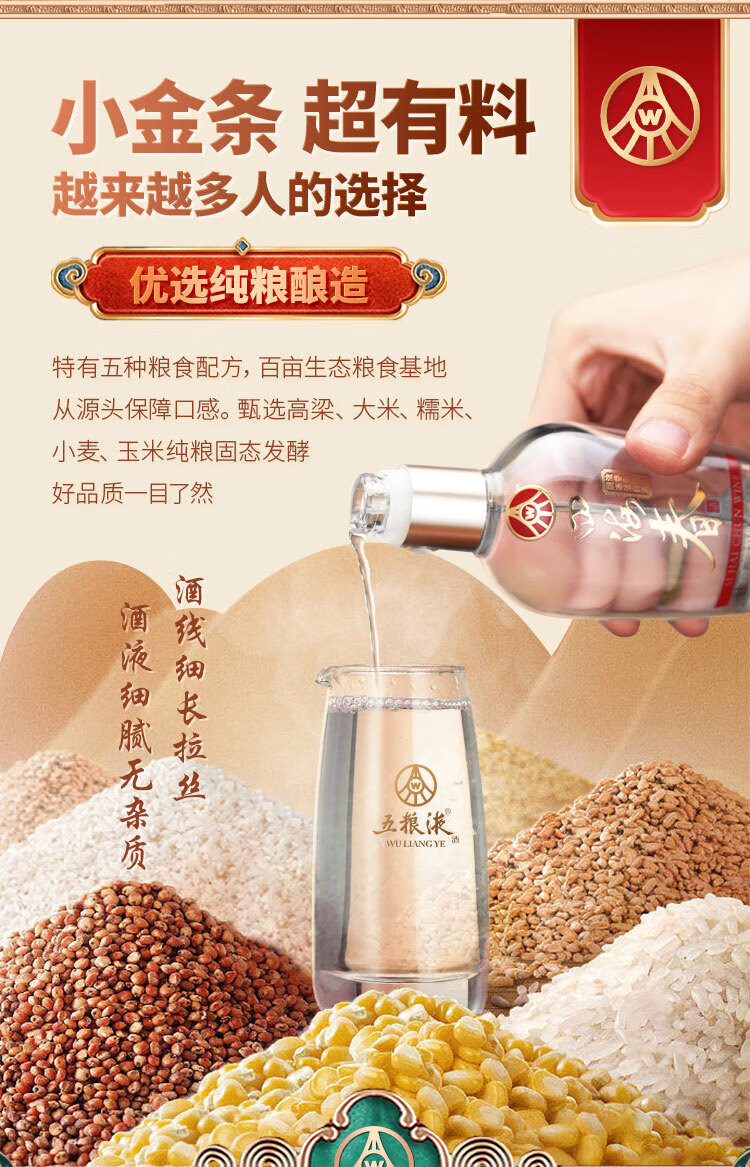 五粮浓香【五粮液出品】高度优质白酒 纯粮精酿 送礼宴请 52度 500mL 2瓶 金谷春【精美礼盒】