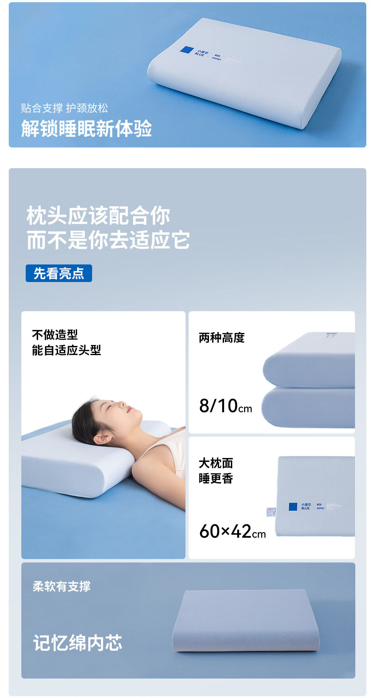 阿尔皮纳袋鼠记忆棉枕头护颈椎助睡眠枕睡眠枕成人一对单人一只枕芯学生宿舍枕 小蓝芯记忆枕【42x60x8cm单只】简易装自用更划算 无规格