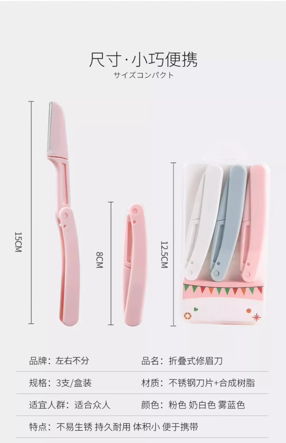 无品牌2024新款修眉刀刀片刮眉毛安全型修眉剪男女士专用套装 粉色眉剪+白色眉剪+修眉刀