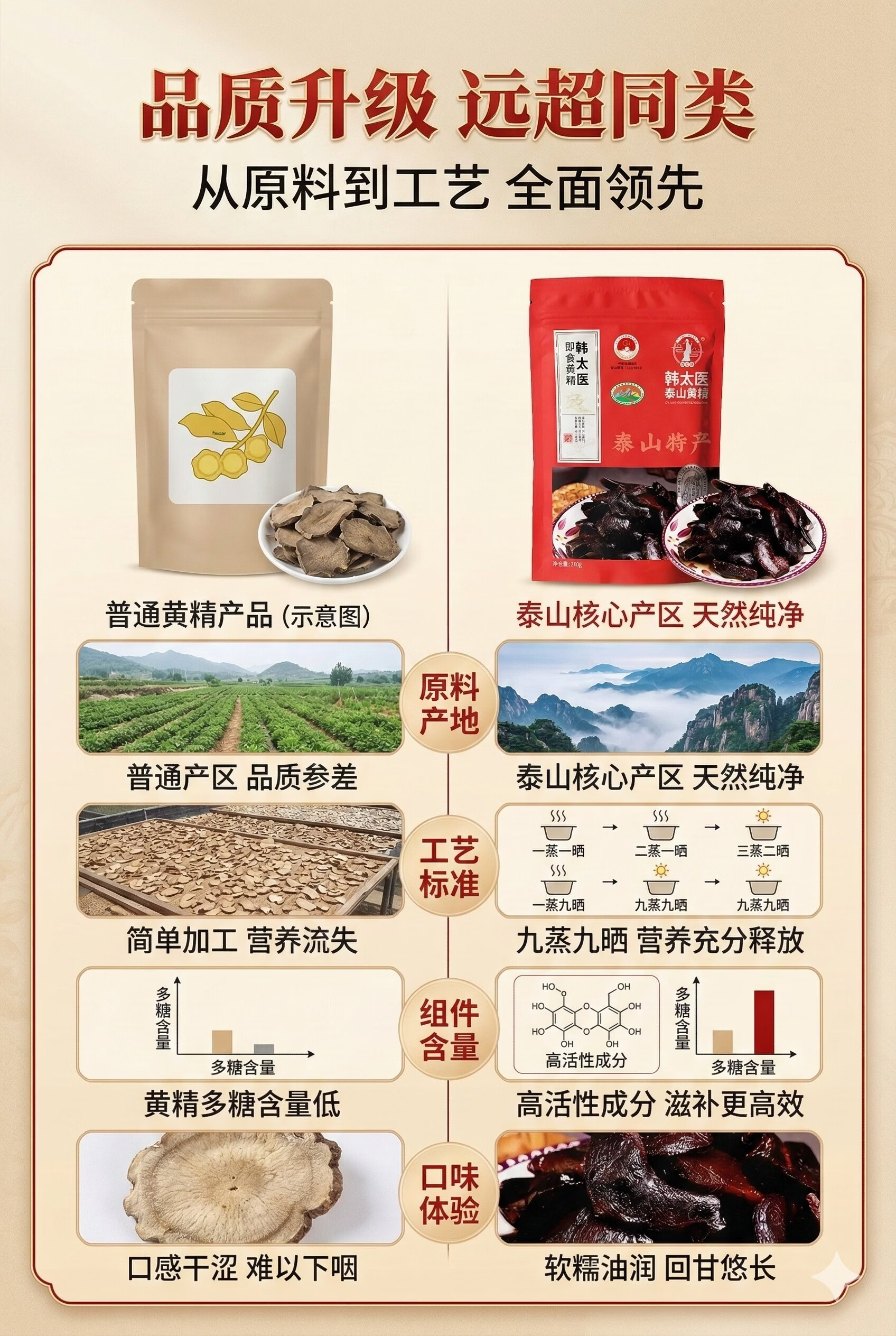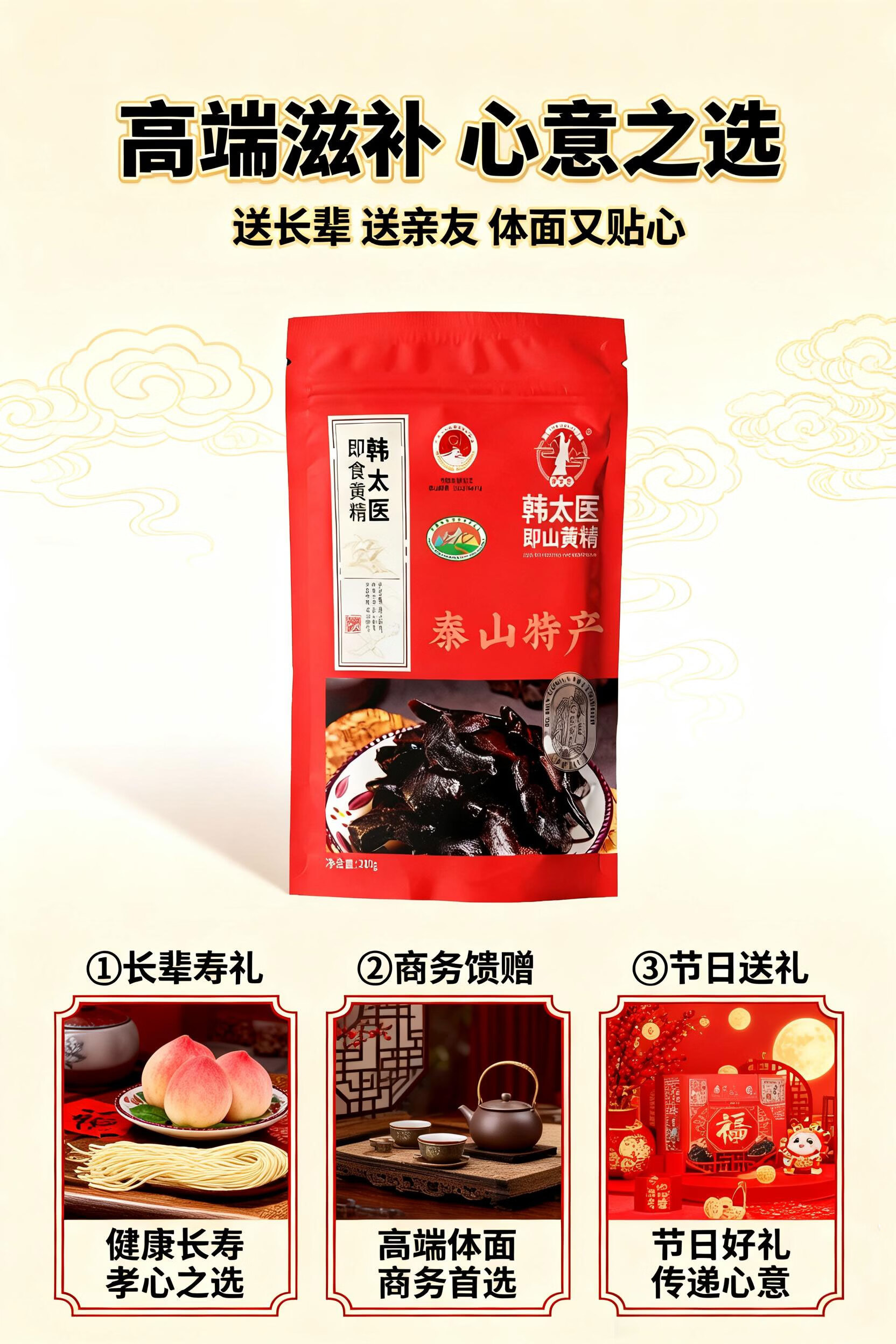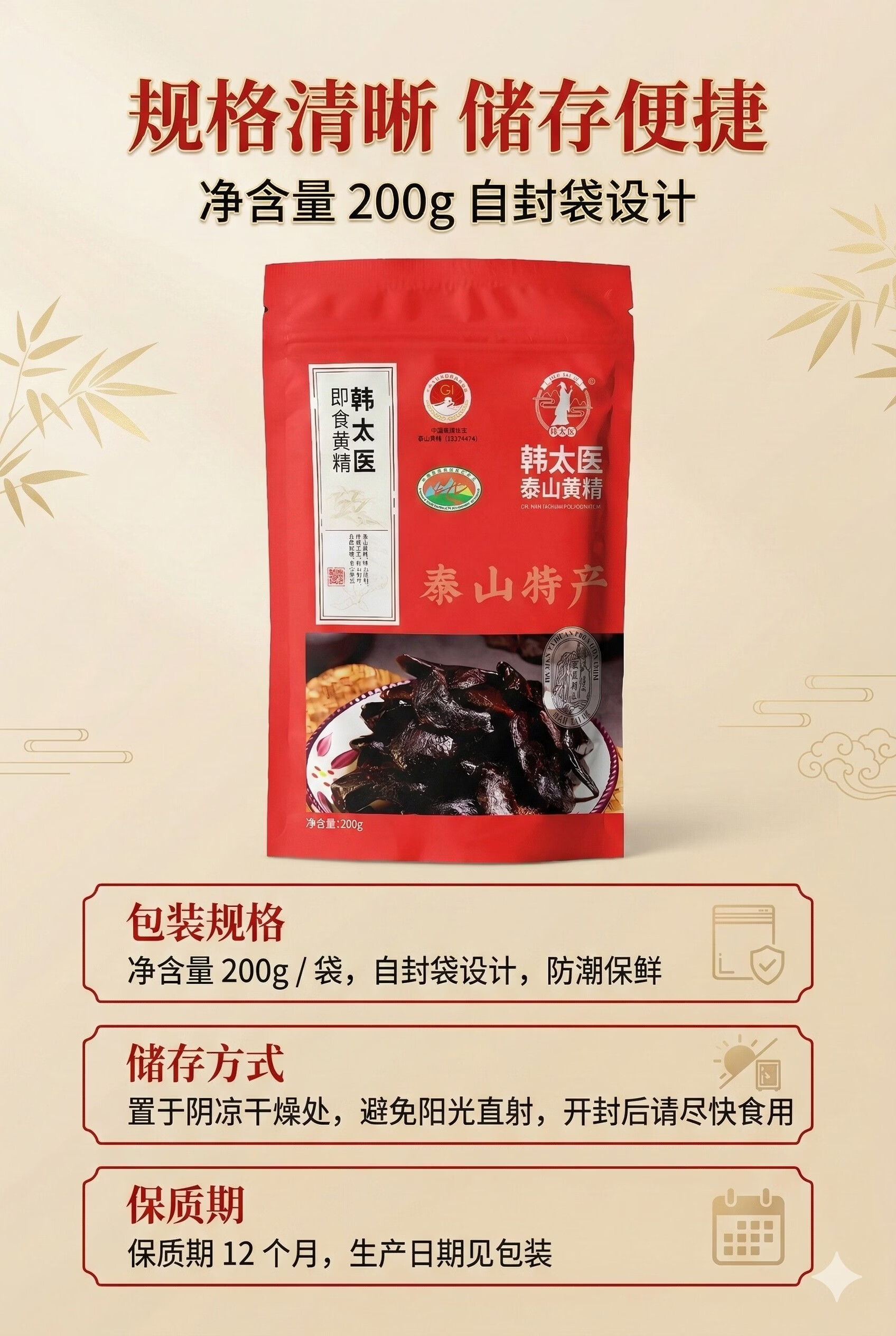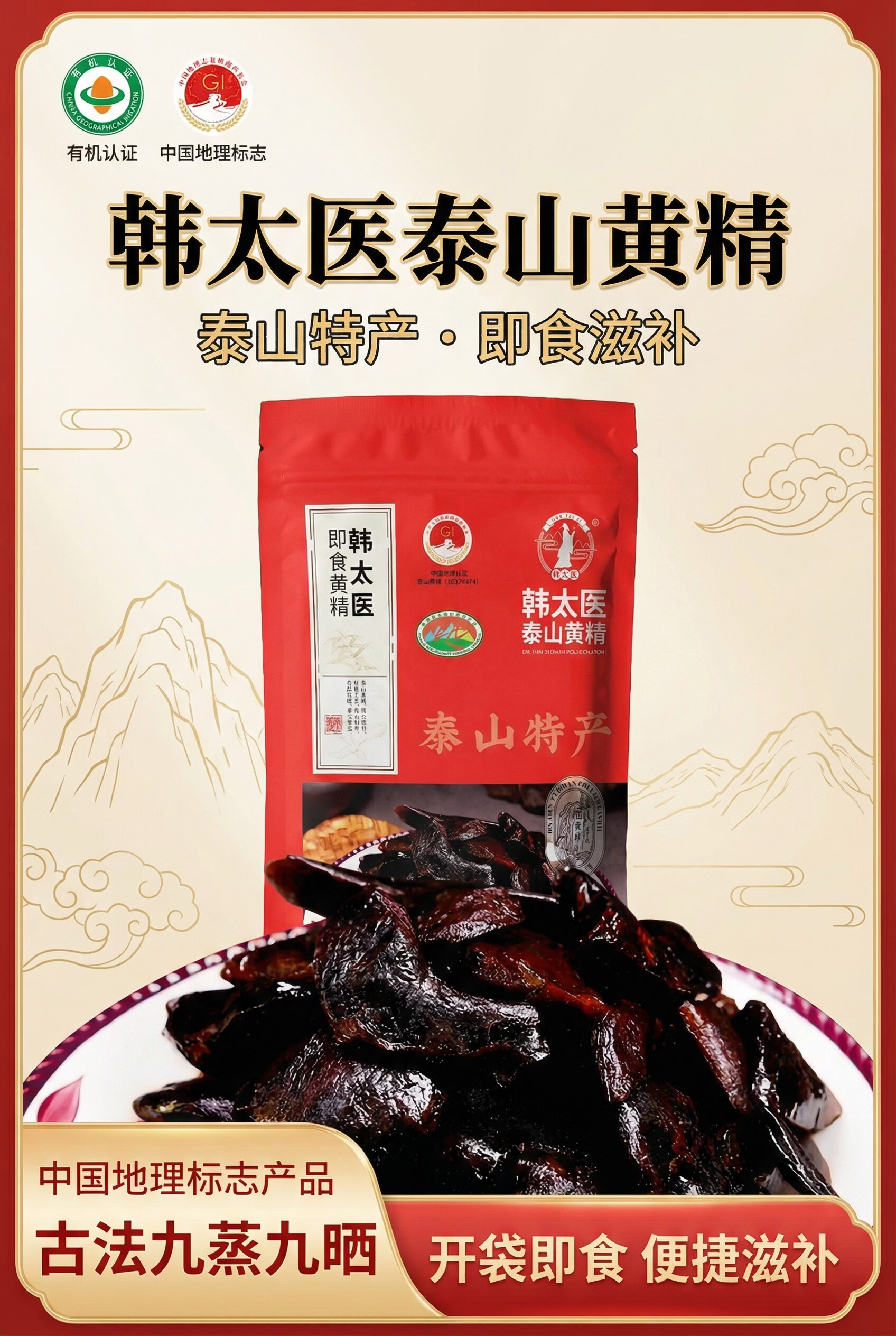 韩太医即食泰山黄精九蒸九晒黄精中药材泡水喝的熟茶九制辟谷油头老虎姜 即食黄精 200g*1袋
