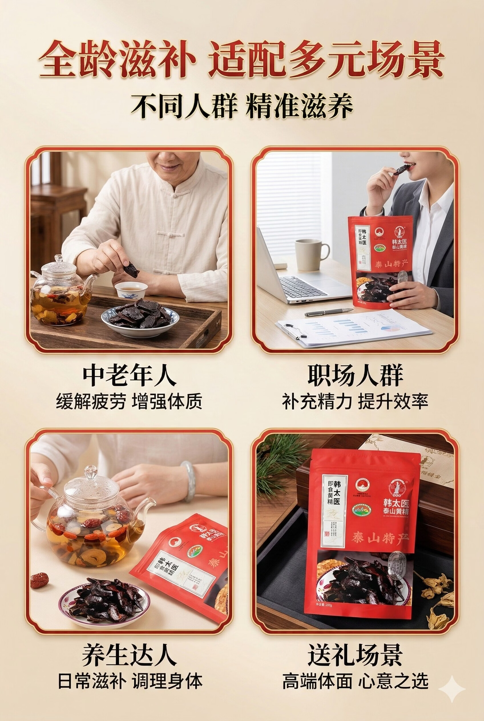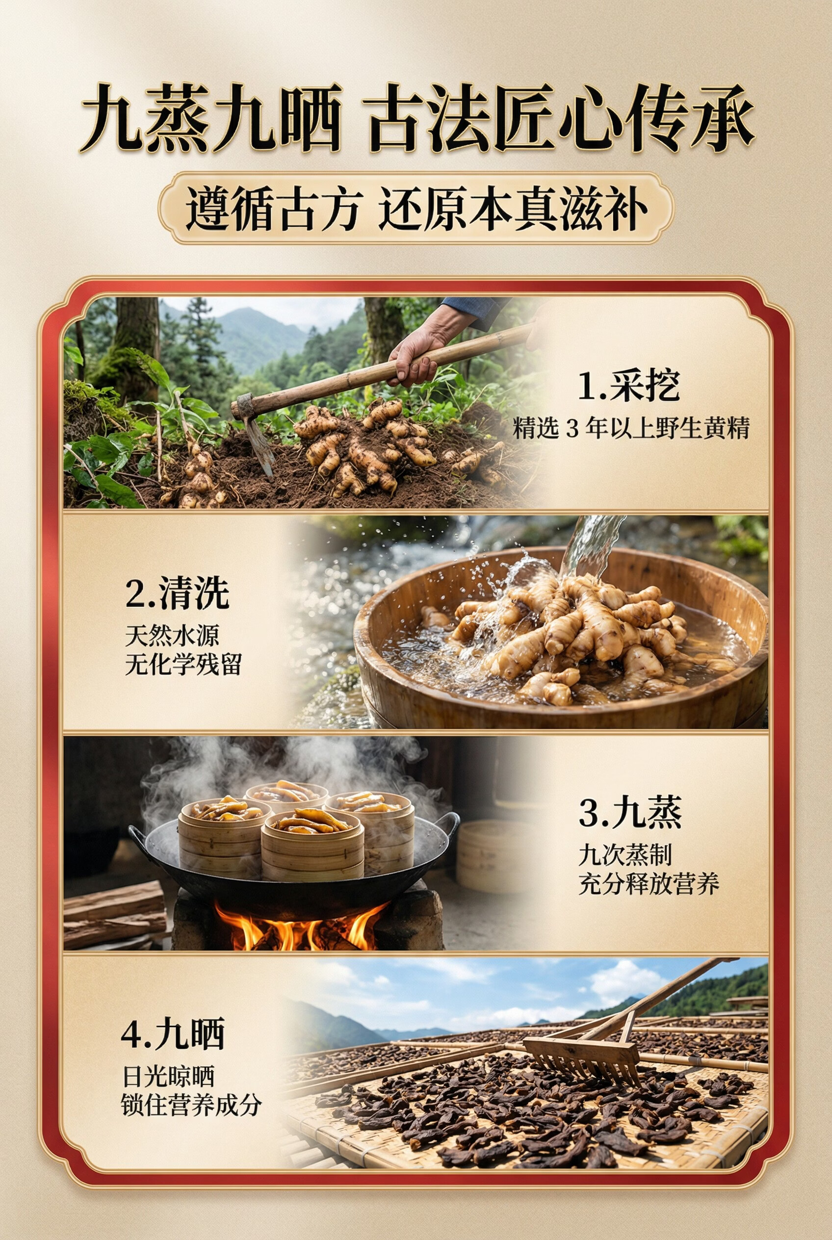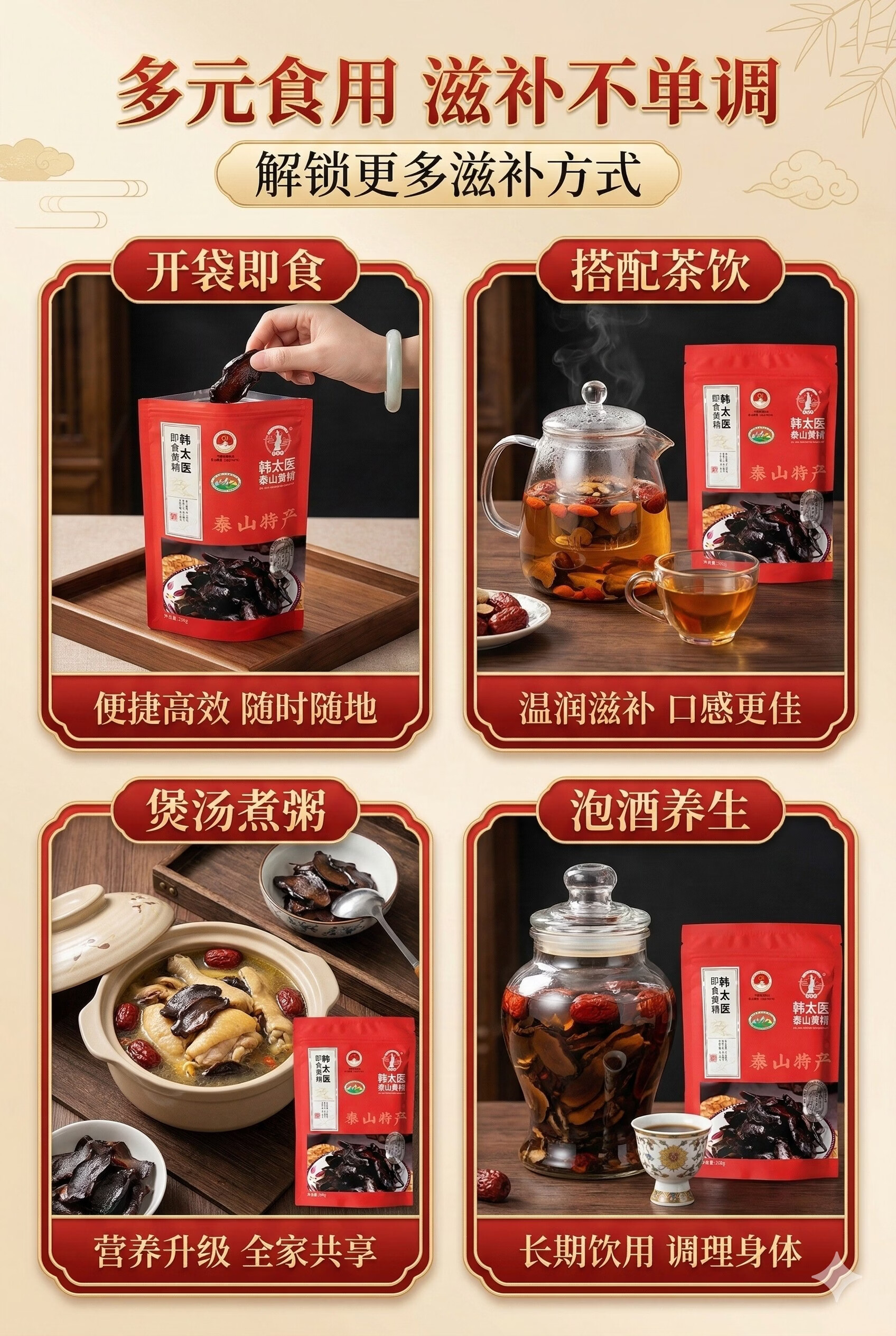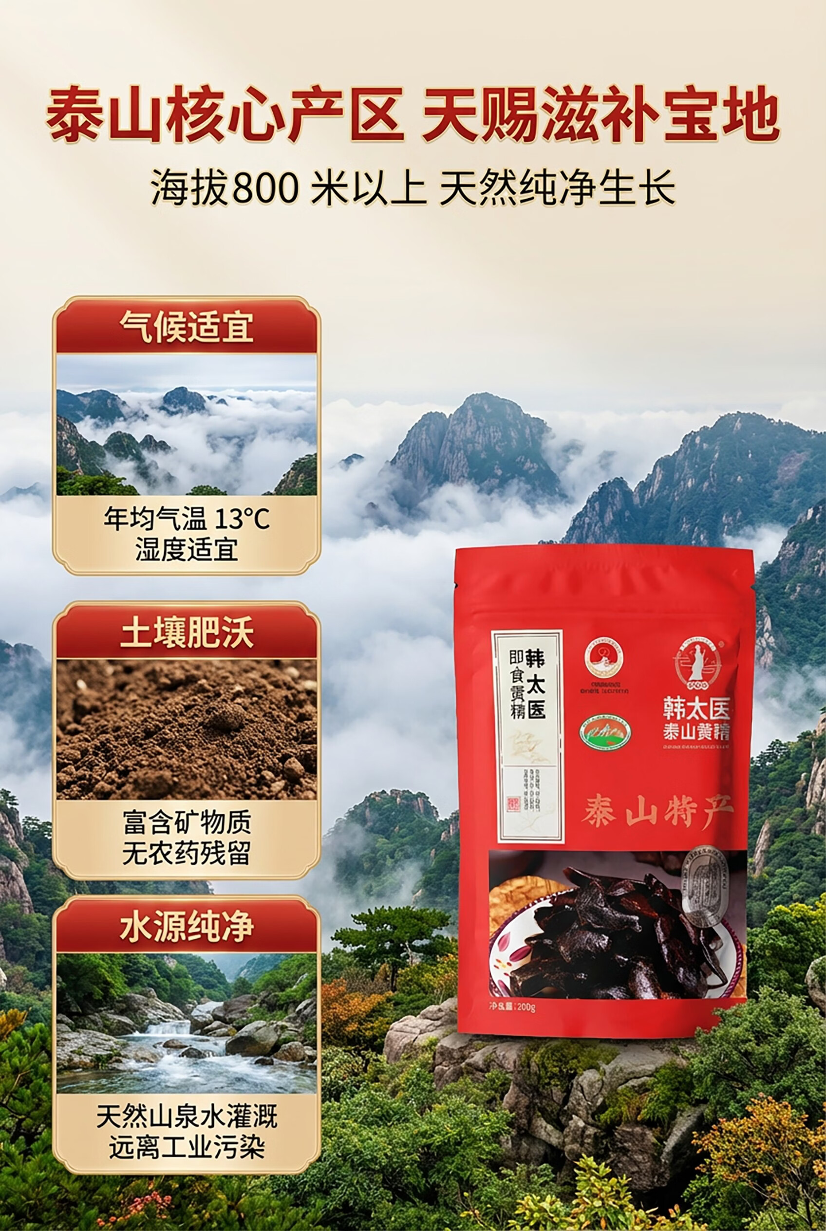 韩太医即食泰山黄精九蒸九晒黄精中药材泡水喝的熟茶九制辟谷油头老虎姜 即食黄精 200g*1袋