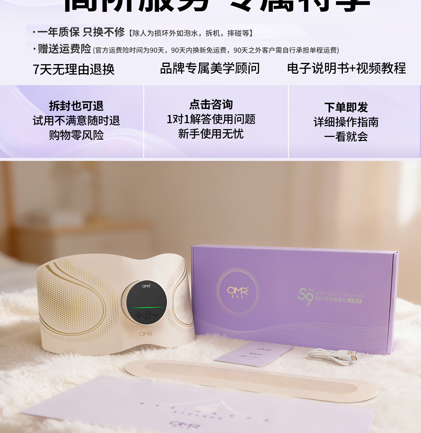 欧美然 OMR全燃光能美塑仪大排灯EMS微电流健腹按摩腰带 【塑形紧致】腰带+紧致喷雾200ml+塑形凝露