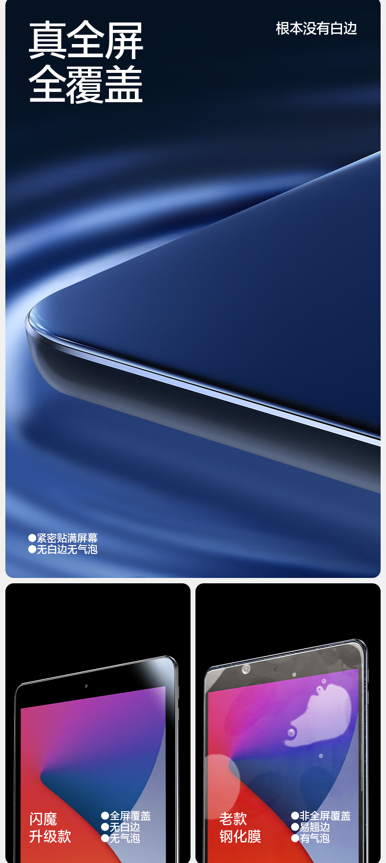 闪魔【优选直发】适用iPad pro钢化膜2024/21/22款air6/5/4膜11/12.9/ 【加强版电镀双倍抗指纹】一片装 ipad2017/2018/air2