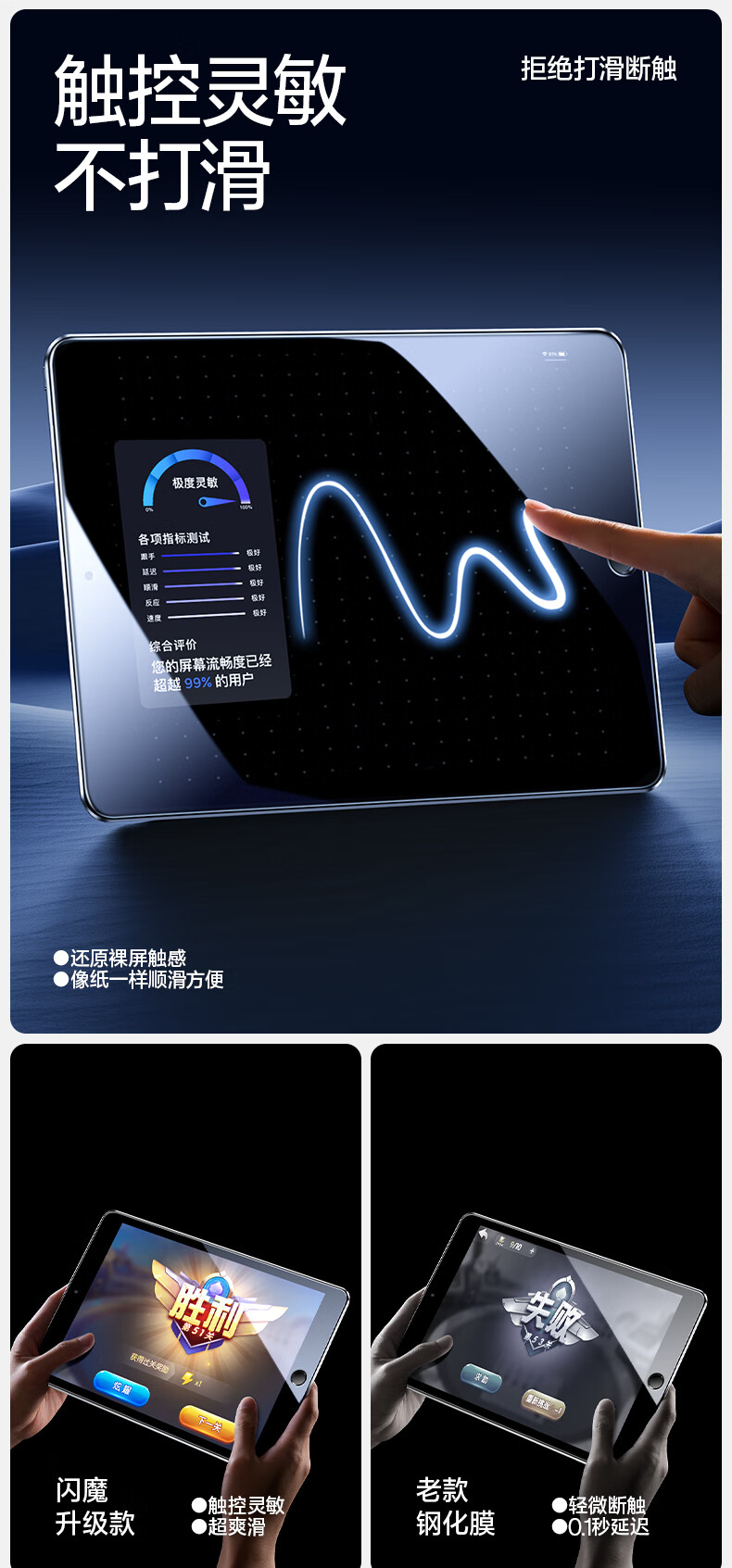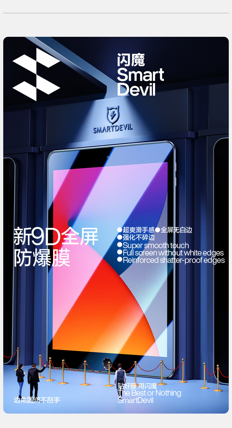 闪魔【优选直发】闪魔适用新ipad2024钢化膜air6/3/2苹果平板10.2寸20 iPad 2019/2020(10.2英寸) 【加倍护眼抗蓝光】1片
