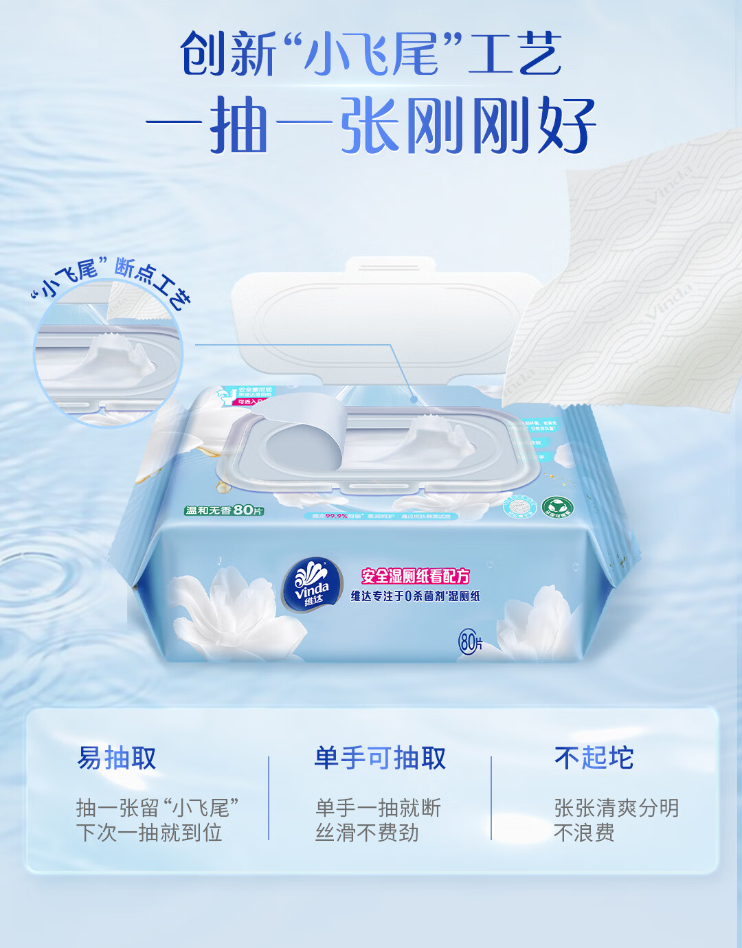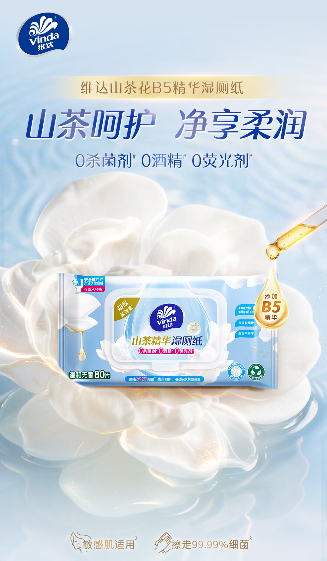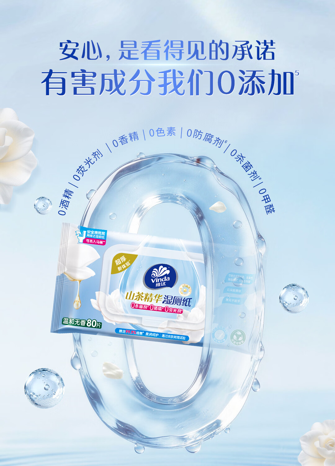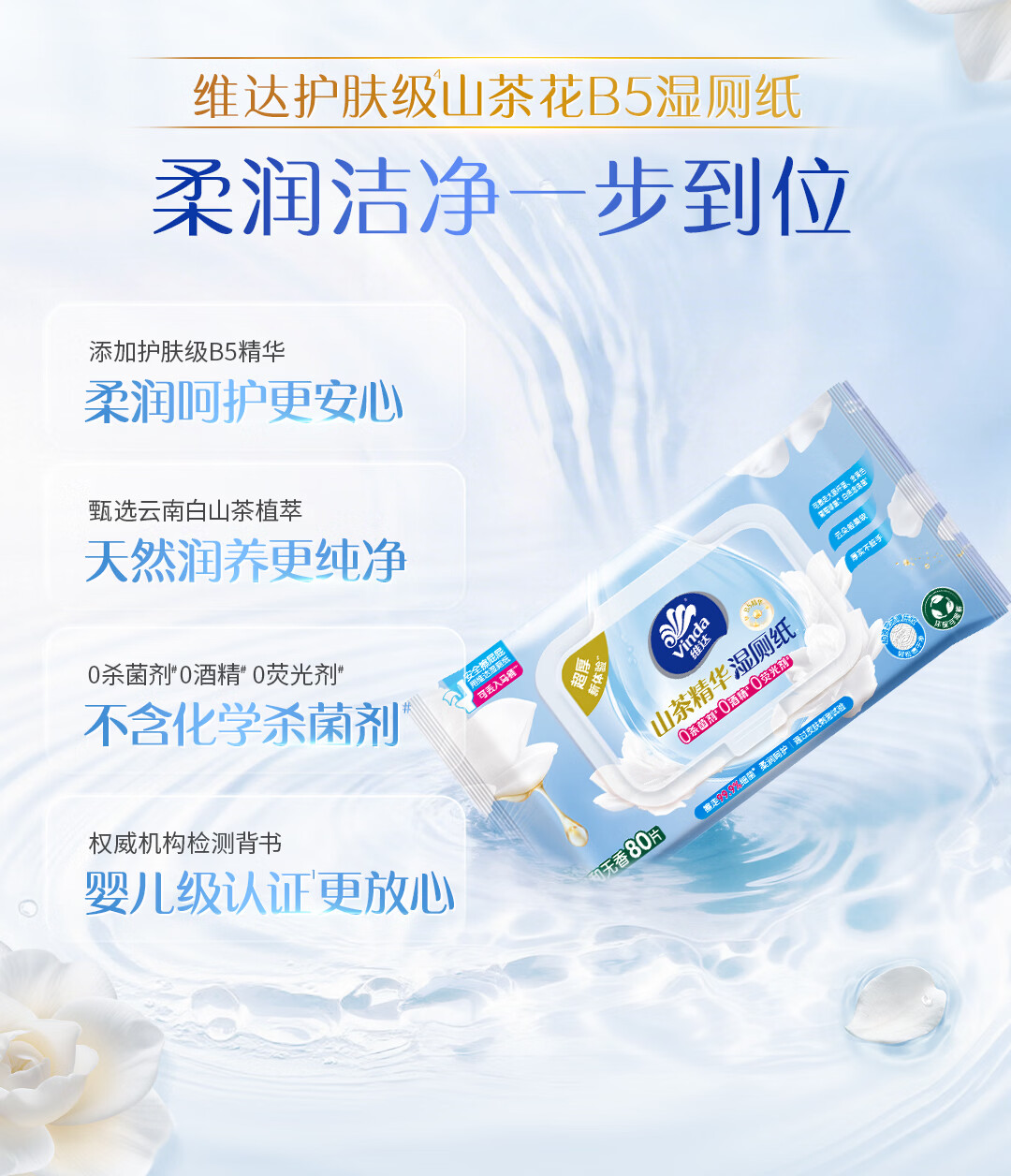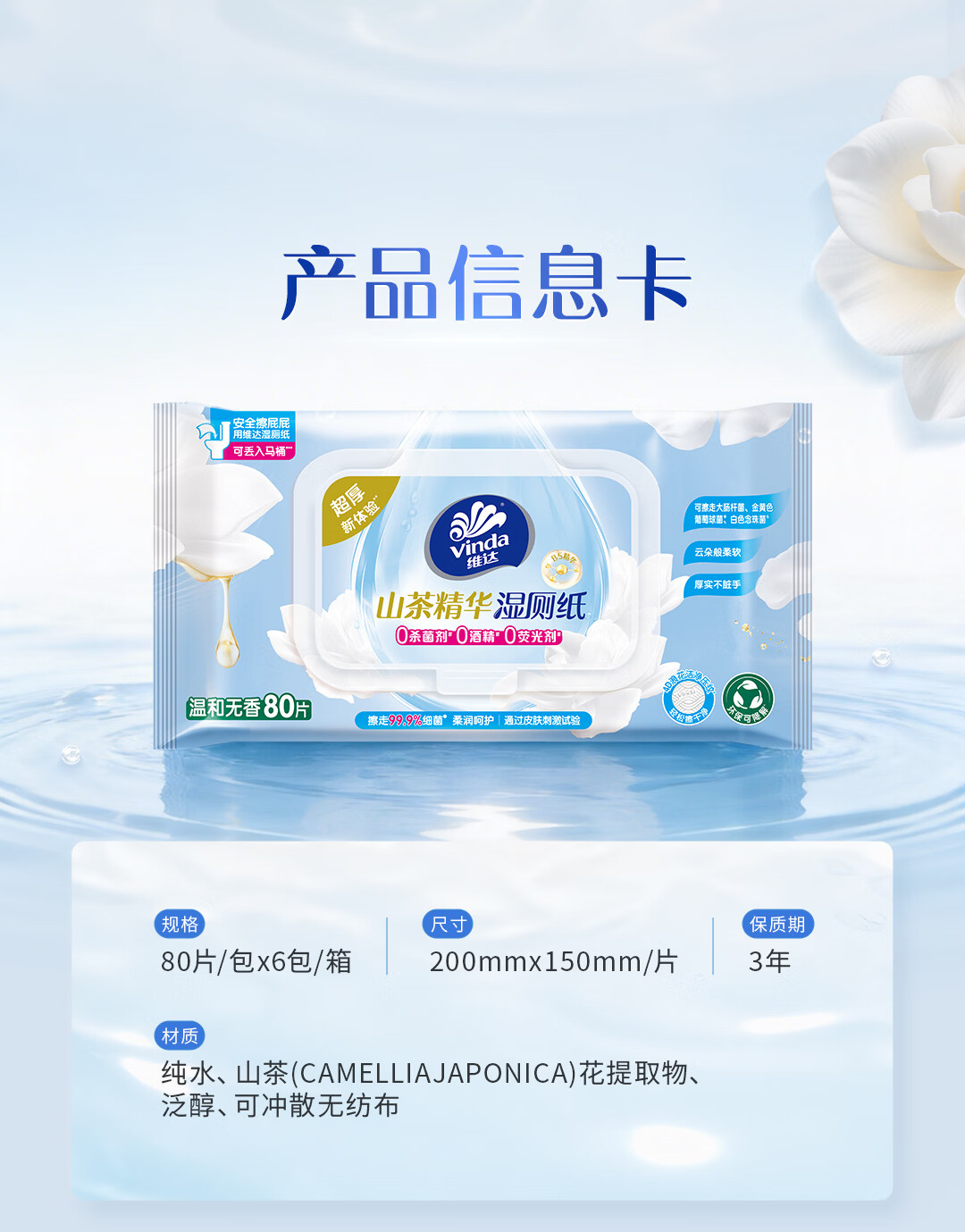 维达(Vinda)山茶花B5精华湿厕纸80片*6包双重精华保湿加大加厚XL码湿纸巾厕纸