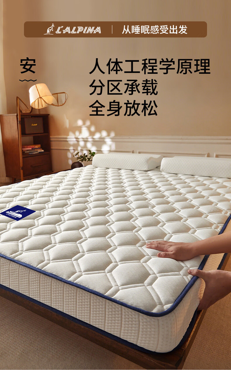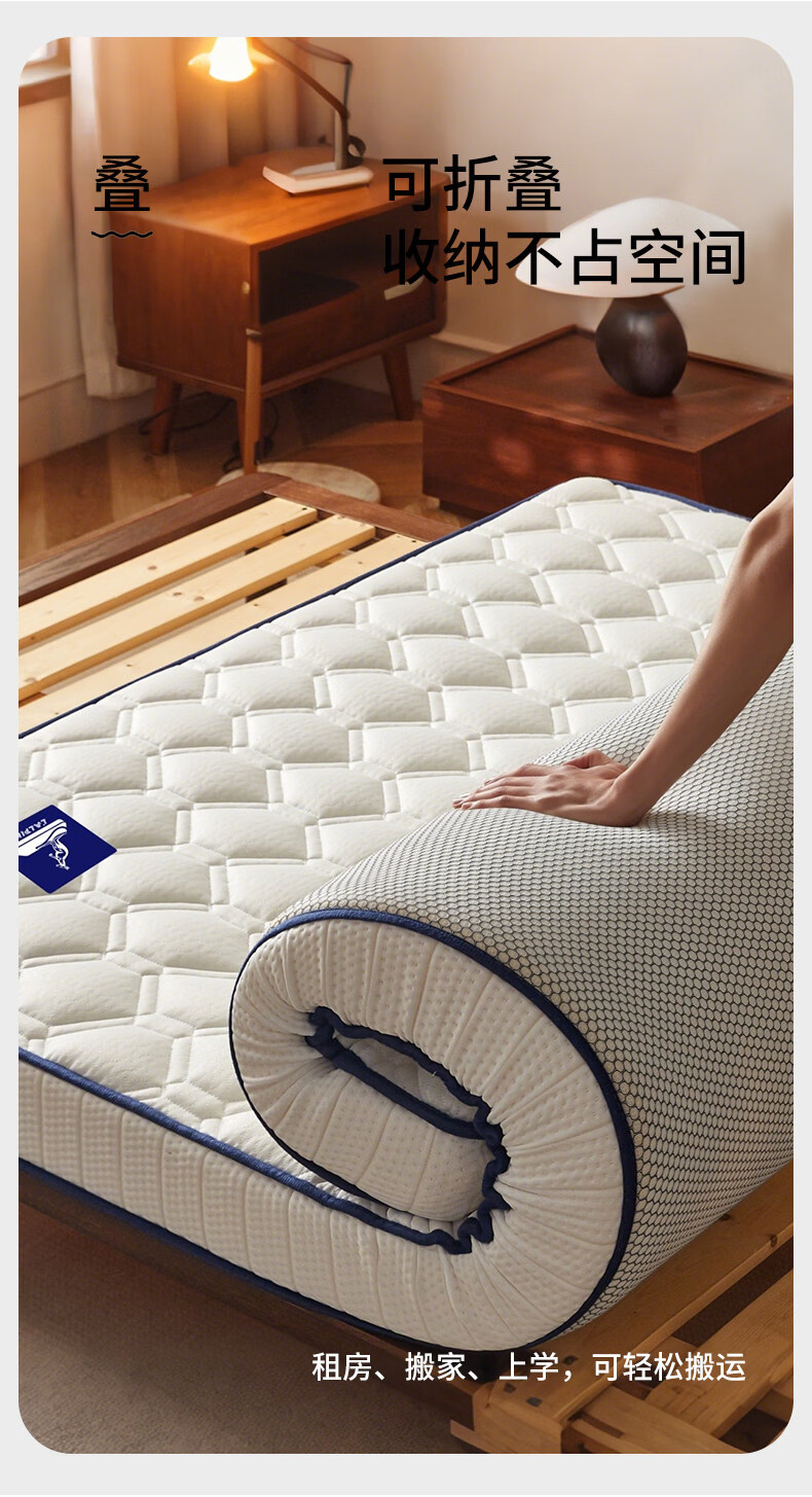 阿尔皮纳袋鼠乳胶记忆棉床垫遮盖物加厚海绵软垫子学生宿舍单双人床褥子可折叠 白蓝边【6公分】 学生床80*190cm