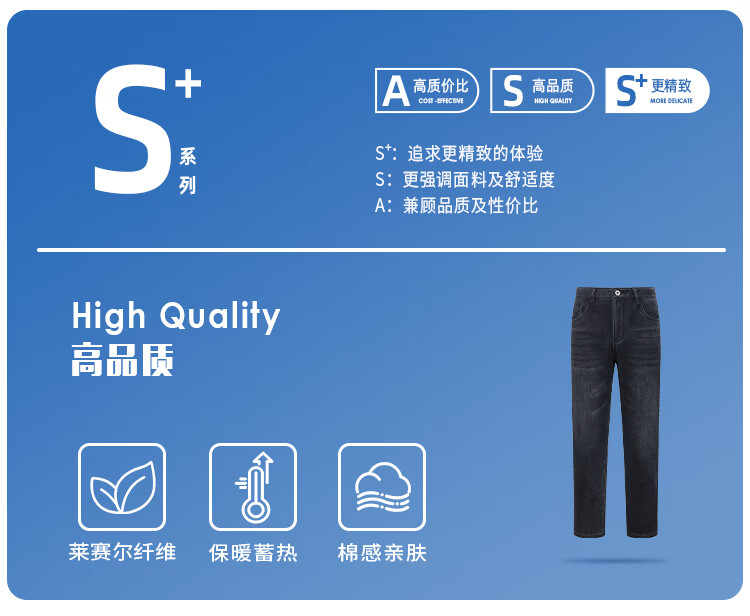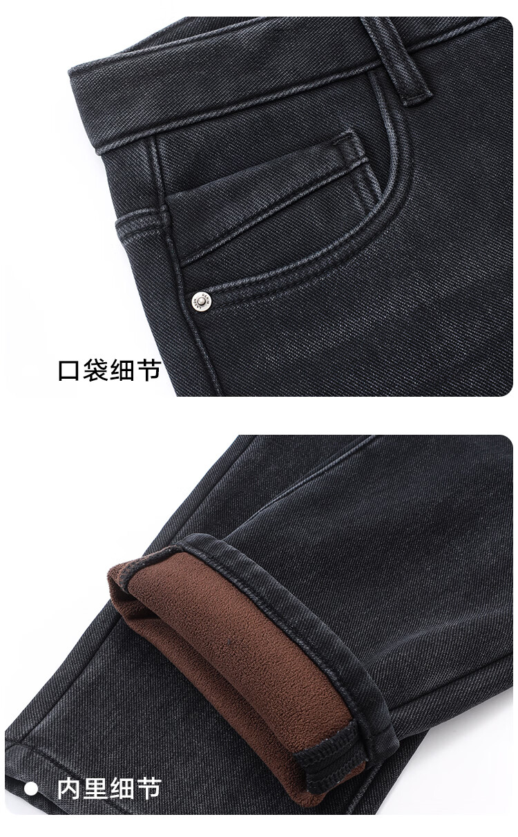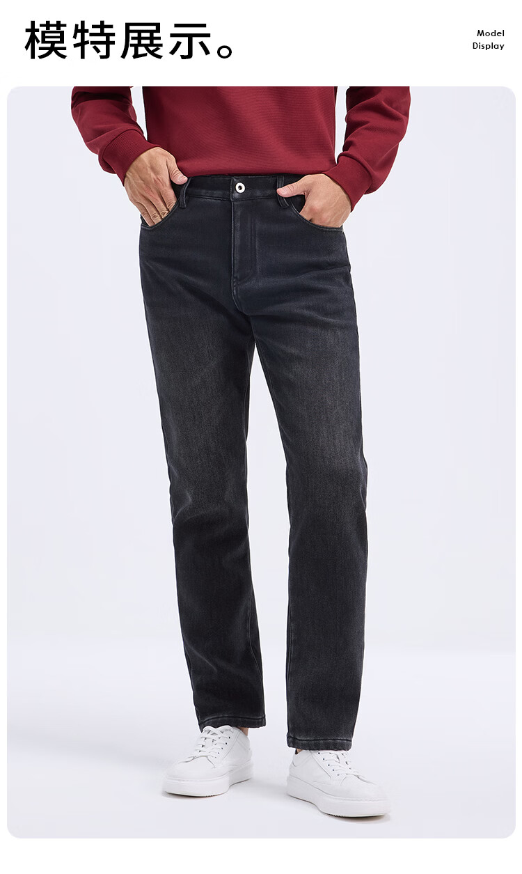 莱克斯顿牛仔裤男新款男装复绒内里莱赛尔纤维蓄热保暖休闲舒适直筒长裤 浅黑 28