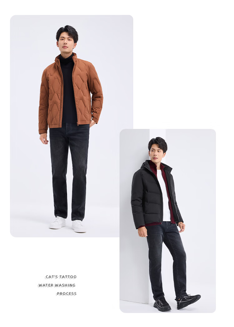 GXG男装 灯笼格羽绒服外套男24年冬季新品 黑色 175/L