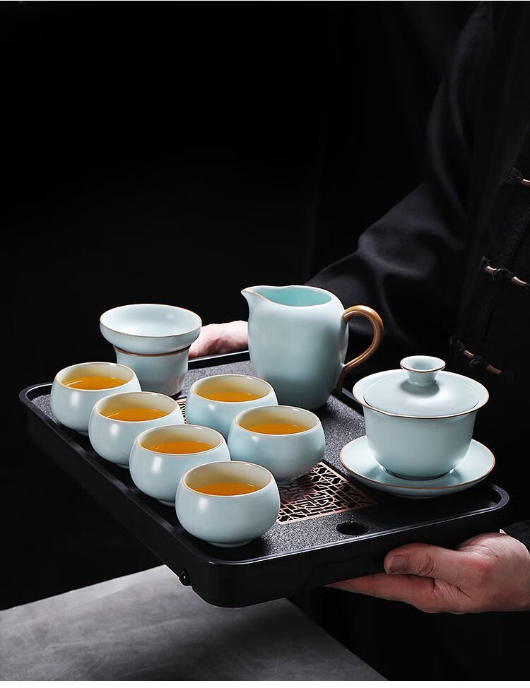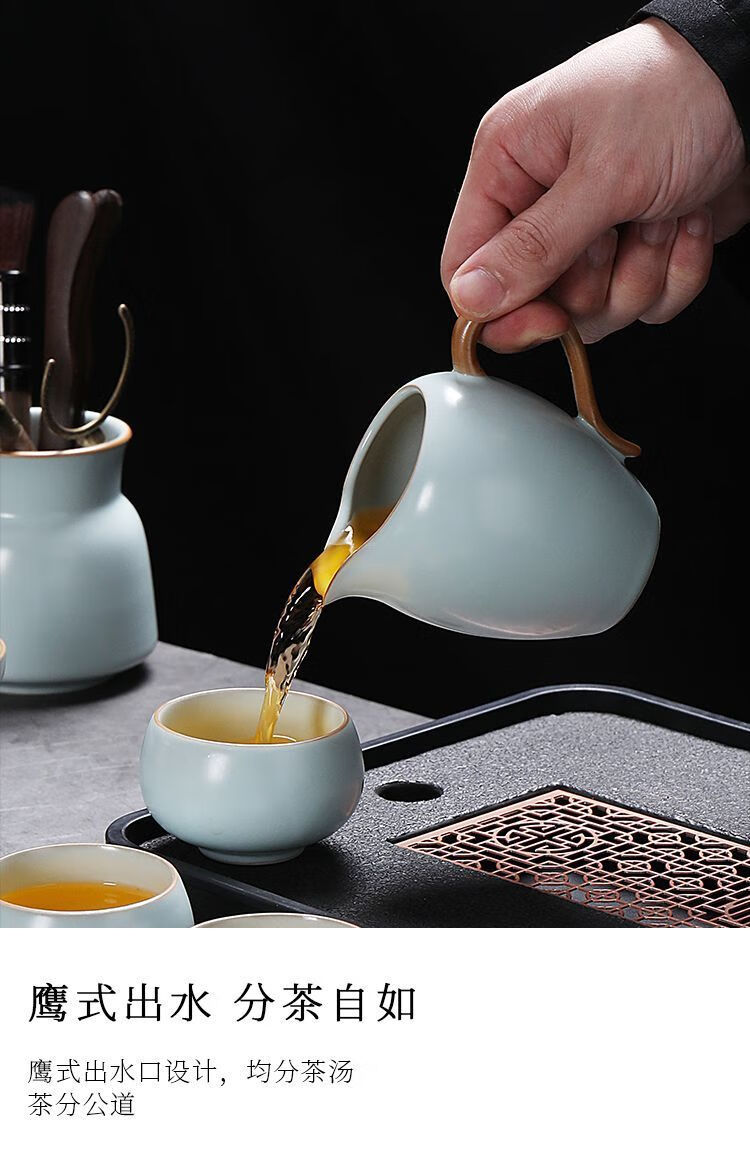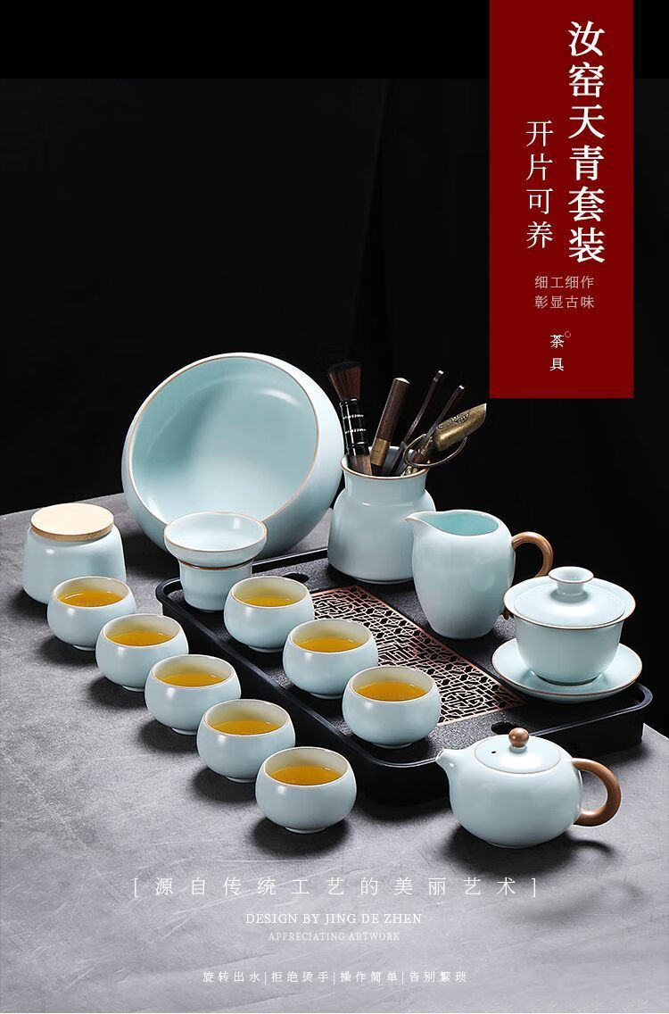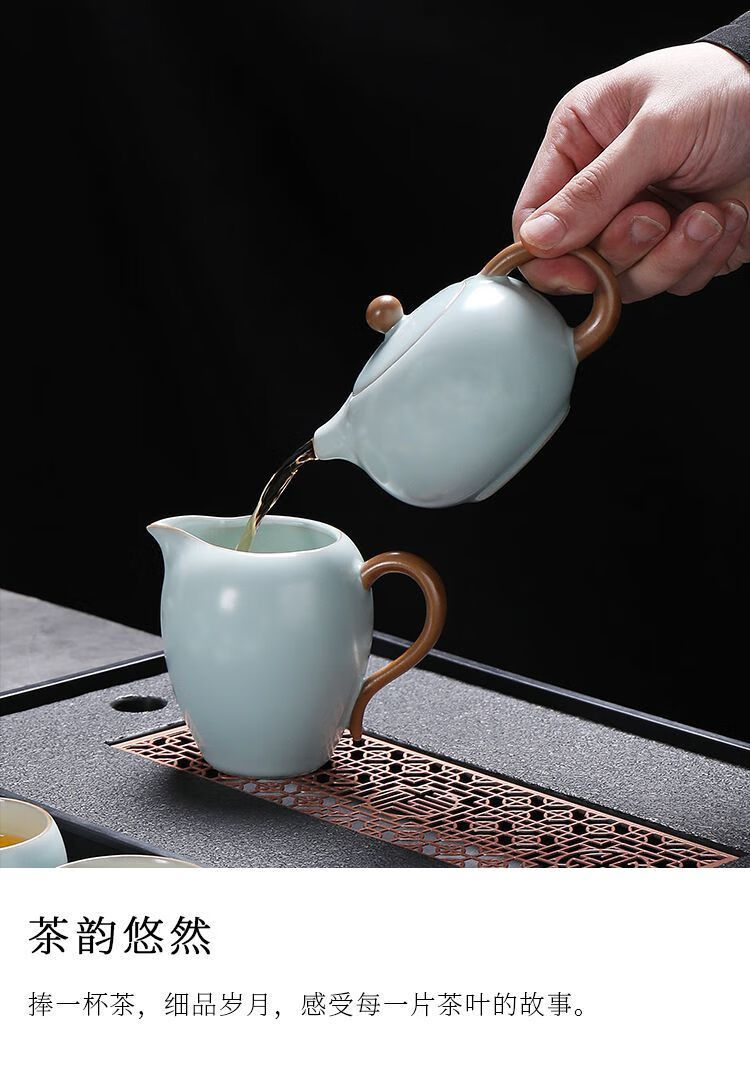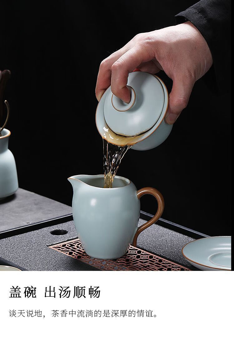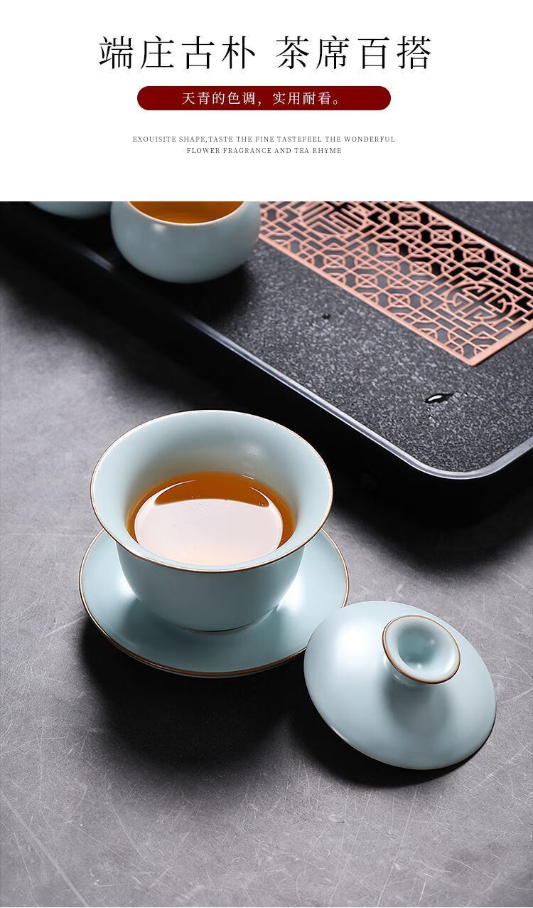 简漾汝窑青瓷整套茶具家用陶瓷功夫茶具盖碗西施壶茶杯简约办公泡茶 天青汝窑盖碗9入