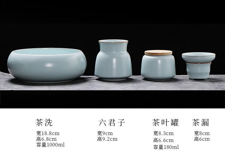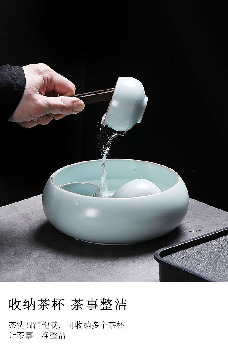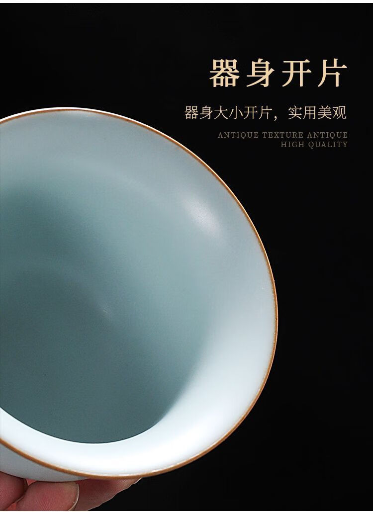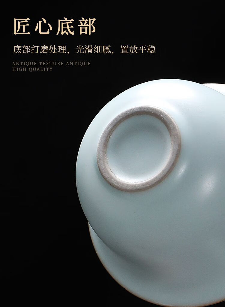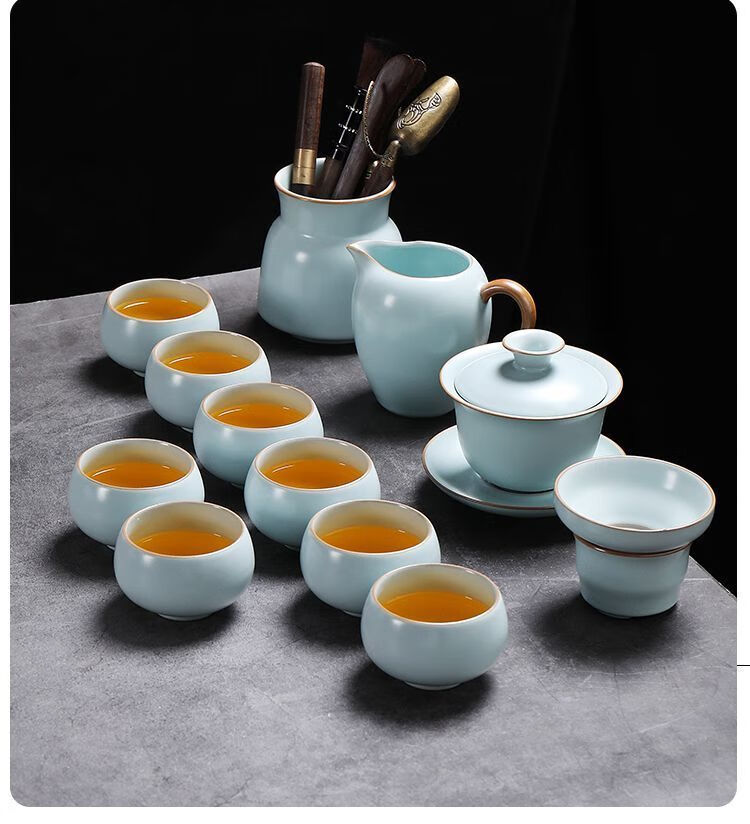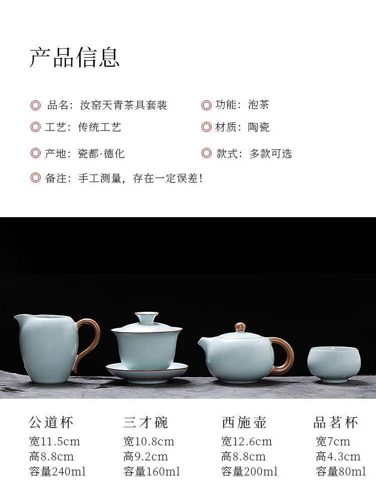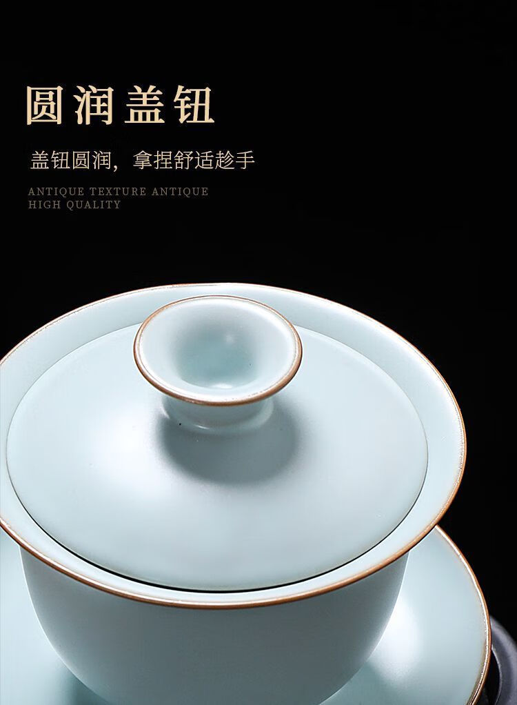 简漾汝窑青瓷整套茶具家用陶瓷功夫茶具盖碗西施壶茶杯简约办公泡茶 天青汝窑盖碗9入