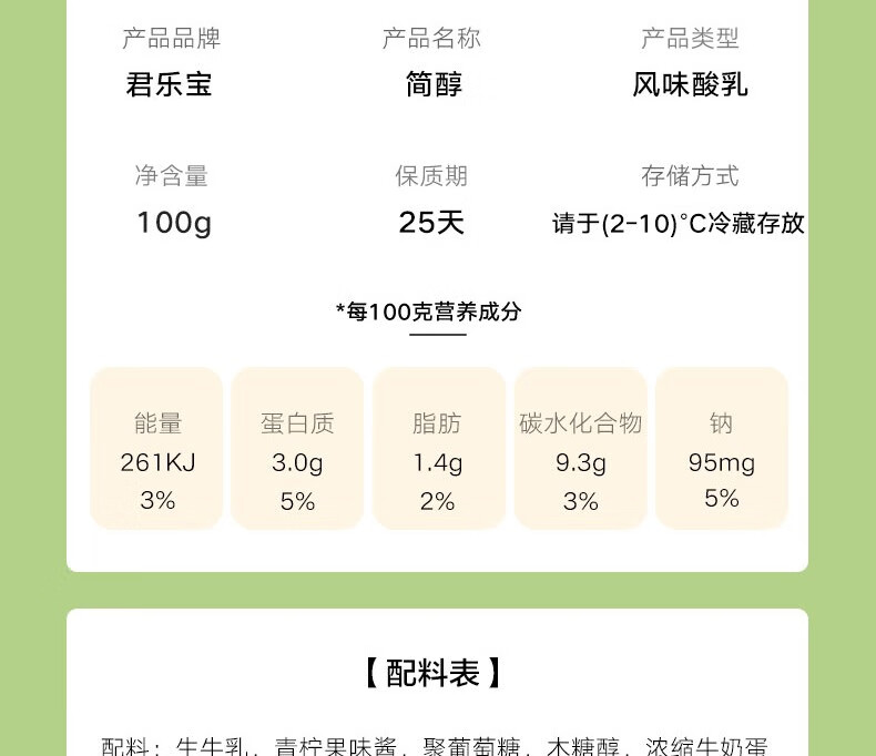 君乐宝简醇原味100g*10袋+简醇青柠100g*10袋 源头直发 包邮
