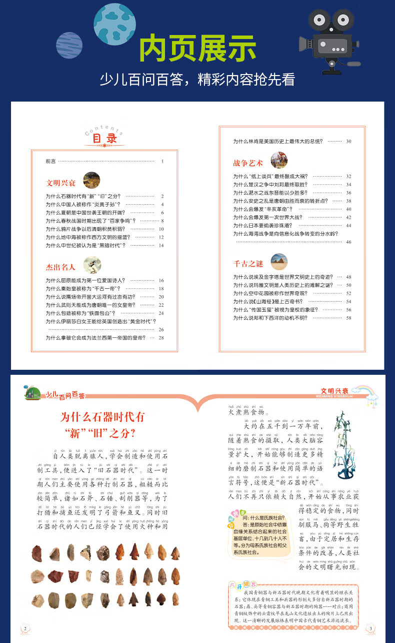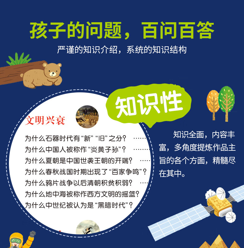 儿童科普读本少儿百问百答图书 满足孩子求知探索欲动物植物星球科技历史兵器网络大数据一起游世界 历史那点事